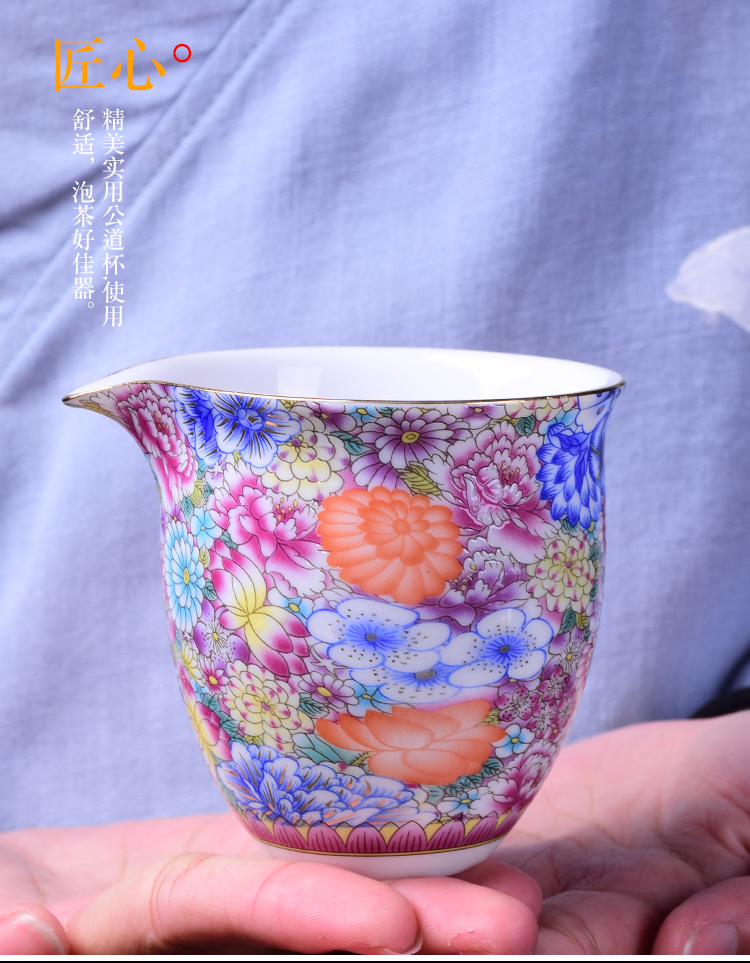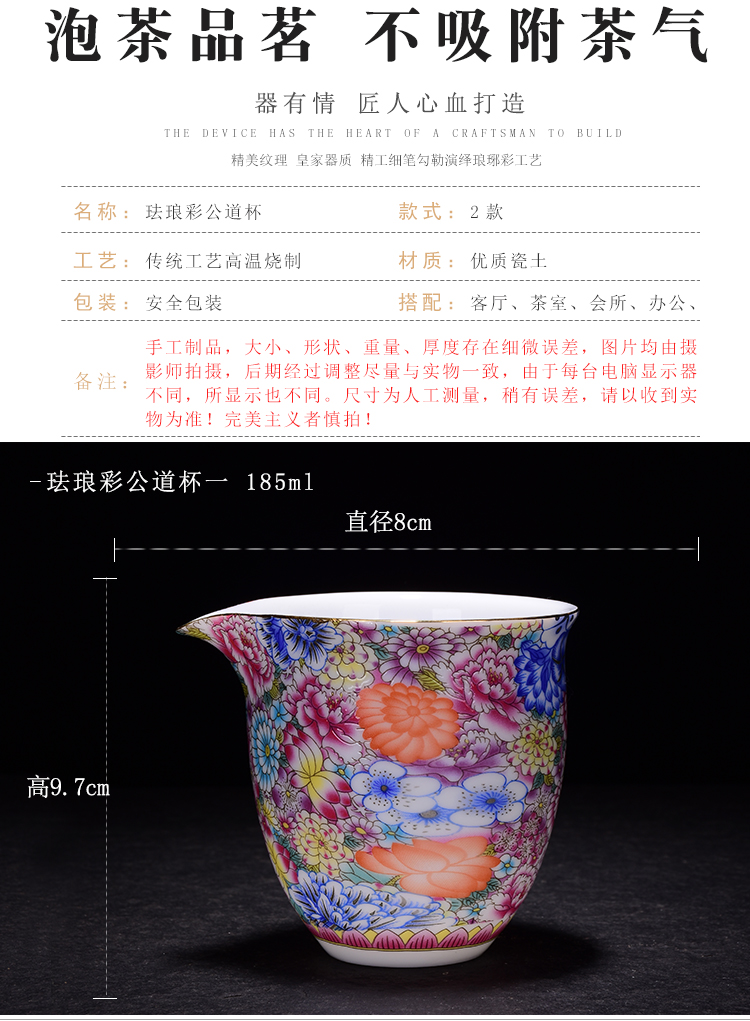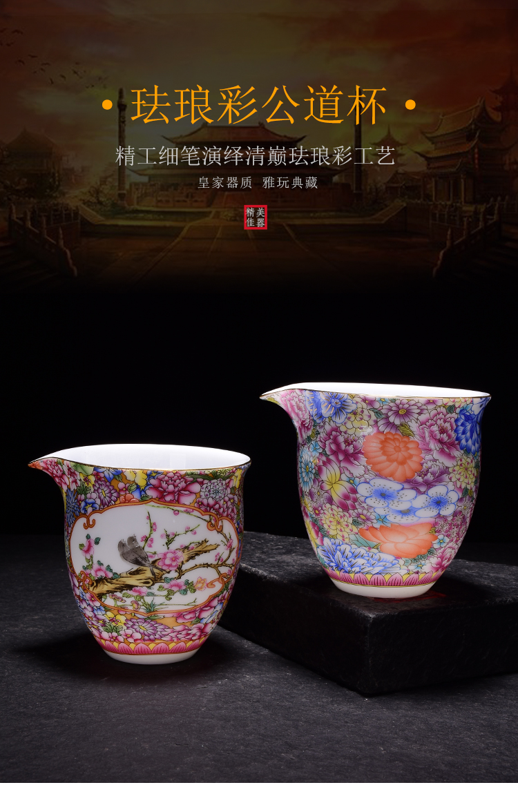 陶生活 琺瑯彩公道杯 大號青花陶瓷茶海手工勻分茶器功夫茶具配件1入