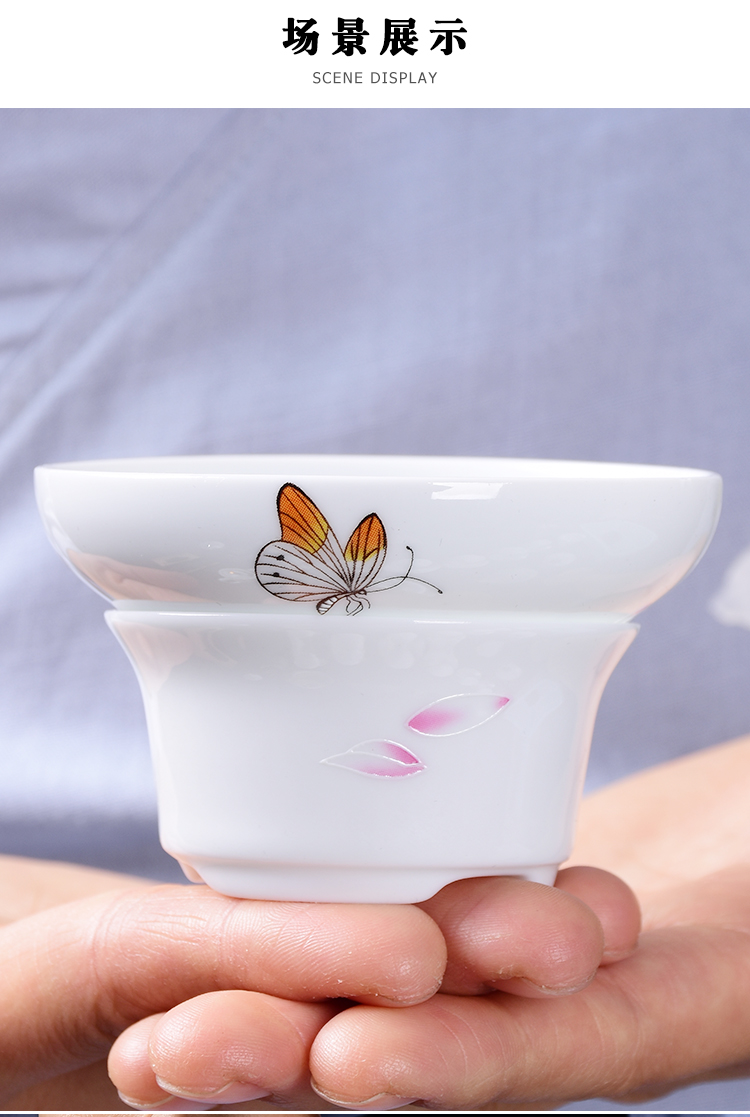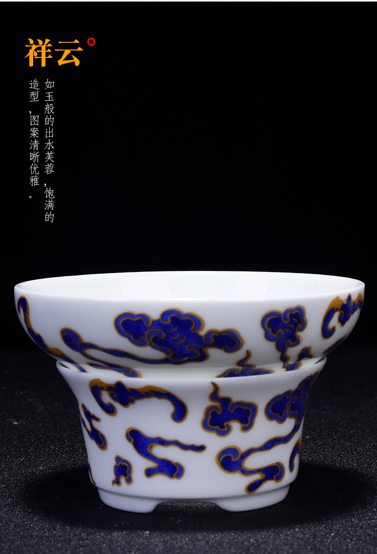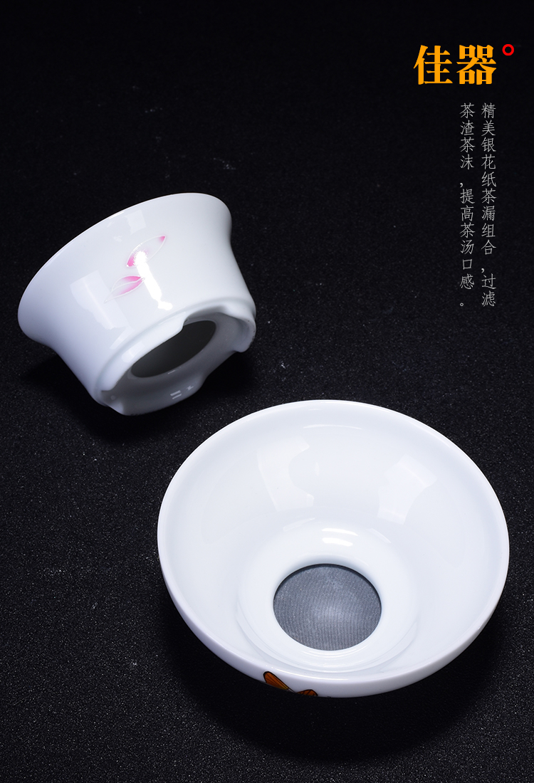 陶生活青花茶漏德化高白陶瓷功夫茶具茶葉過濾套組濾茶器茶道配件1入