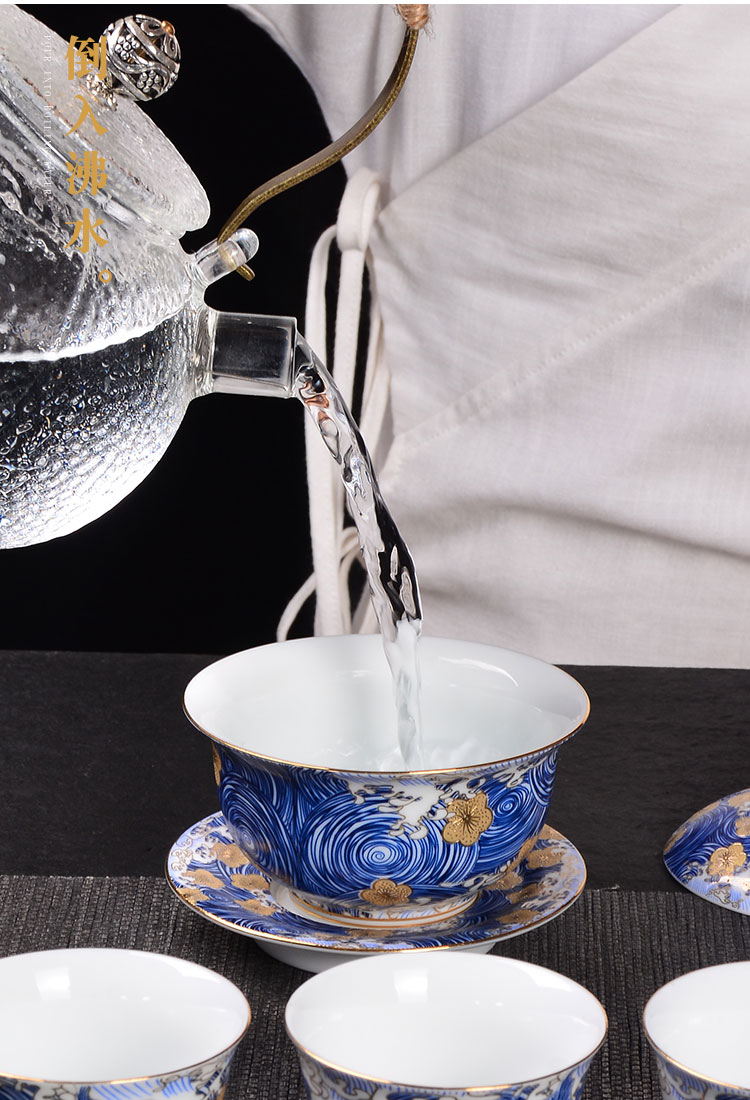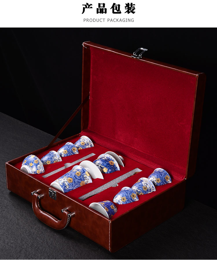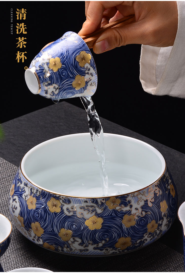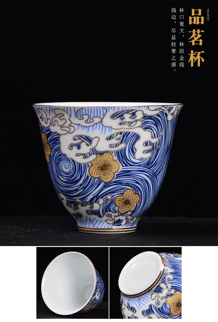 青花瓷茶具套裝家用簡約中式茶道功夫茶具景德鎮陶瓷茶壺茶杯整套1入