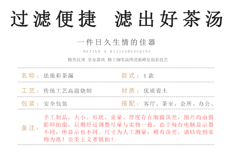 陶生活 陶瓷功夫茶漏琺瑯彩茶濾網 茶濾托過濾器茶道功夫茶具配件1入