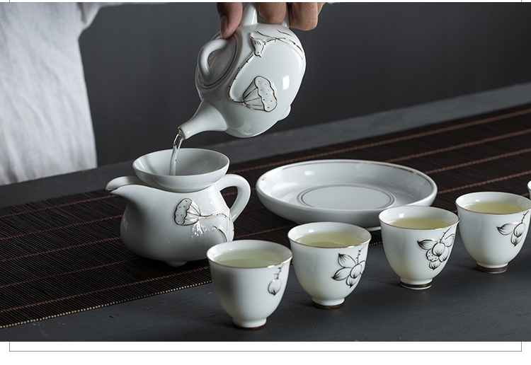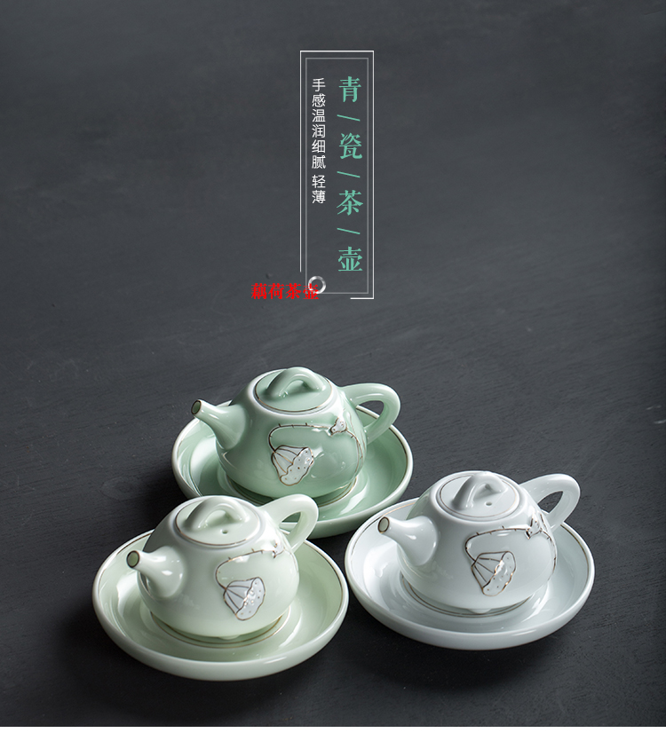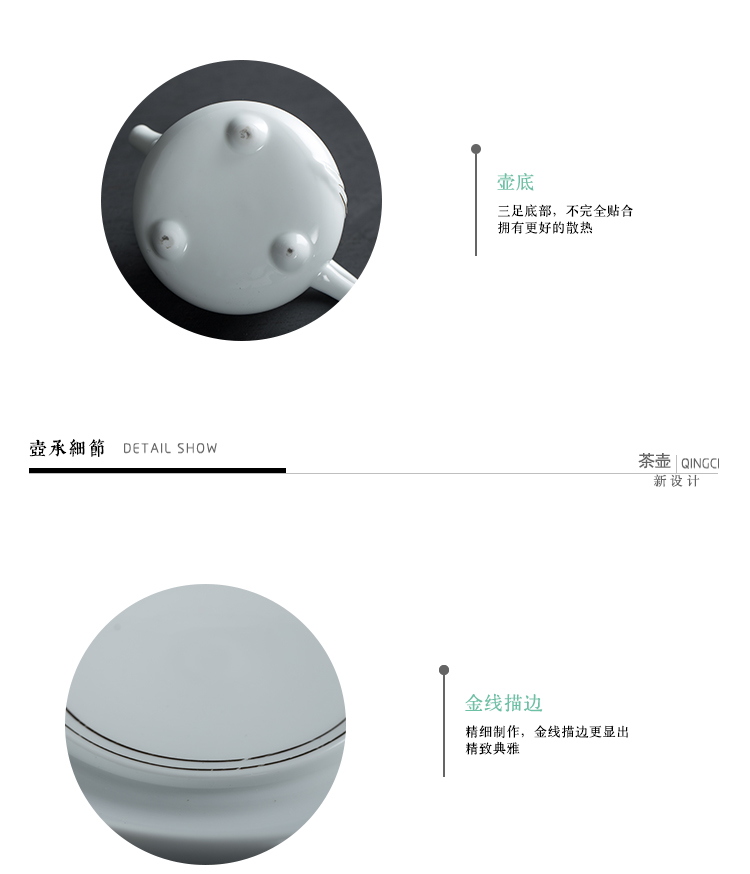 陶生活 白瓷茶壺陶瓷家用大號 手繪描金影青瓷茶具單壺景德鎮茶具1入