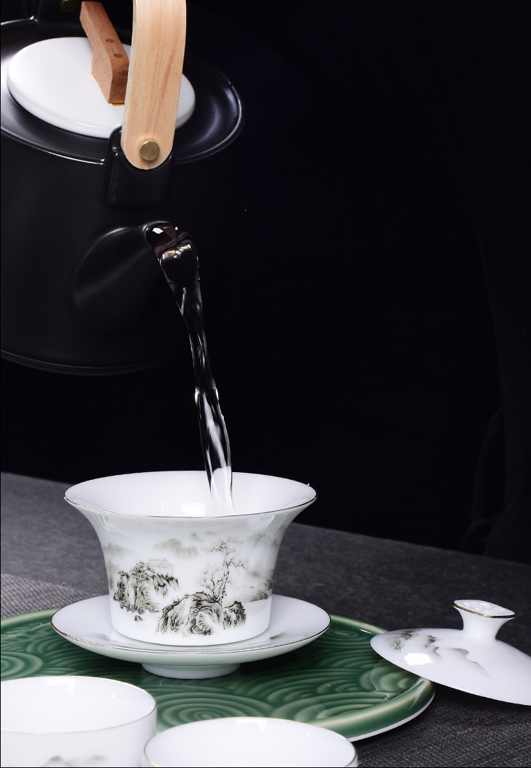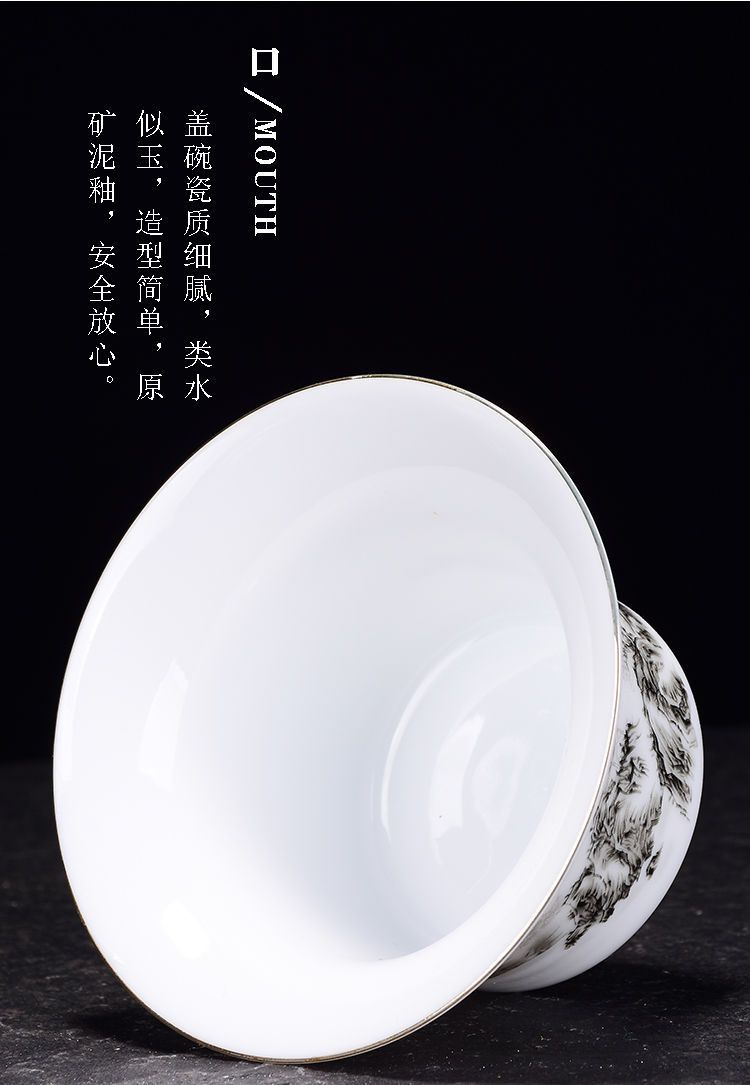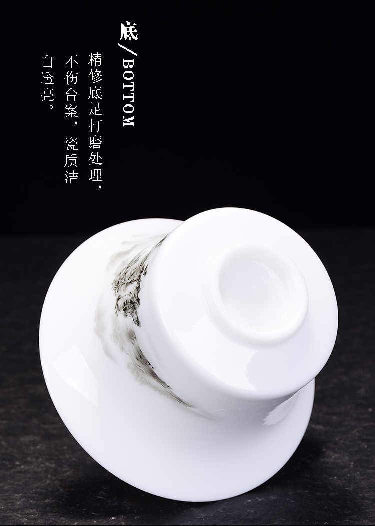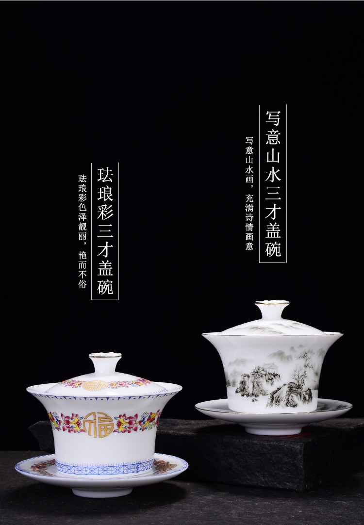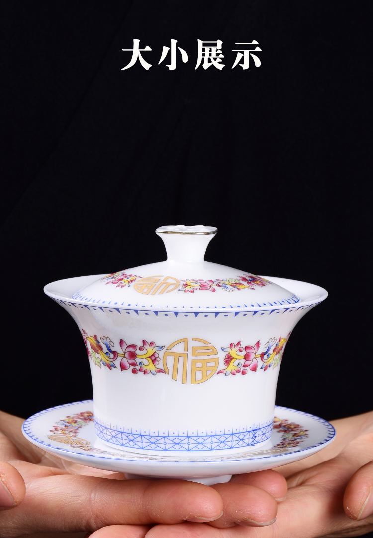 陶生活 陶瓷功夫茶具 蓋碗茶杯大號泡茶器 家用 三才碗茶碗手抓壺1入
