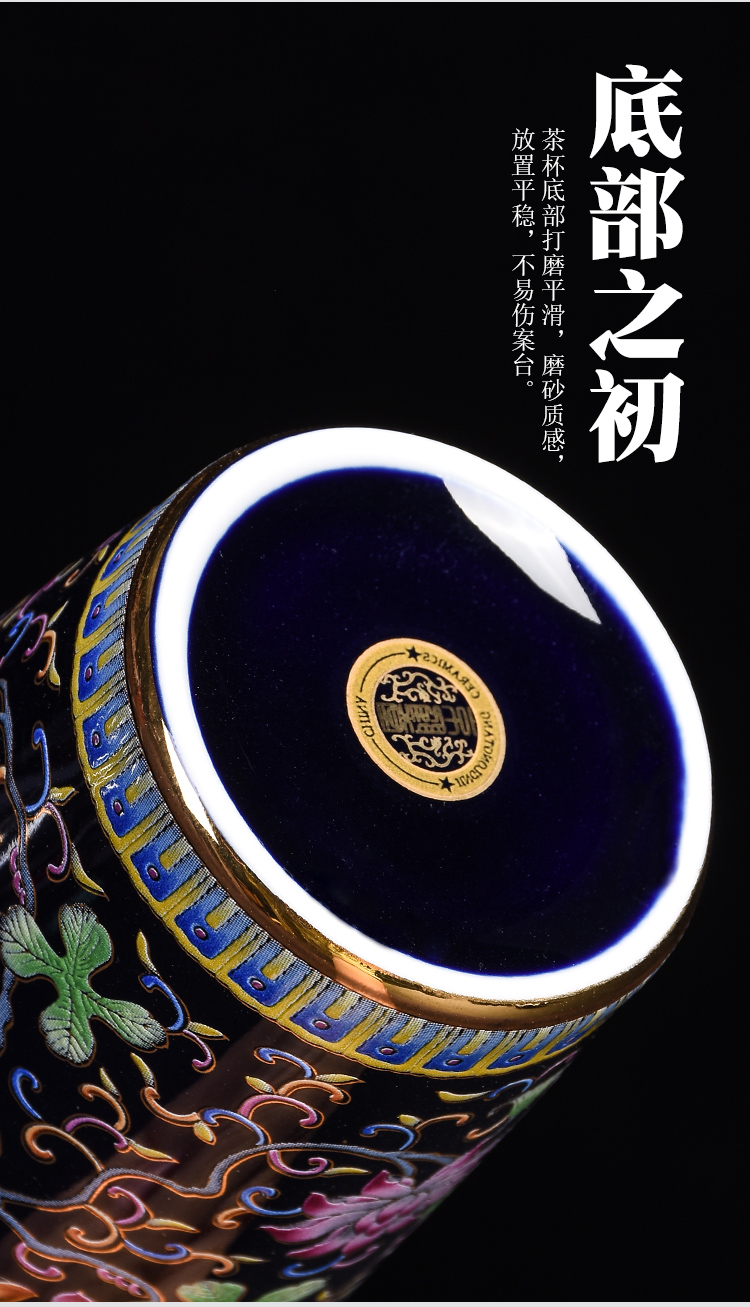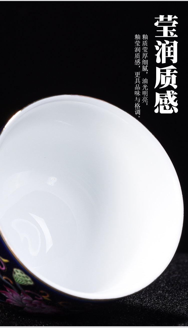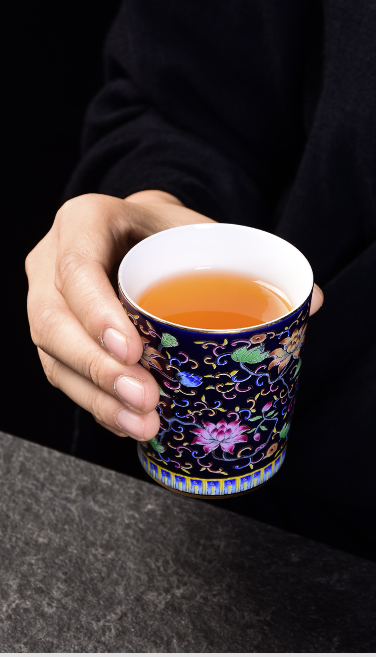 霽藍釉描金茶杯琺瑯彩纏枝蓮主人杯大號功夫茶碗景德鎮陶瓷茶杯1入