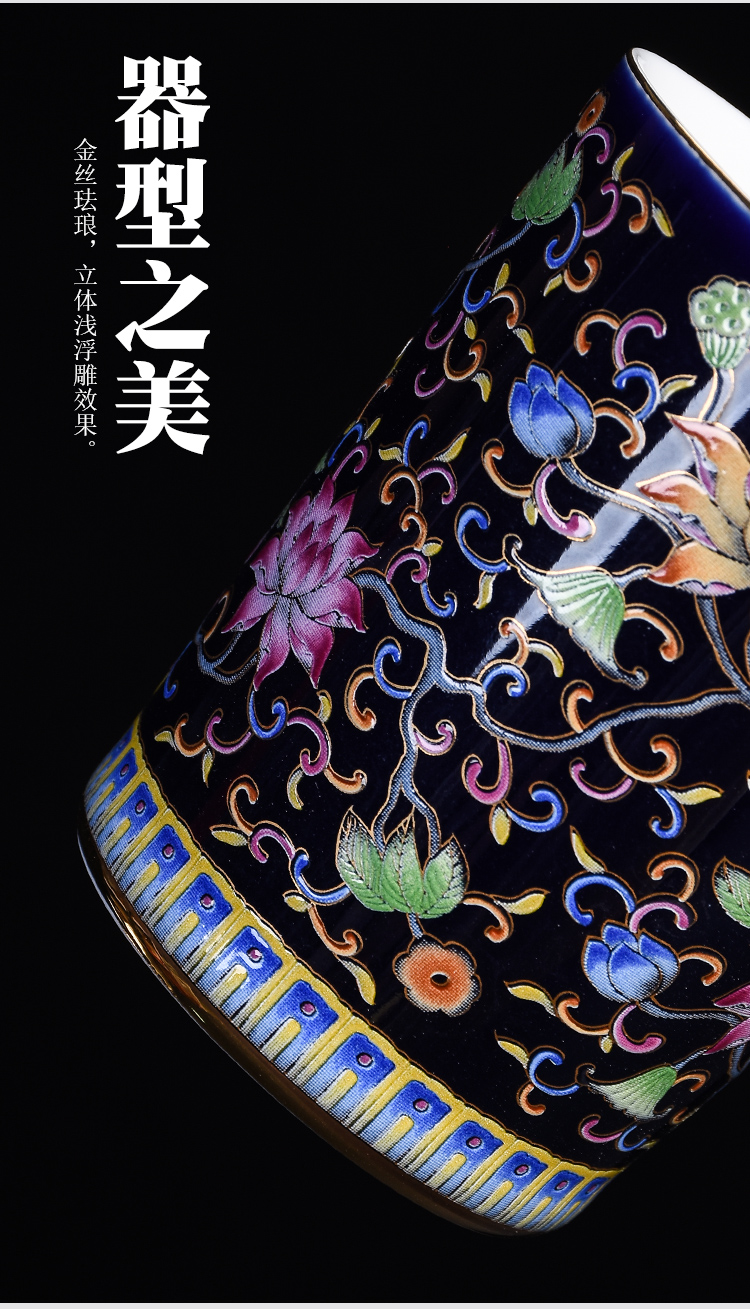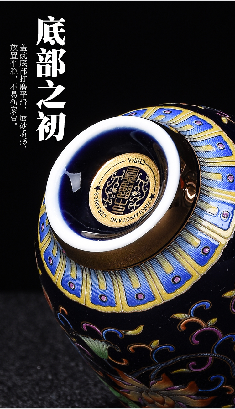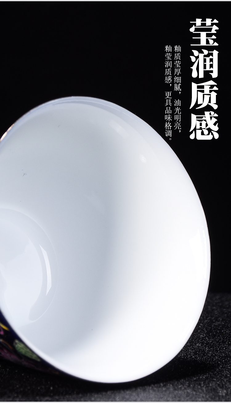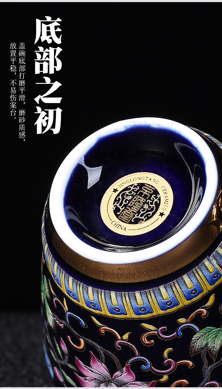 霽藍釉描金茶杯琺瑯彩纏枝蓮主人杯大號功夫茶碗景德鎮陶瓷茶杯1入