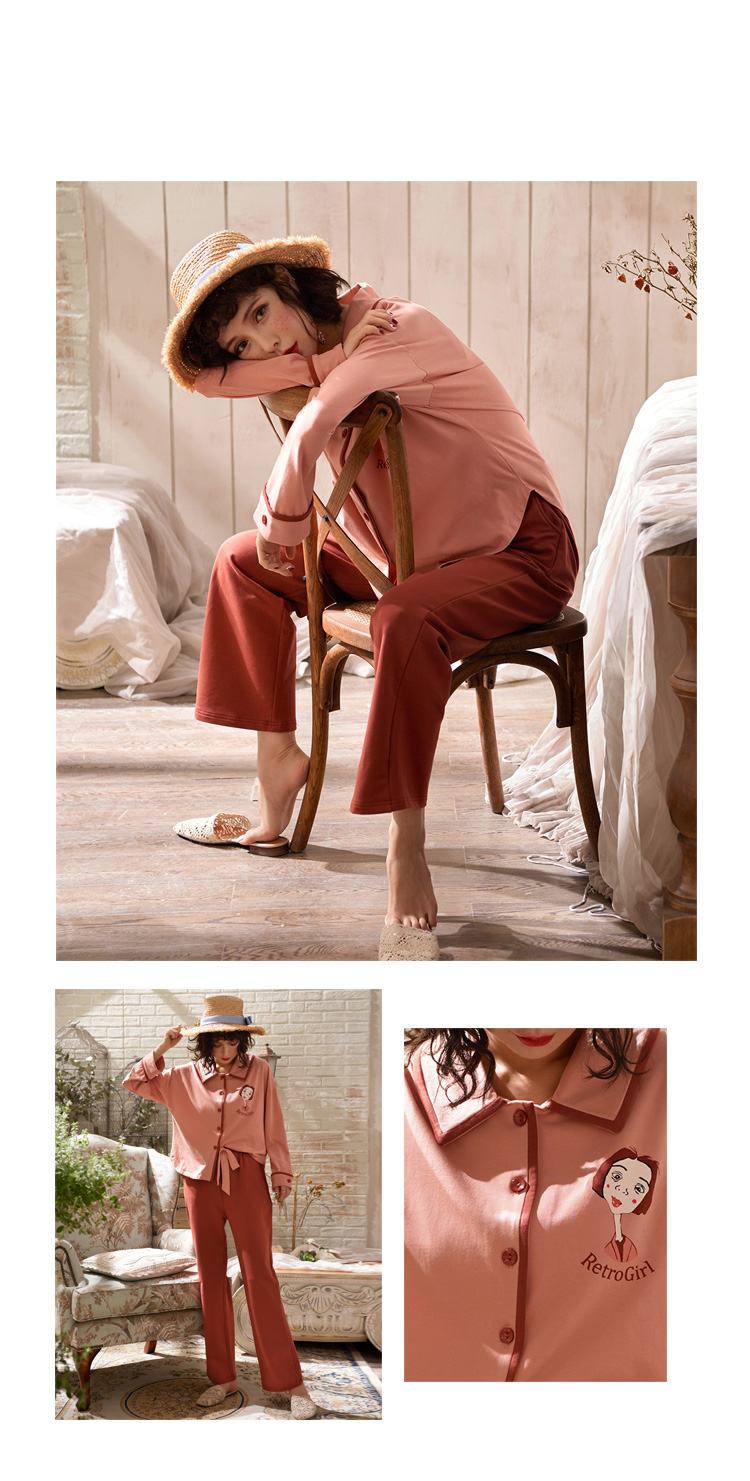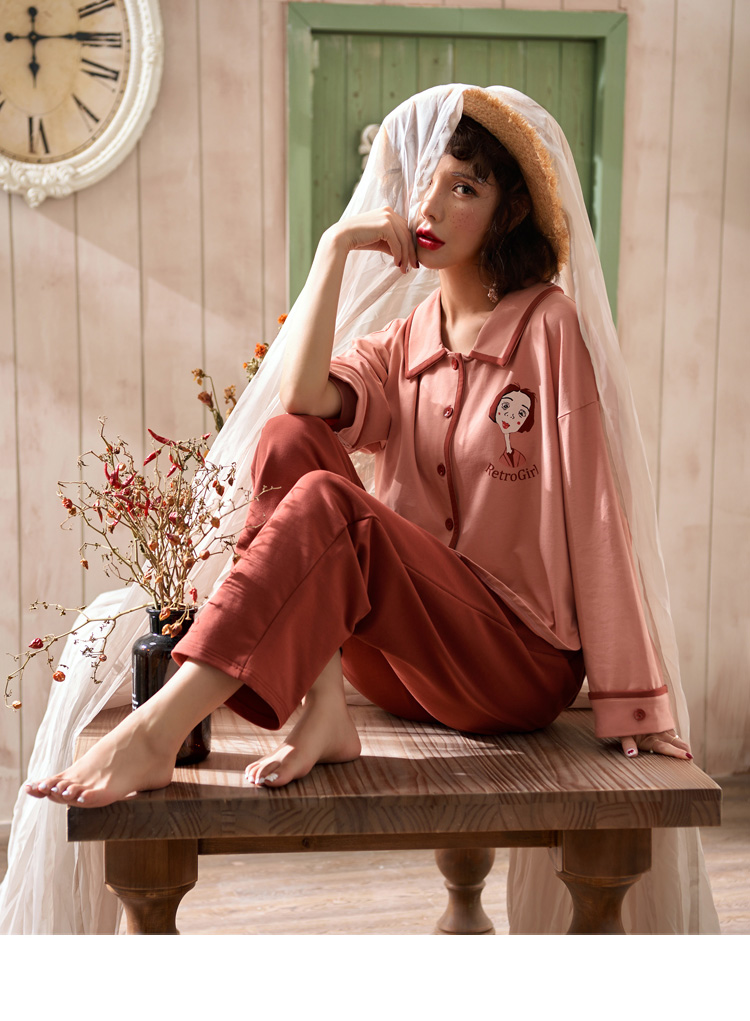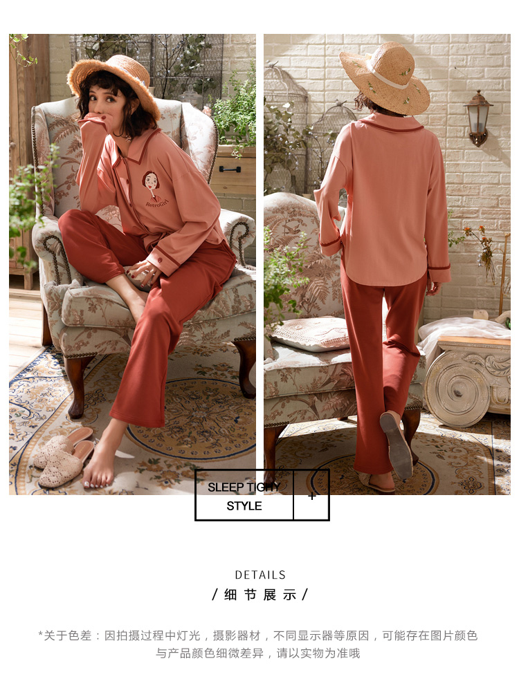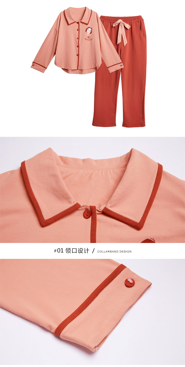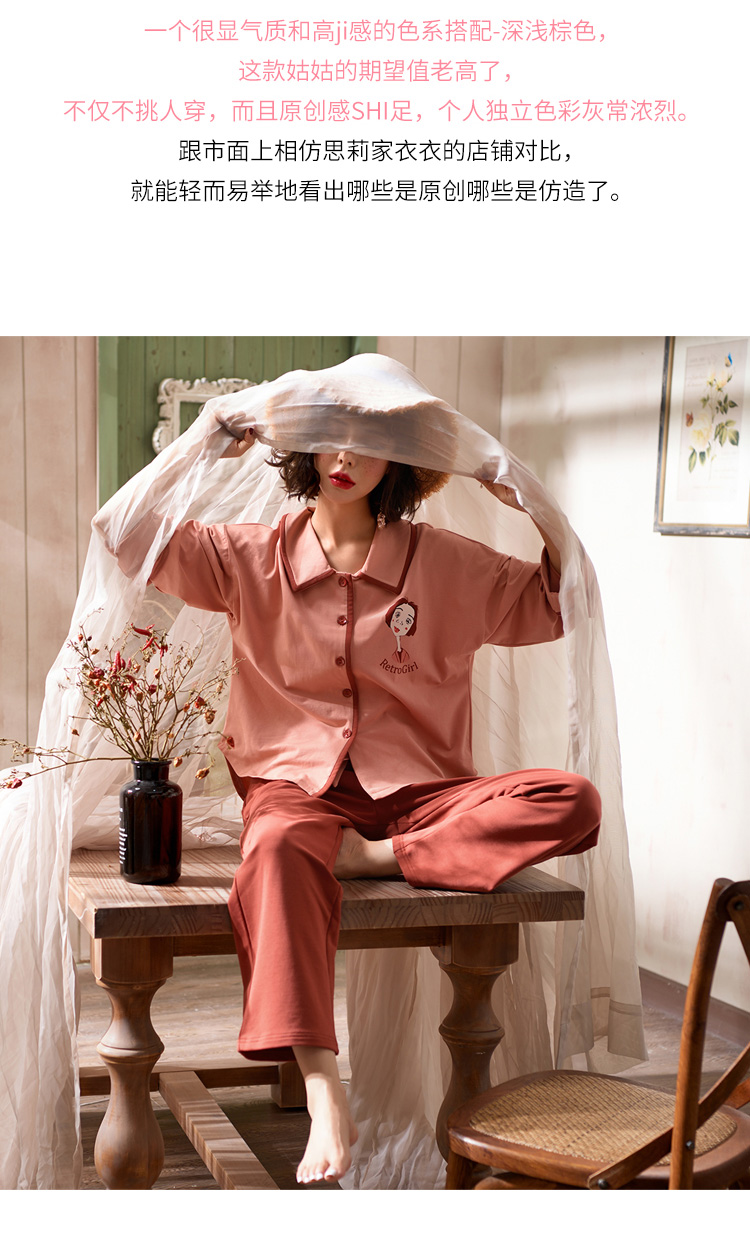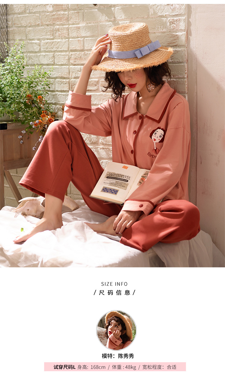 2018新款睡衣女秋純棉長袖春秋韓版秋款ins時尚原宿韓國學生套裝1入