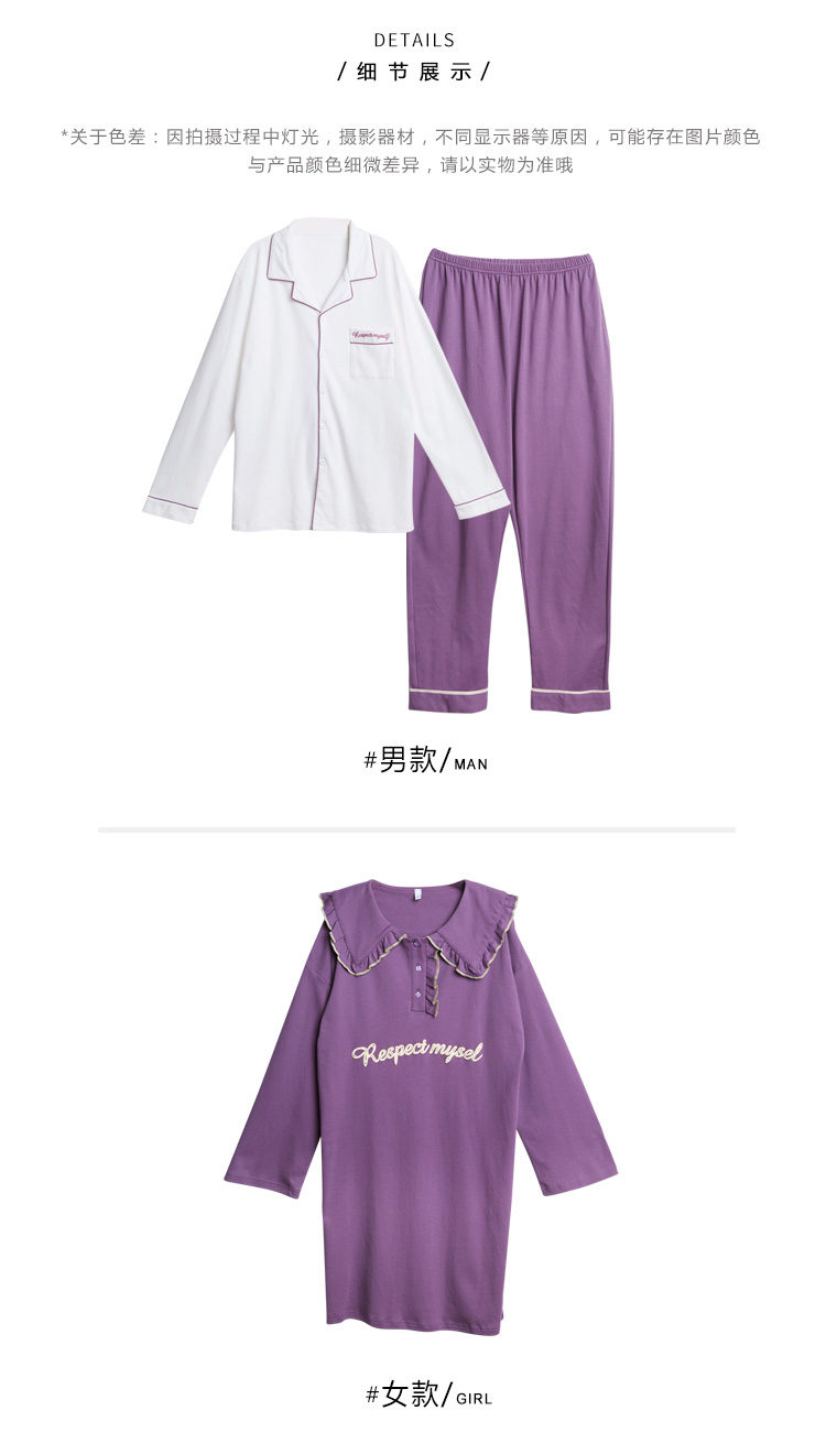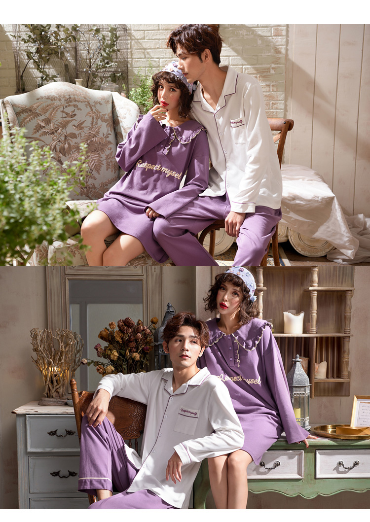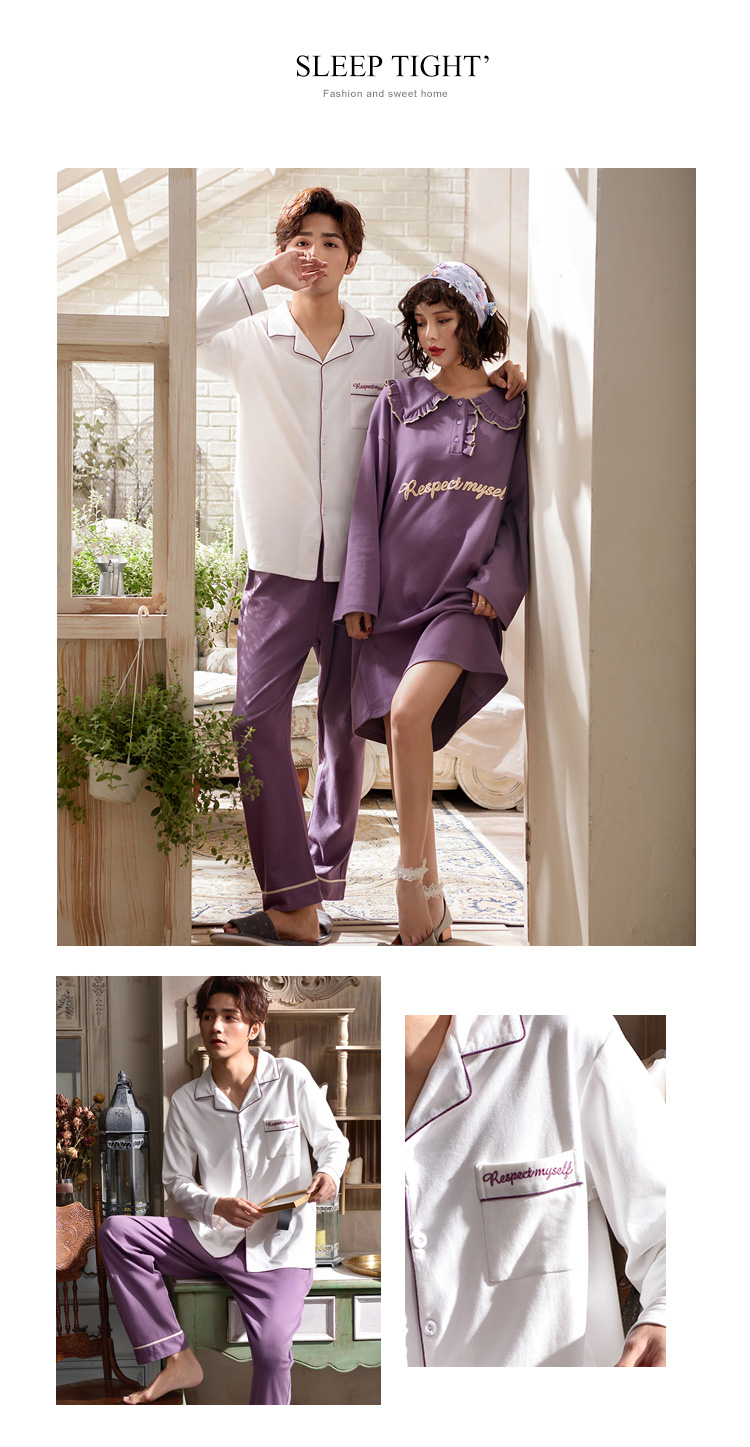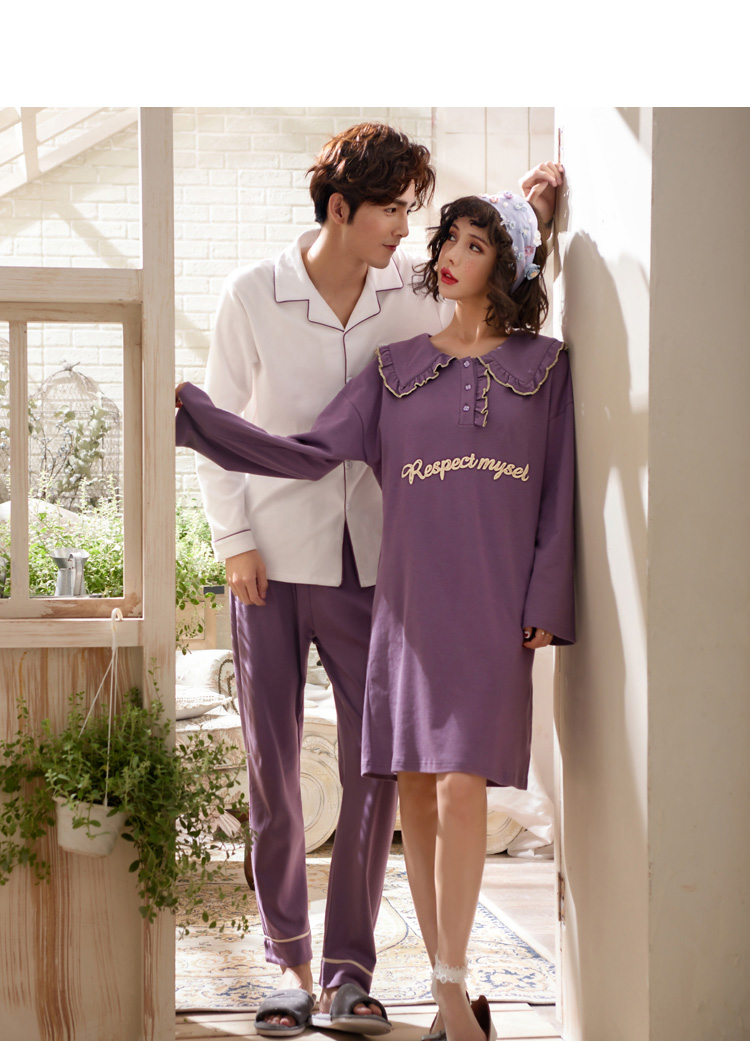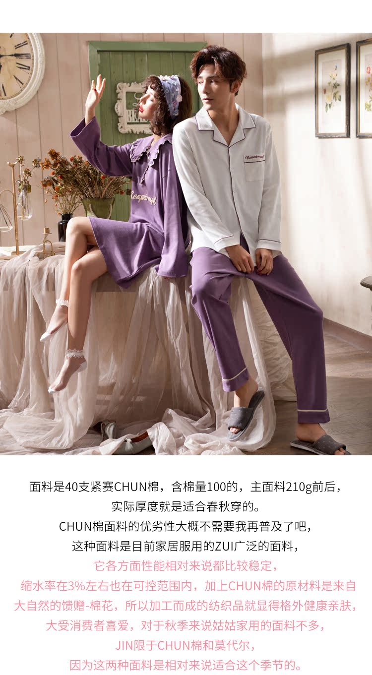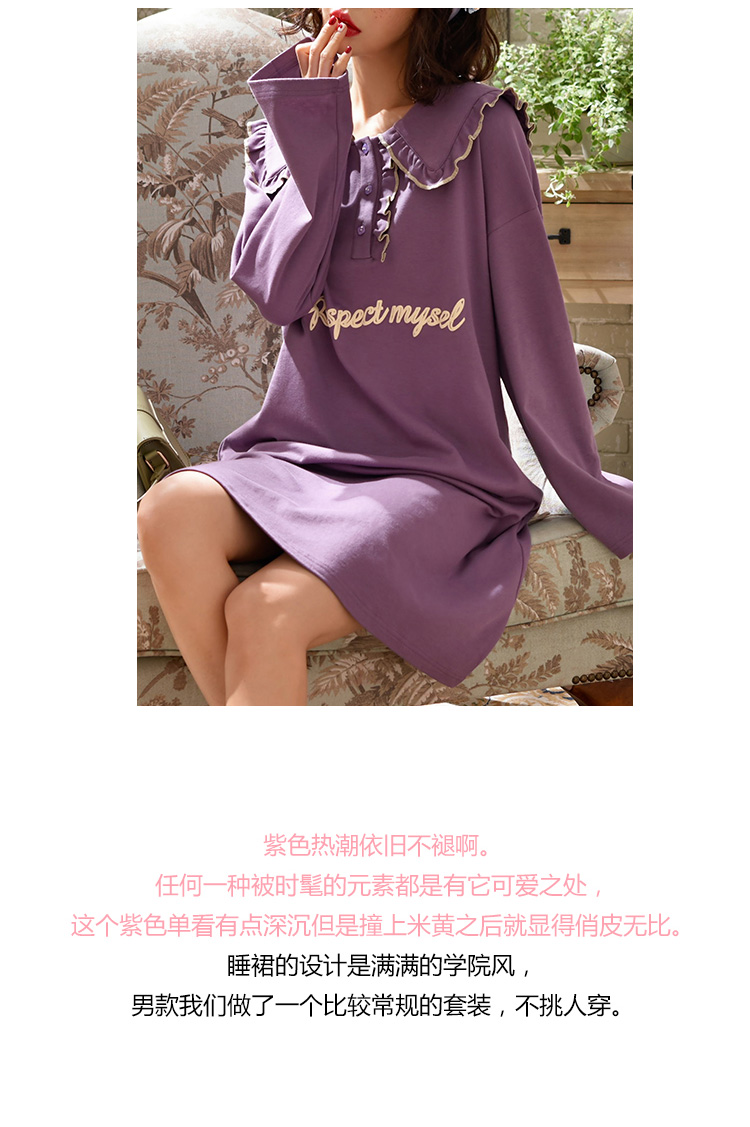 2018新款時尚情侶睡衣秋季純棉長袖秋天韓版可愛春秋款紫色睡裙女1入