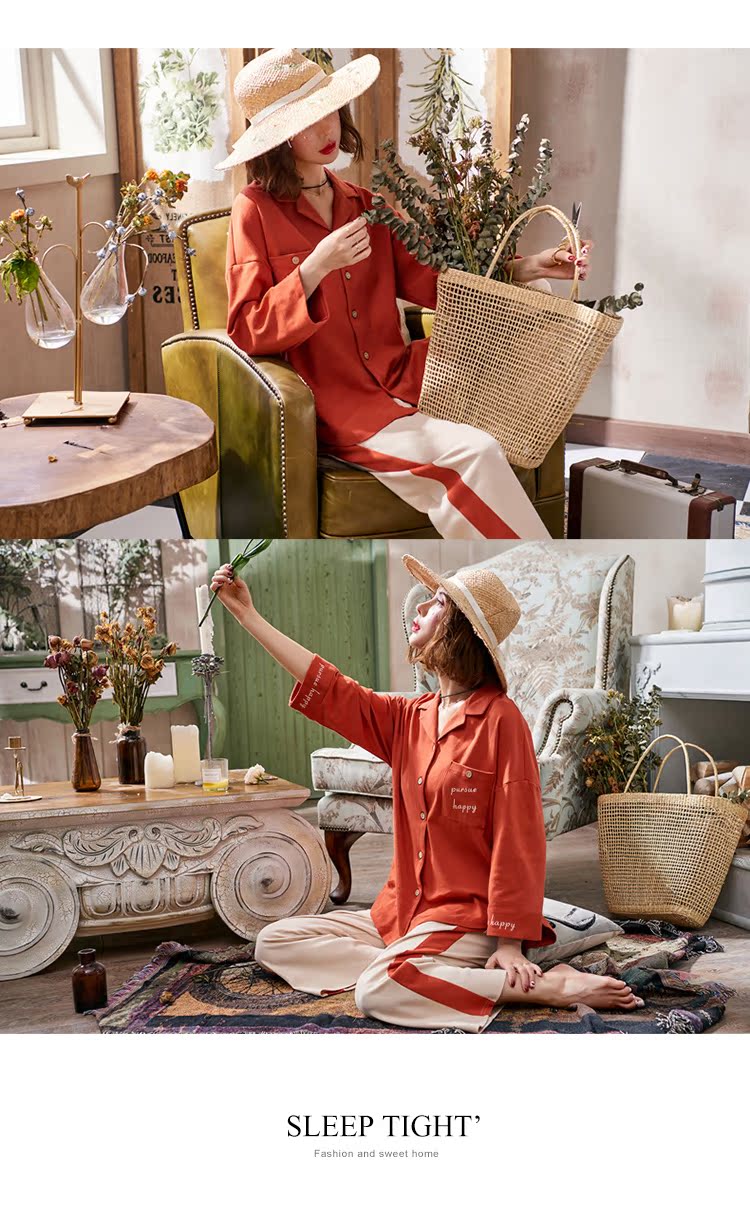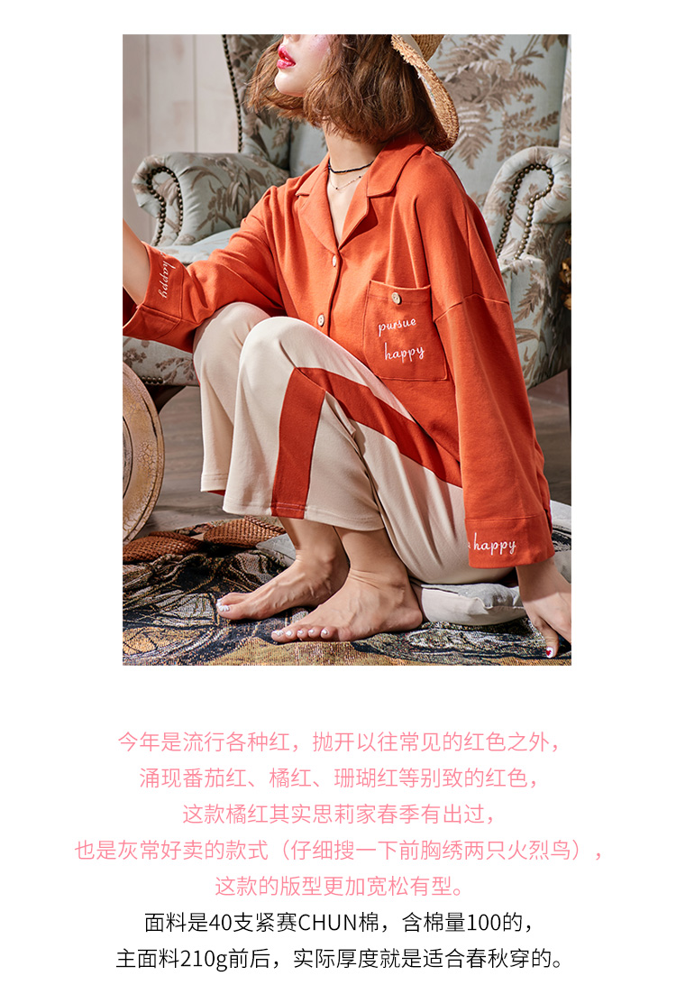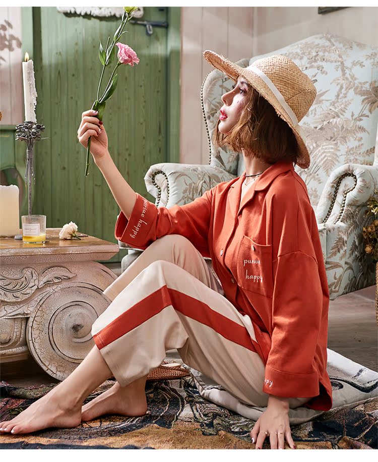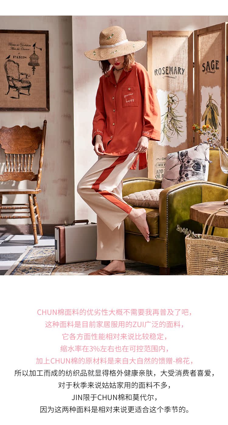 2018新款睡衣女秋純棉長袖春秋韓版寬松時尚秋款日式兩件套家居服1入