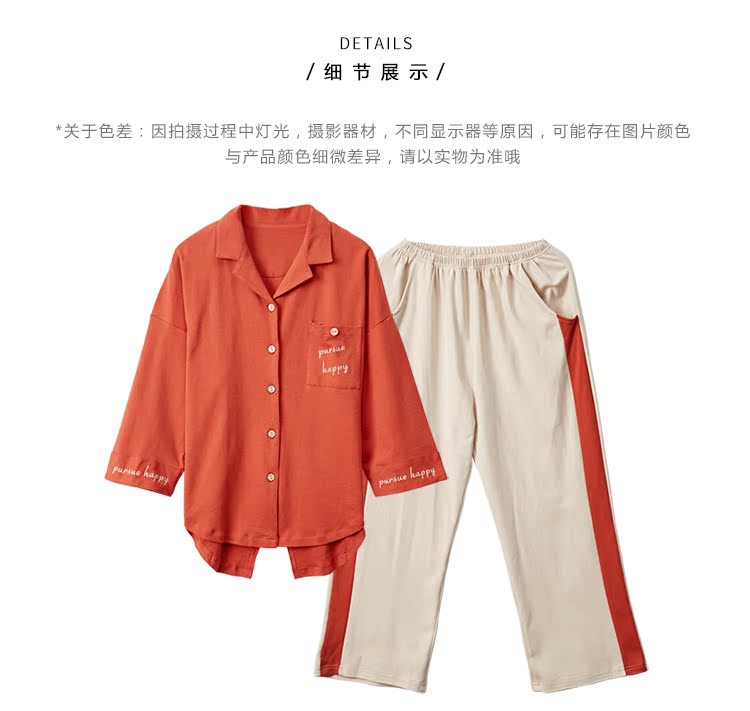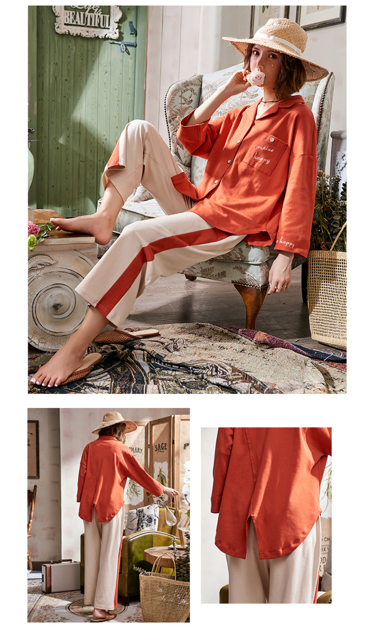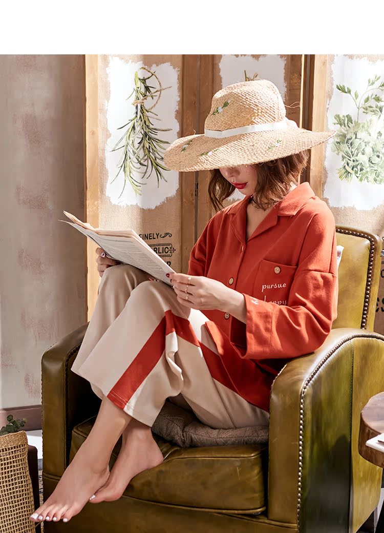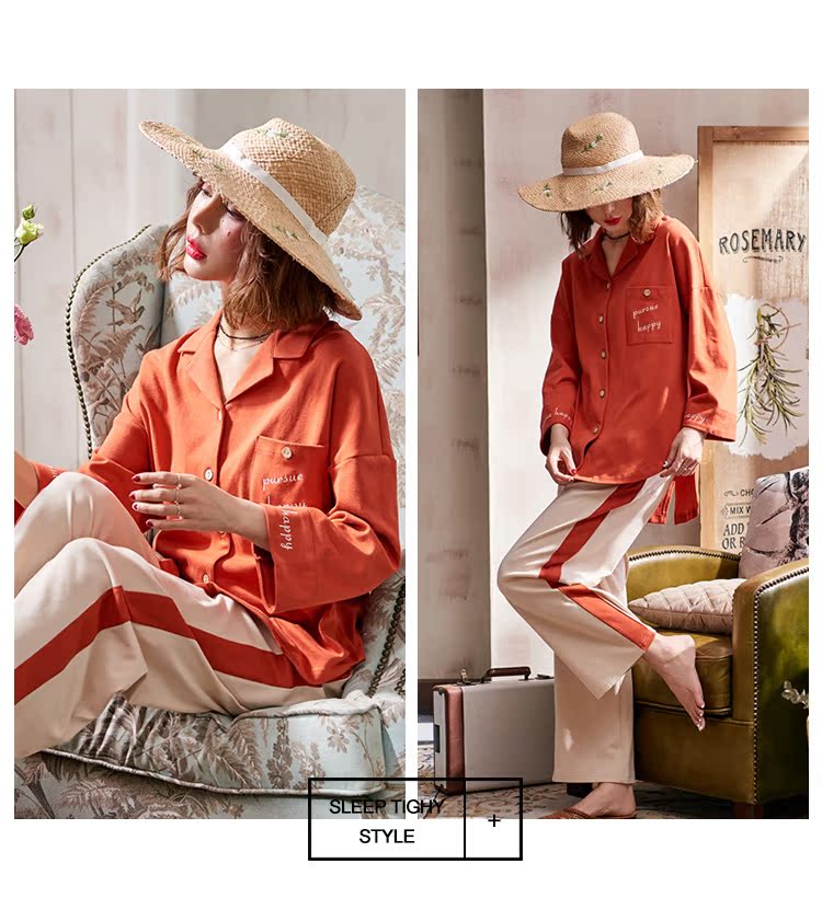 2018新款睡衣女秋純棉長袖春秋韓版寬松時尚秋款日式兩件套家居服1入