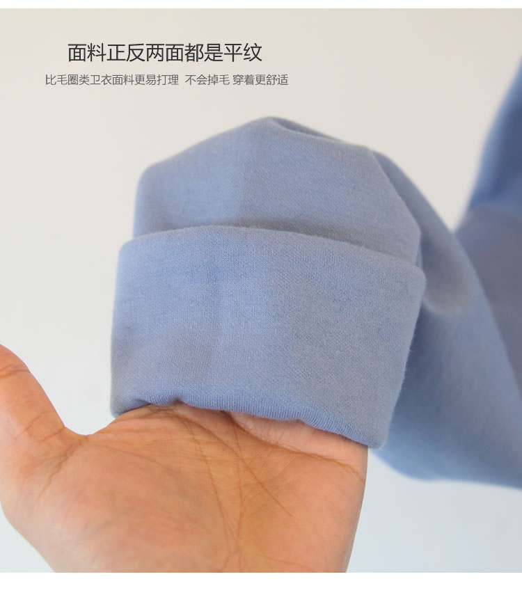 這個兩面都是平紋的,不是毛圈或抓絨類面料,非常好打理,不會出現掉毛等情況,