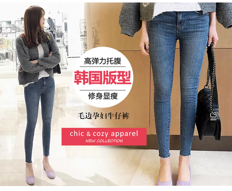 2019新款孕婦牛仔褲春秋潮媽九分彈力小腳打底褲孕婦褲子孕婦春裝1入