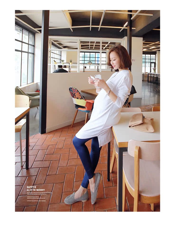 君如家原創自制商品! 簡約大方又不失細節的一款孕婦長T, 細節很耐看,胸前紐扣設計,圓弧下擺,小口袋等,百搭實用。 搭配一條打底褲就可以, 簡單易穿好看,打底或外穿效果都很棒 100%純棉面料 環保健康,柔和親膚,舒適透氣 純棉的 竹節棉 很軟很透氣 厚度比夏季T略厚一點點 長度大部分人穿了在大腿中部。 君如家重品質,店里產品均為自家獨家開發。 我們親自選購面料,親自監控工廠,保證品質。 雖然款式較少,但每一款都是精益求精,踏踏實實開發好每一款衣服。