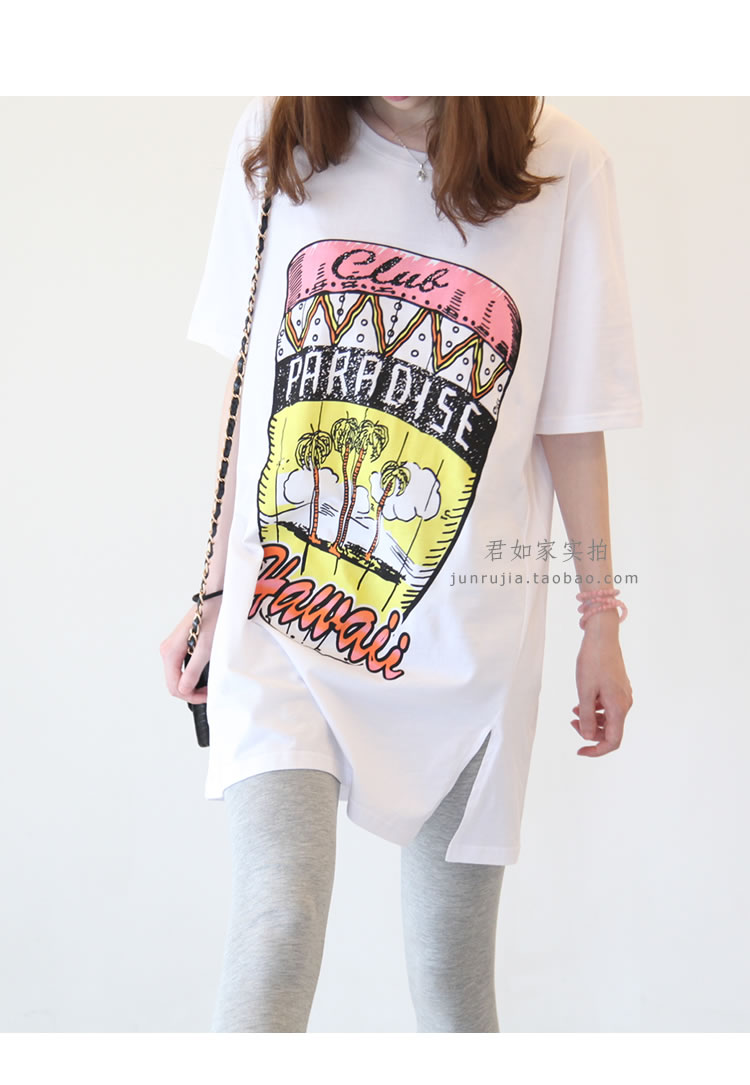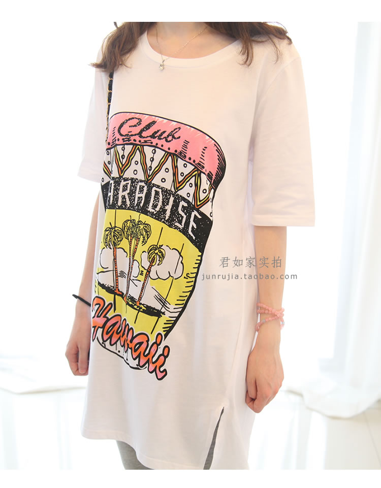 君如家原創自制商品。 夏天最喜歡這類寬松長T,超級簡單易穿,舒適又好看 下面搭配一條打底褲就能輕松穿出休閑韓范兒。 下擺單側斜開叉設計,休閑十足,長度的話到大腿中下部,完全可以當裙穿 印花T 圖案素材的選擇,圖案色彩搭配都很講究哦, 這個夏威夷主題的圖案加粉色淺黃色的配色傳遞輕松愉快的感覺,很好看。 面料是中等厚度的100%精梳棉,是我們自己親自訂織訂染的面料, 盡管訂織訂染面料起步數量大門檻高,但按需訂織的面料品質更加穩定可控,優勢也是很明顯的。 這款面料為優質長絨棉,質感柔和親膚,舒適透氣,白色顏色自然,不會偏藍或過于偏黃。 印花的環保性也很重要,我們合作的印花廠為本地中外合資大廠, ADIDAS公司委托授權指定印花公司, 采用GA型環保涂料 ,嬰幼兒級別,環保等級很高, 市面上很多低價劣質印花T,印花涂料有可能含有重金屬 甲醛 VOC等有害質, 希望大家能去了解下這方面知識。 另外我們 印花不會掉色,采用環保膠漿印工藝, 我們有親自測試,清水洗 或 加洗衣粉洗 都不會掉色。 新的一年 ,我們尋找真正優質的工廠 ,尋找經典好面料 精益求精,踏踏實實開發好每一款衣服。我們親自選購面料,親自監控工廠,保證品質。 下圖為君如家模特實拍,模特身高1.70米 體重90斤穿的M 大家參考下長度和寬松度