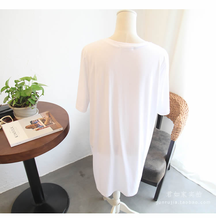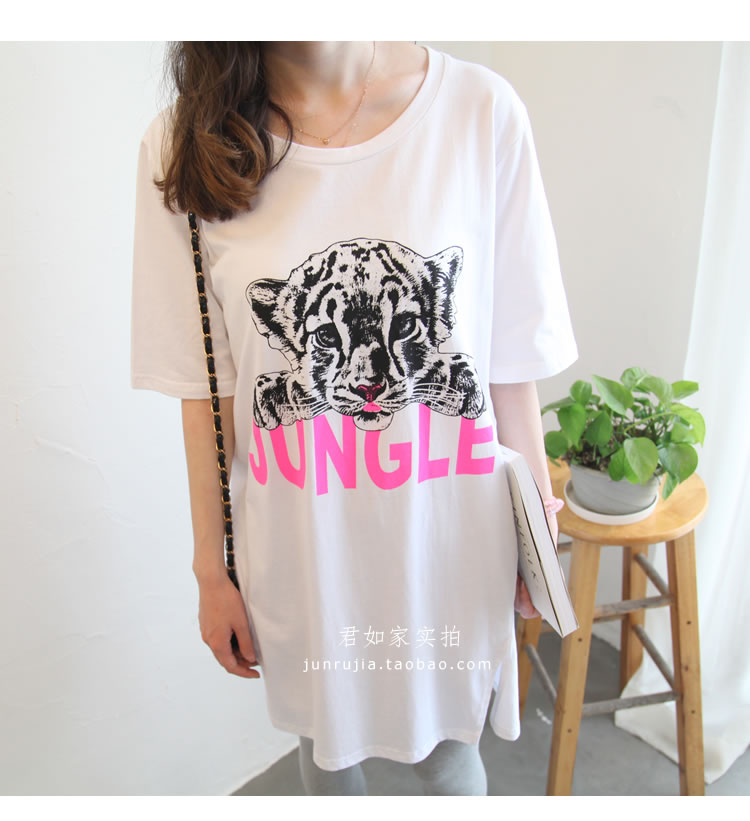 君如家原創自制 100%純棉面料 環保健康,柔和親膚,舒適透氣,不掉色,不起球,不變形 印花也不會掉色,我們親自測試過,親們買回去可以直接放水里洗下測試的。 夏天最喜歡這類寬松長T,超級簡單易穿,舒適又好看 下面搭配一條打底褲就能輕松穿出休閑韓范兒。 兩側開叉設計,休閑十足,長度的話到大腿中下部,完全可以當裙穿 玫紅色的字母和黑白小獅子圖案配色很清新洋氣, 面料是中等厚度的100%精梳棉,是我們自己親自訂織訂染的面料, 盡管訂織訂染面料起步數量大門檻高,但按需訂織的面料品質更加穩定可控,優勢也是很明顯的。 這款面料為優質長絨棉,質感柔和親膚,舒適透氣,白色顏色自然,不會偏藍或過于偏黃。 印花的環保性也很重要,我們合作的印花廠為本地中外合資大廠, 采用環保膠漿絲網印工藝,GA型環保涂料,嬰幼兒級別,環保等級很高, 另外我們 印花不會掉色,我們有親自測試,清水洗 或 加洗衣粉洗 都不會掉色。 新的一年 ,我們尋找真正優質的工廠 ,尋找經典好面料 精益求精,踏踏實實開發好每一款衣服。我們親自選購面料,親自監控工廠,保證品質。 下圖為君如家模特實拍,模特身高1.70米 體重90斤 模特肩膀正,比較撐衣服,為了松垮效果穿的大碼 如果不喜歡太大,小寬松就行的話,建議體重90斤~115斤選中碼,體重120斤~160斤選大碼