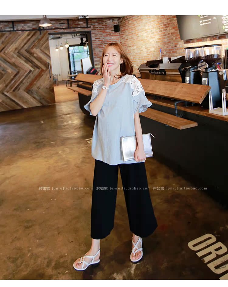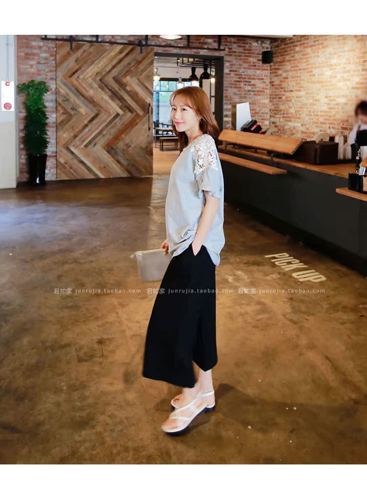 褲子寬松九分闊腿褲版型,夏季穿飄逸涼快美觀,