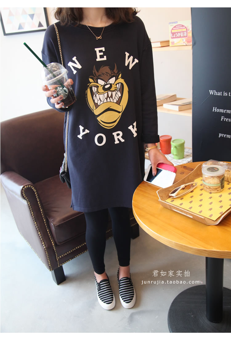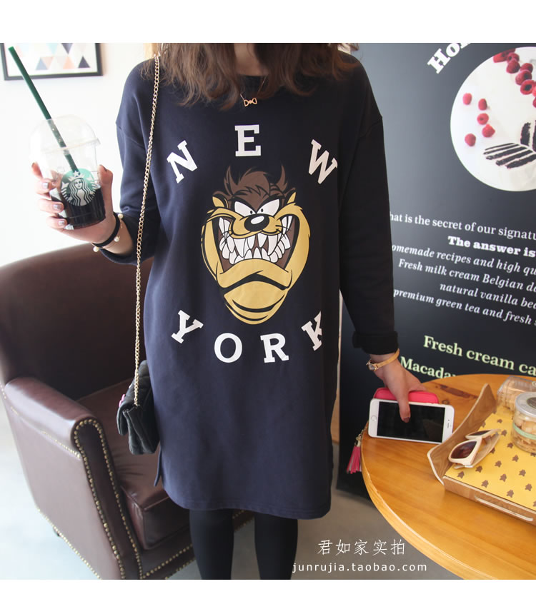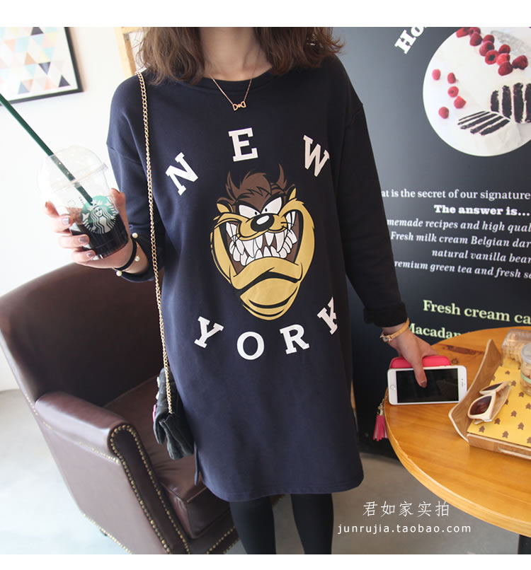 君如家獨家原創自制! 面料是100%全棉, 中厚全棉毛圈衛衣面料,適合春秋季節單穿或打底 藏青色很襯膚色,卡通印花圖案配色也很洋氣, 寬松中長款版型,長度大部分人穿了在大腿中下位置,2側帶口袋,下擺小開叉,休閑十足, 搭配條打底褲,舒適易穿,輕松休閑,好看~ 做個3個尺碼 胖瘦都能穿,孕婦 非孕婦都可以穿。 君如家重品質,店里商品基本都是純棉,我們非常重視染色,印花等環保度,衣服一般都沒有異味, 老顧客都知道品質,性價比很高,不會讓大家失望的。 下圖為君如家模特100%實拍,模特身高1.70米 體重90斤 穿的M寬松效果