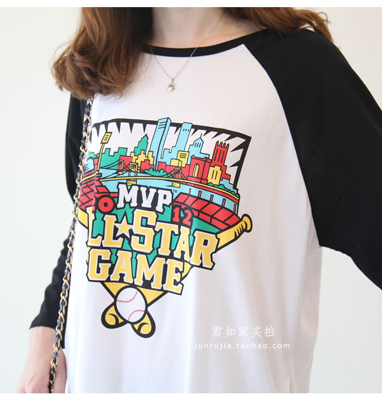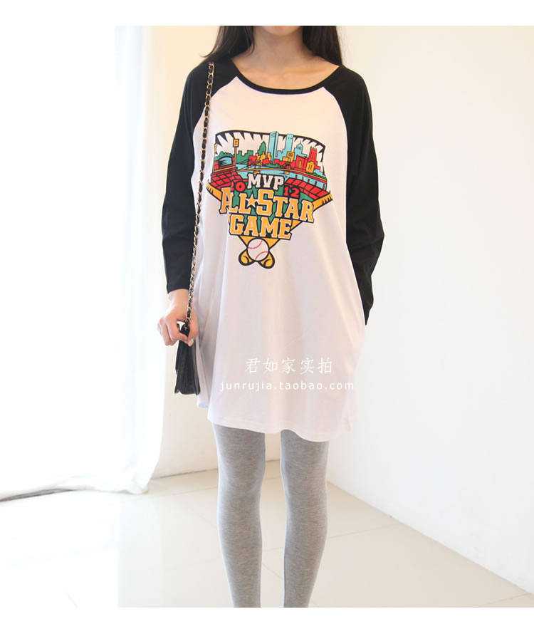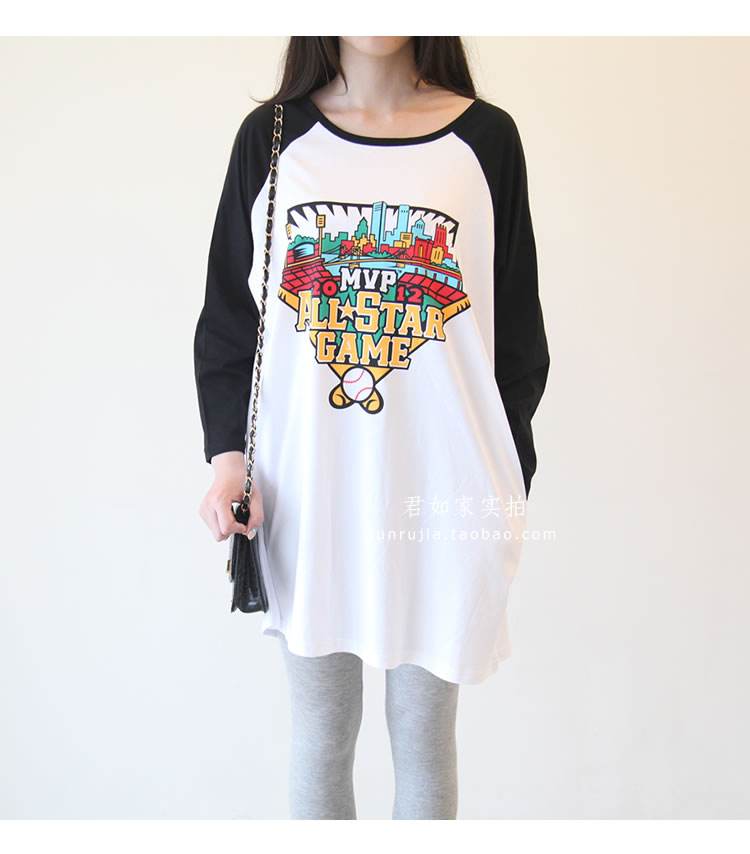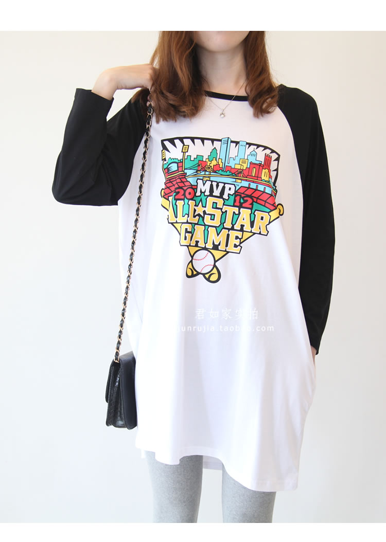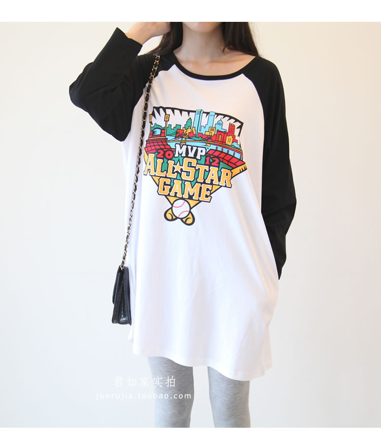 君如家原創自制商品。 這款是夏季熱賣短袖的升級版哦,做成長袖,春秋季單穿或打底穿效果都很棒哦, 下面搭配一條打底褲就能輕松穿出休閑韓范兒。 兩側帶口袋設計,休閑十足,長度的話到大腿中下部,完全可以當裙穿 棒球主題印花 上身效果很洋氣。 面料是中等厚度的100%精梳棉,是我們自己親自訂織訂染的面料, 盡管訂織訂染面料起步數量大門檻高,但按需訂織的面料品質更加穩定可控,優勢也是很明顯的。 這款面料為優質長絨棉,質感柔和親膚,舒適透氣,白色顏色自然,不會偏藍或過于偏黃。 印花的環保性也很重要,我們合作的印花廠為本地中外合資大廠, ADIDAS公司委托授權指定印花公司, 采用GA型環保涂料 ,嬰幼兒級別,環保等級很高, 市面上很多低價劣質印花T,印花涂料有可能含有重金屬 甲醛 VOC等有害質, 希望大家能去了解下這方面知識。 另外我們 印花不會掉色,采用環保膠漿印工藝, 我們有親自測試,清水洗 或 加洗衣粉洗 都不會掉色。 新的一年 ,我們尋找真正優質的工廠 ,尋找經典好面料 精益求精,踏踏實實開發好每一款衣服。我們親自選購面料,親自監控工廠,保證品質。 下圖為君如家模特實拍,模特身高1.70米 體重100斤 穿的M 大家參考下長度和寬松度