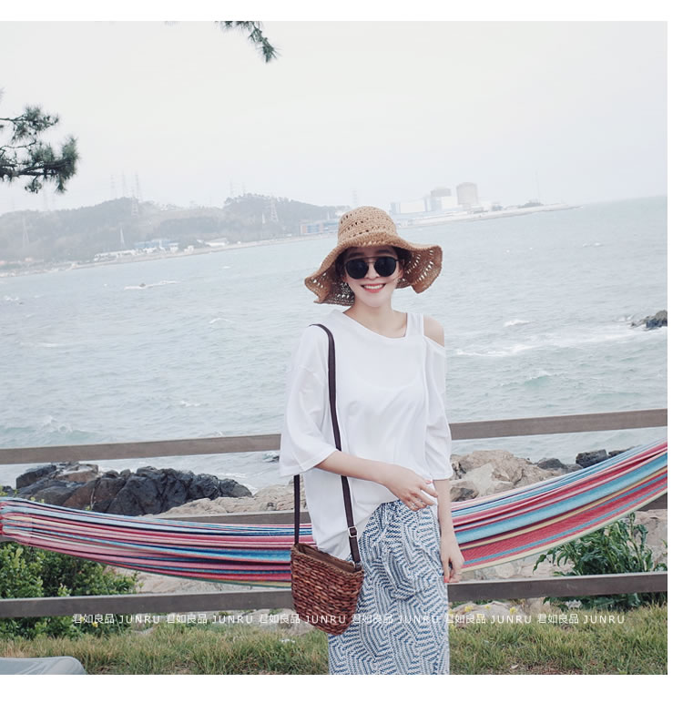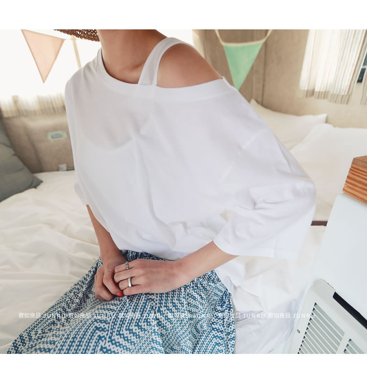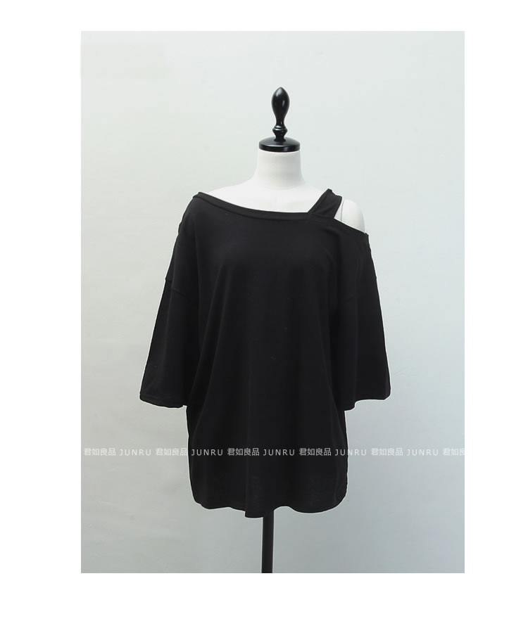 寬松露肩T恤時尚好搭,單側露肩設計很加分