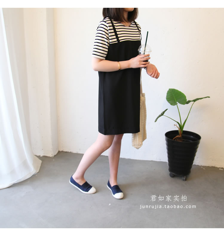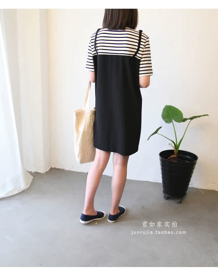 經典條紋拼接的假兩件連衣裙,非常俏皮減齡,