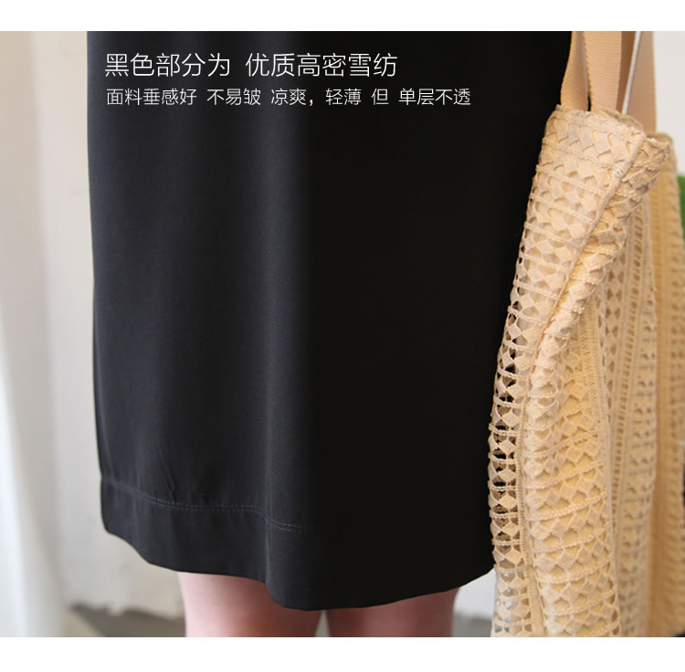 黑色背帶裙部分是高密雪紡,輕薄涼爽,質感好,單層不透。