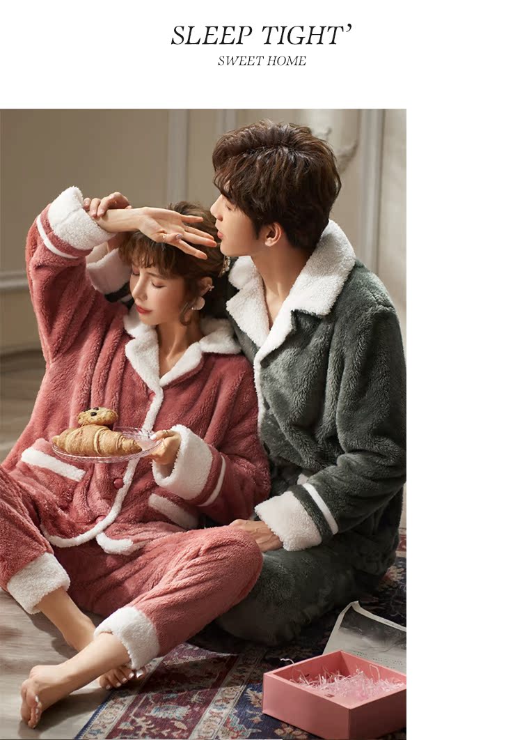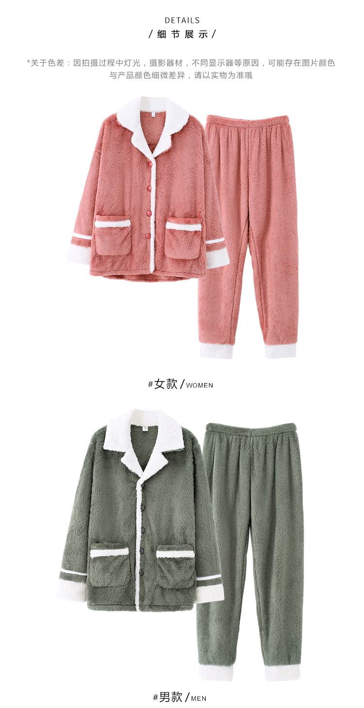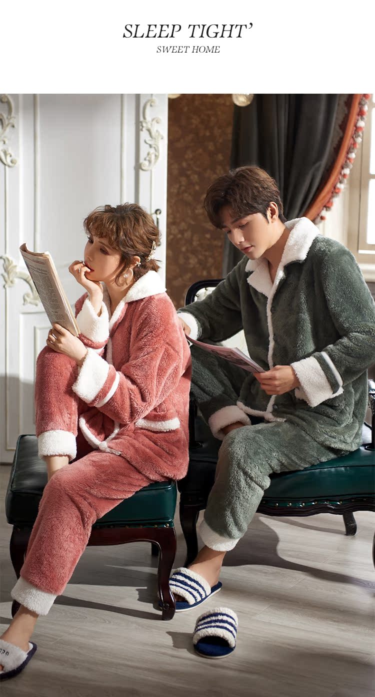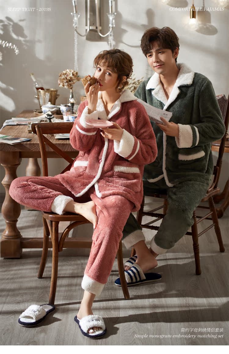 2019新款情侶睡衣秋冬款珊瑚絨韓版ins潮網紅男士毛絨可外穿套裝1入