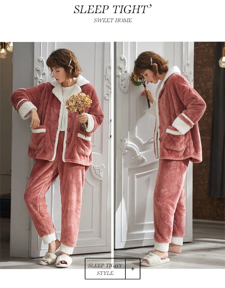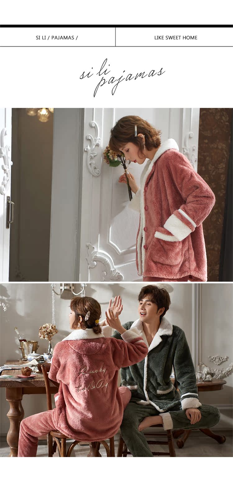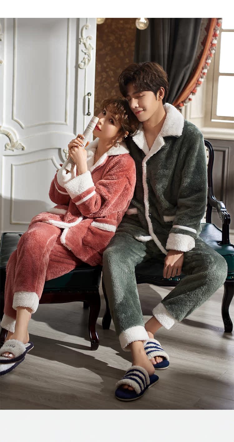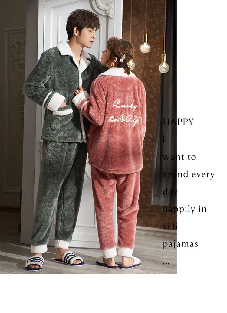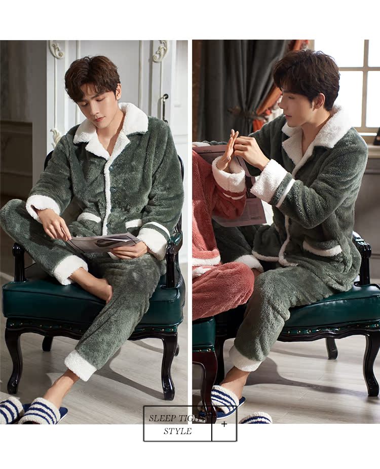 2019新款情侶睡衣秋冬款珊瑚絨韓版ins潮網紅男士毛絨可外穿套裝1入