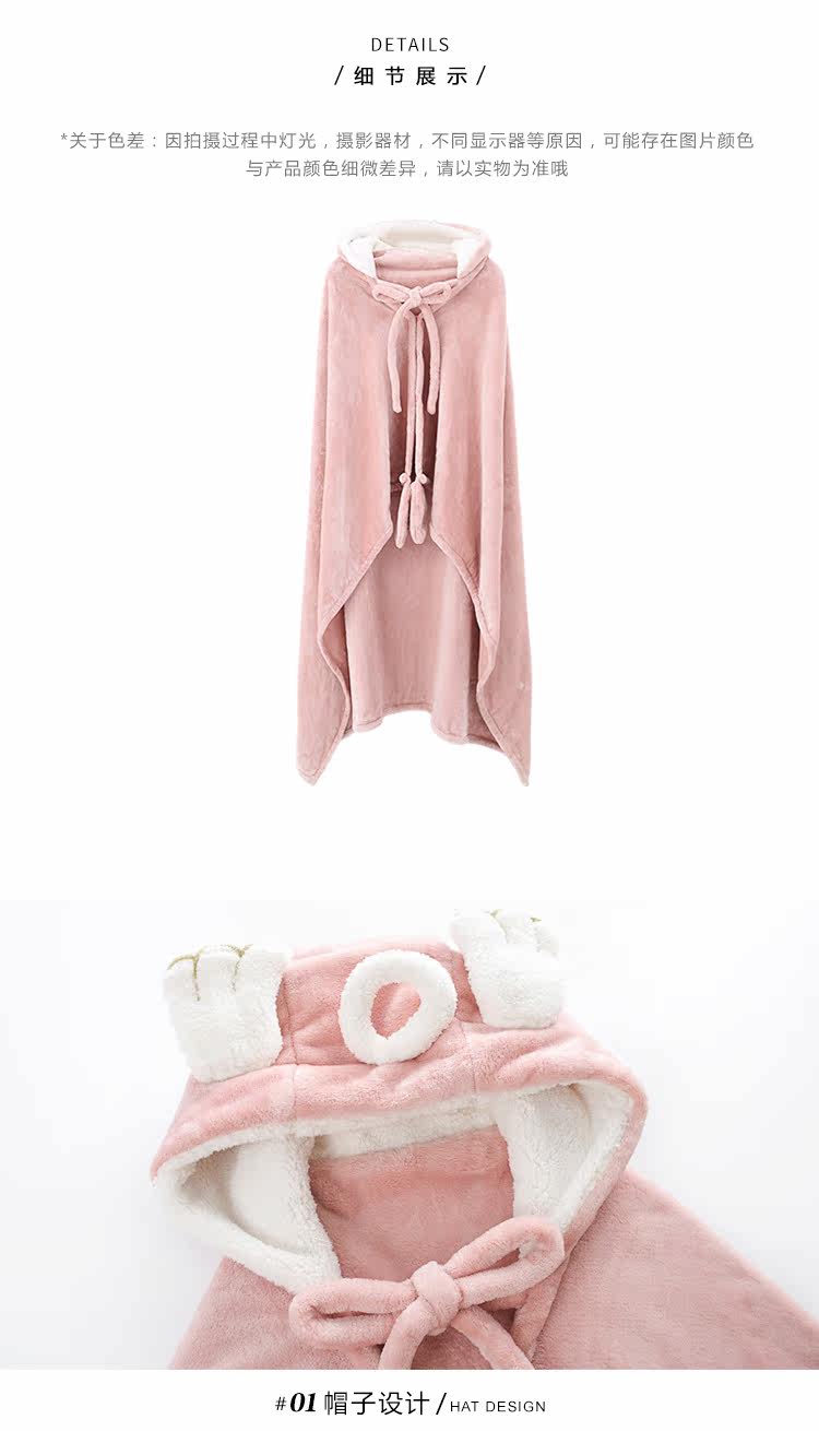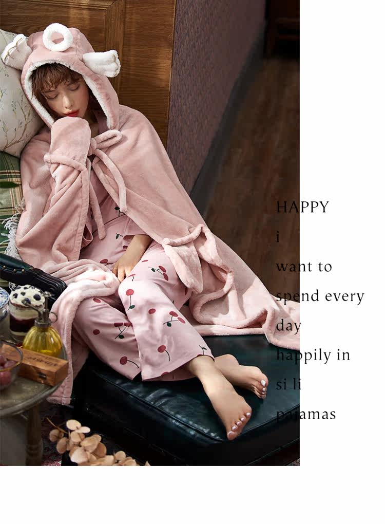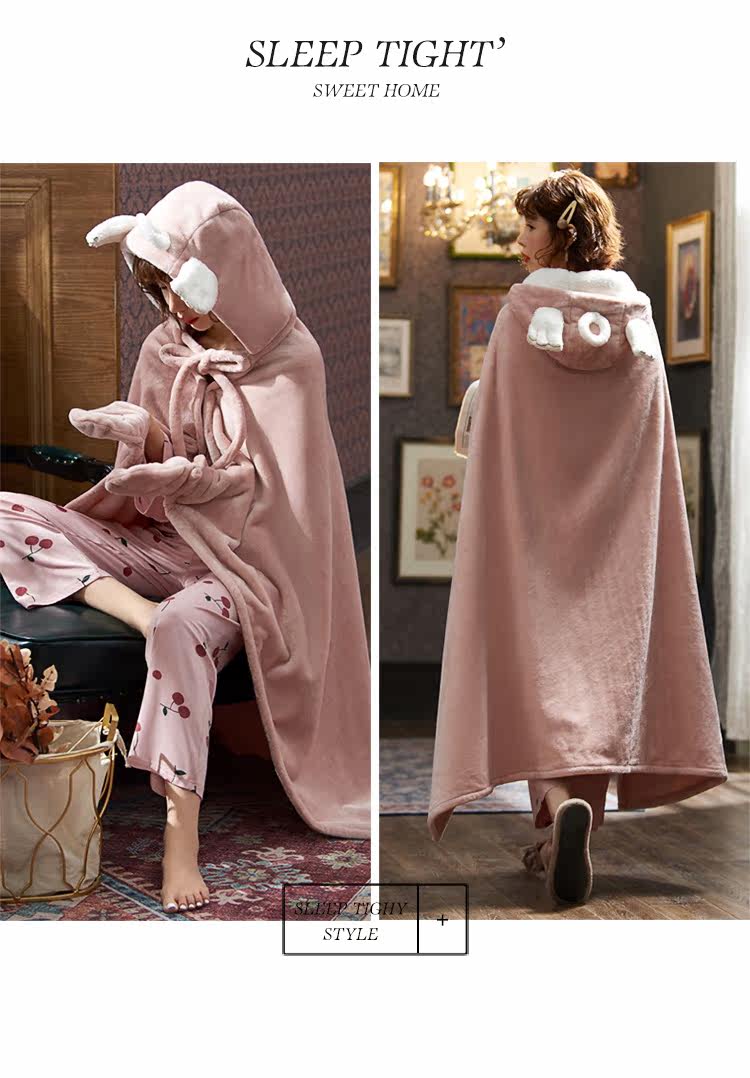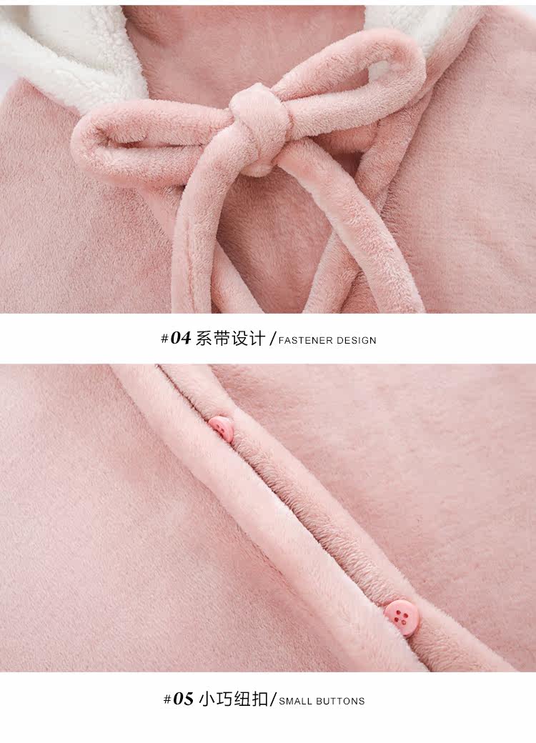 睡衣女秋冬珊瑚絨加厚加絨斗篷冬天毛絨甜美可愛披風披肩單件外套1入