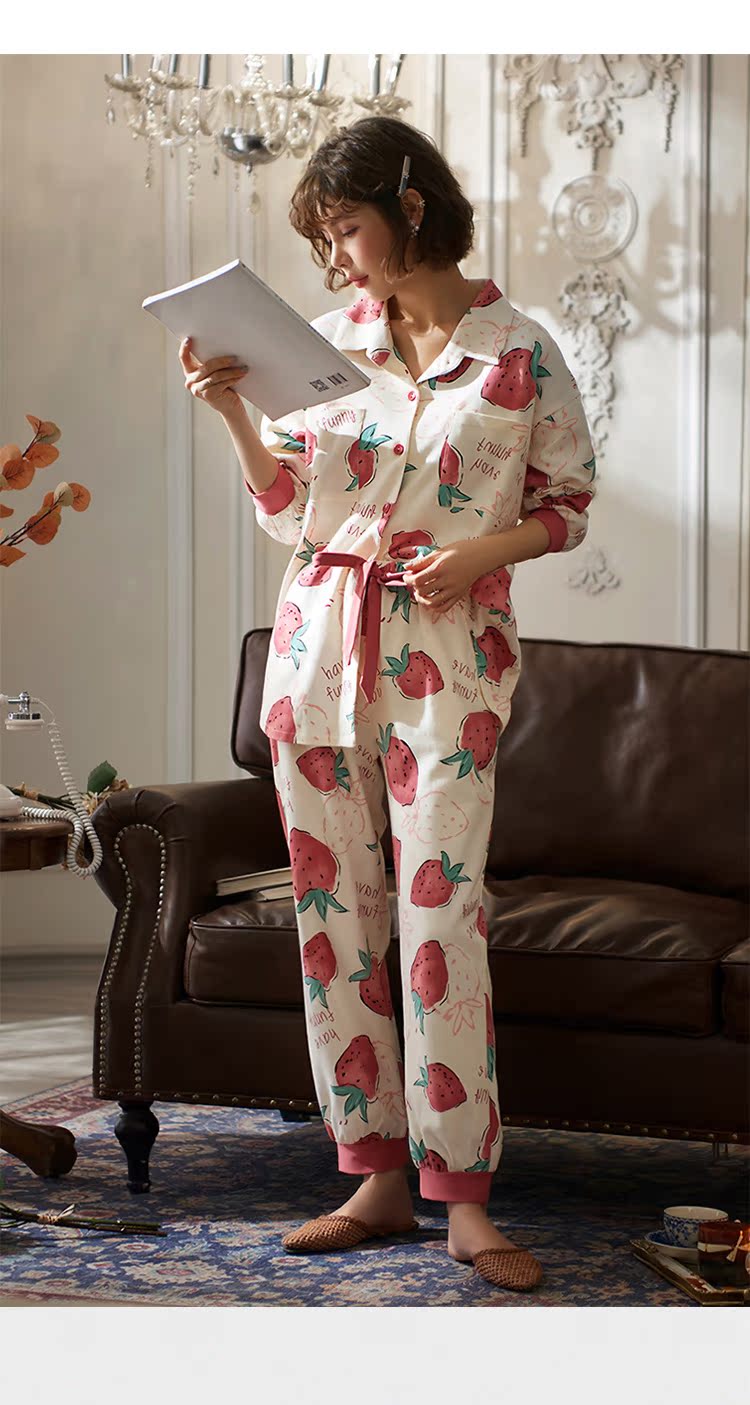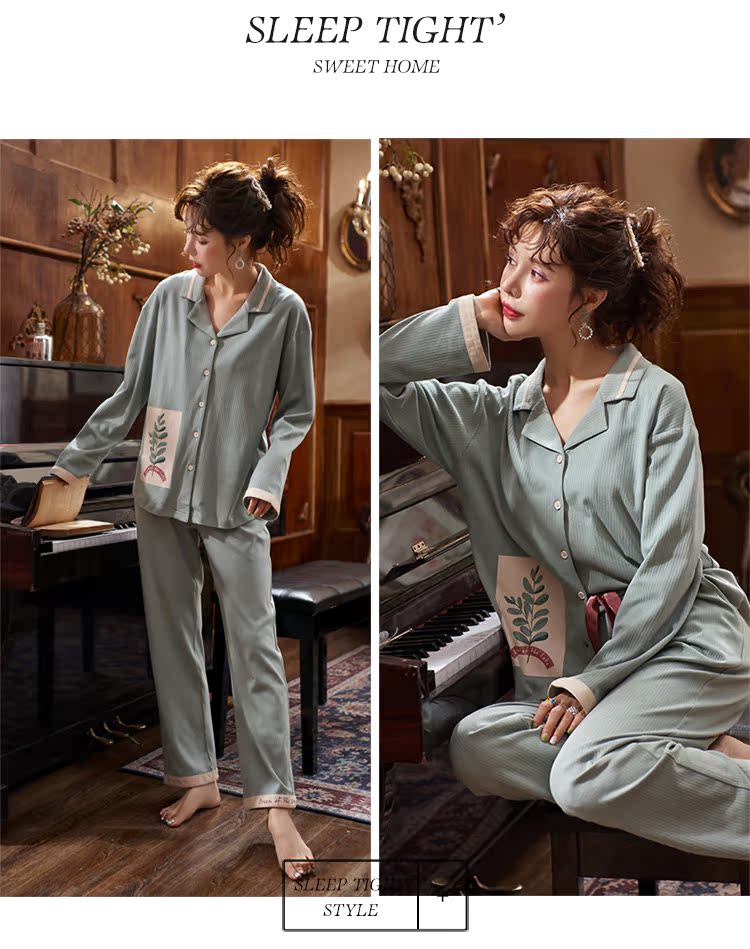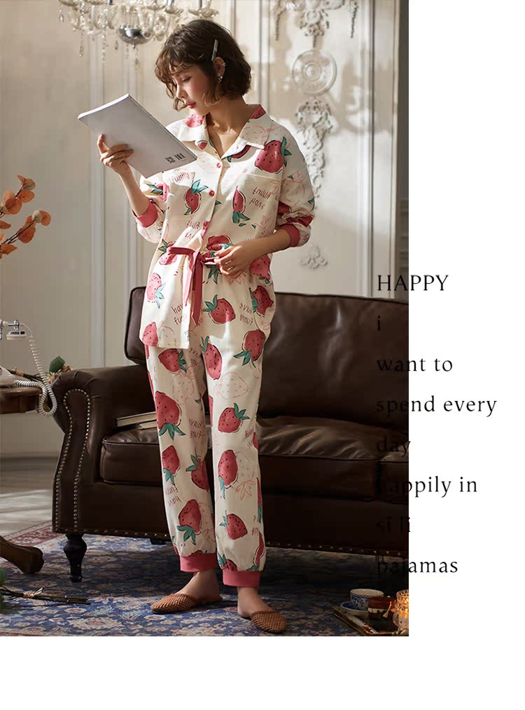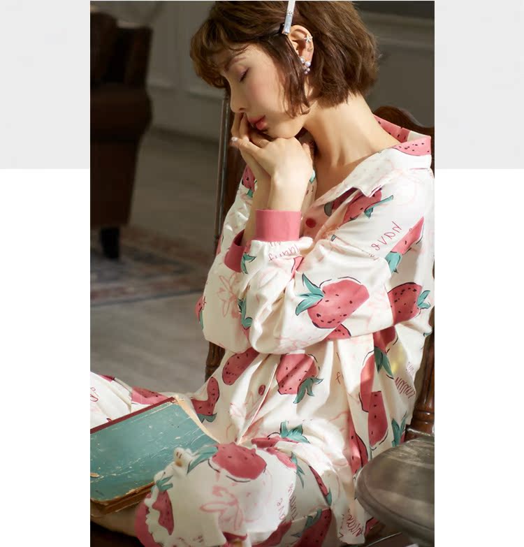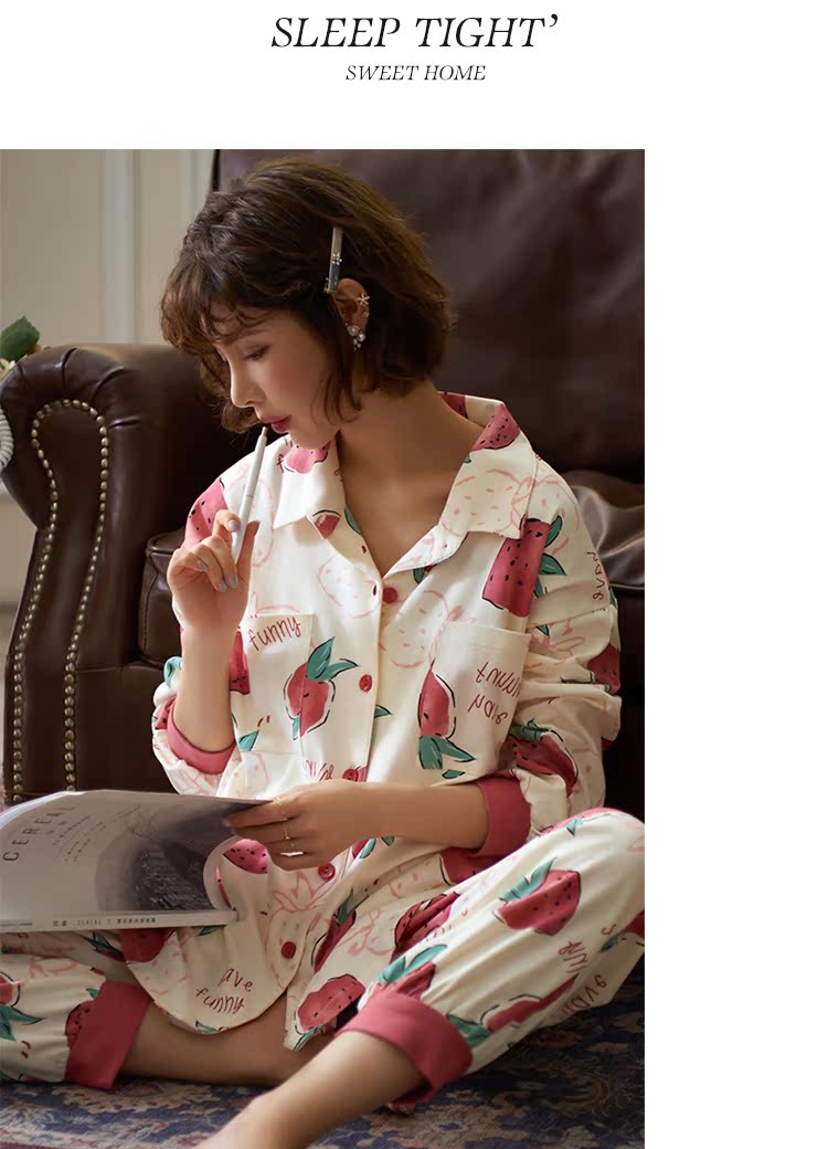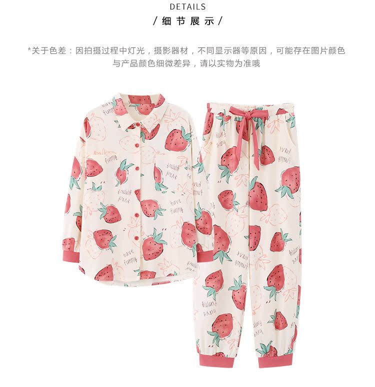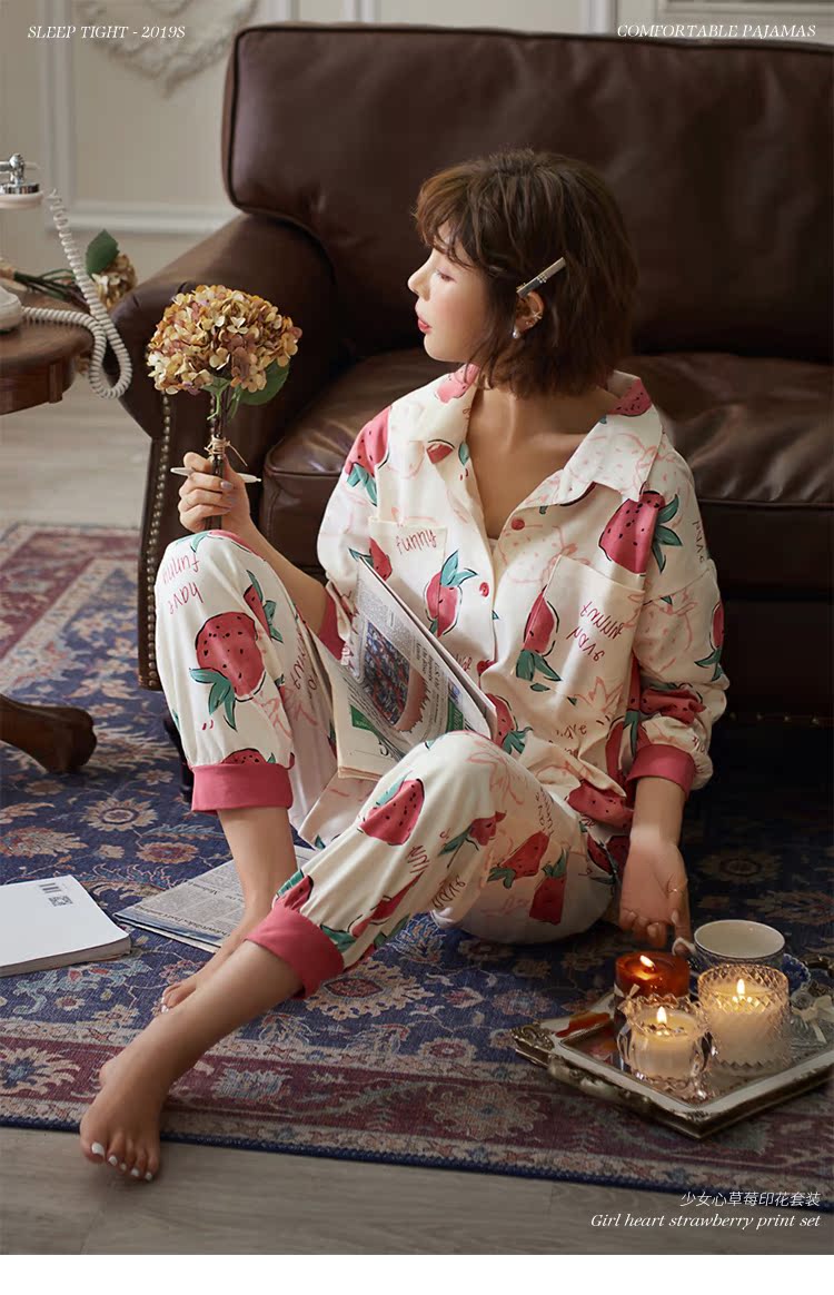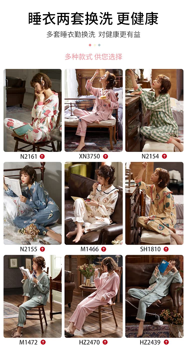 2019新款睡衣女春秋季純棉長袖韓版甜美秋冬網紅款學生兩件套裝1入