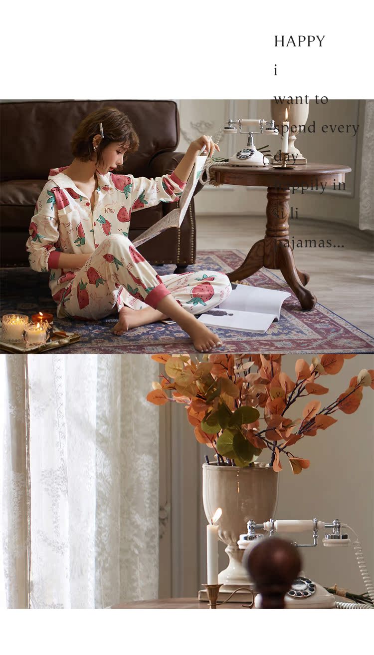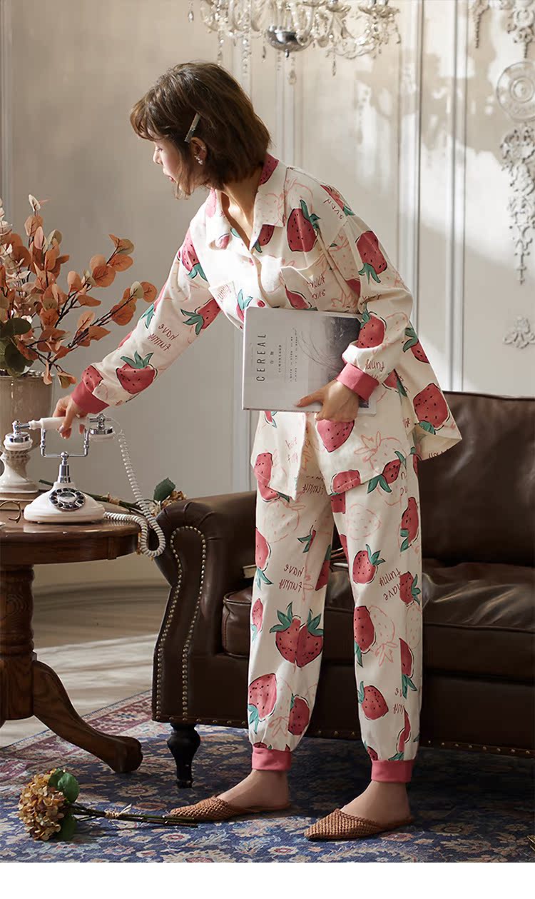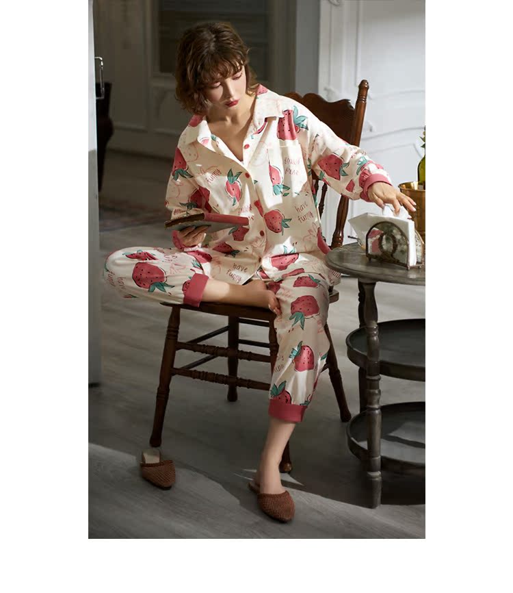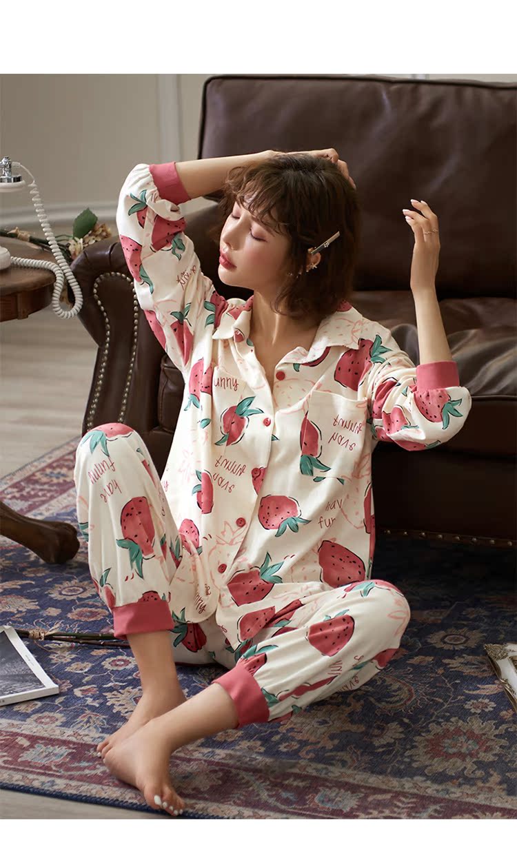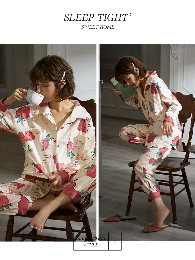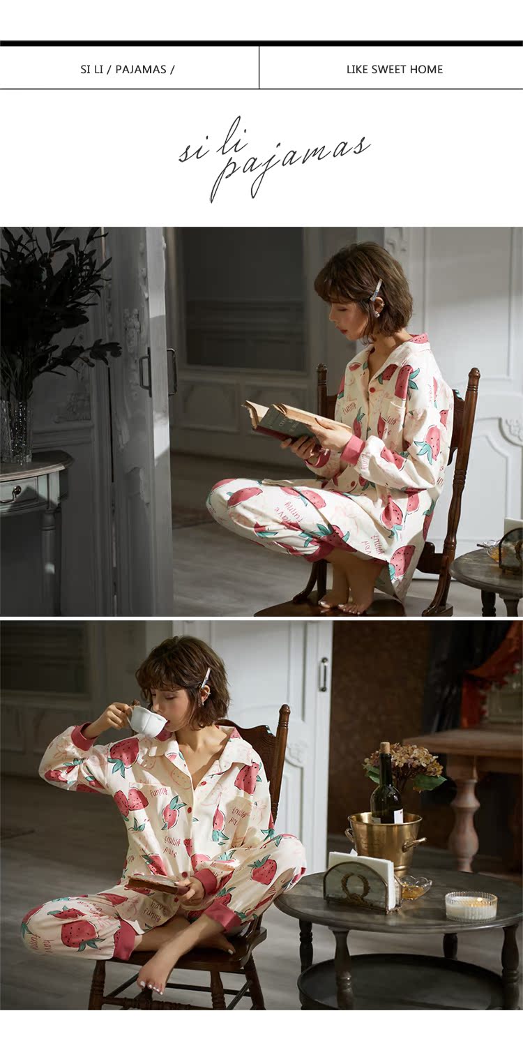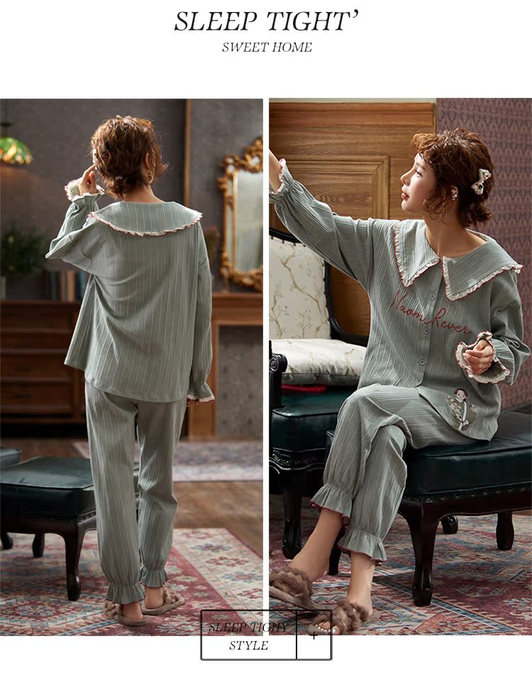 2019新款睡衣女春秋季純棉長袖韓版甜美秋冬網紅款學生兩件套裝1入