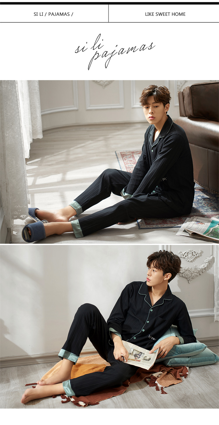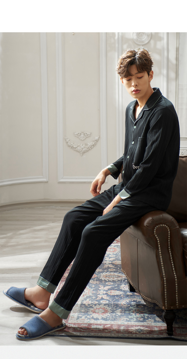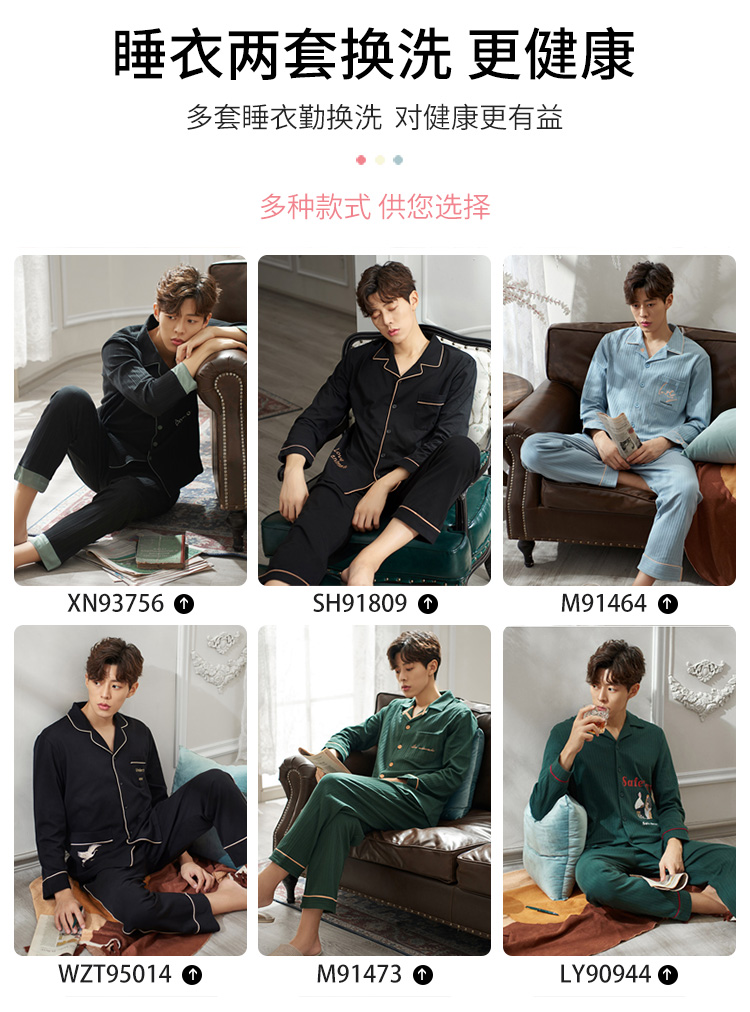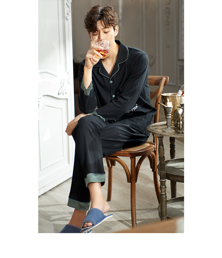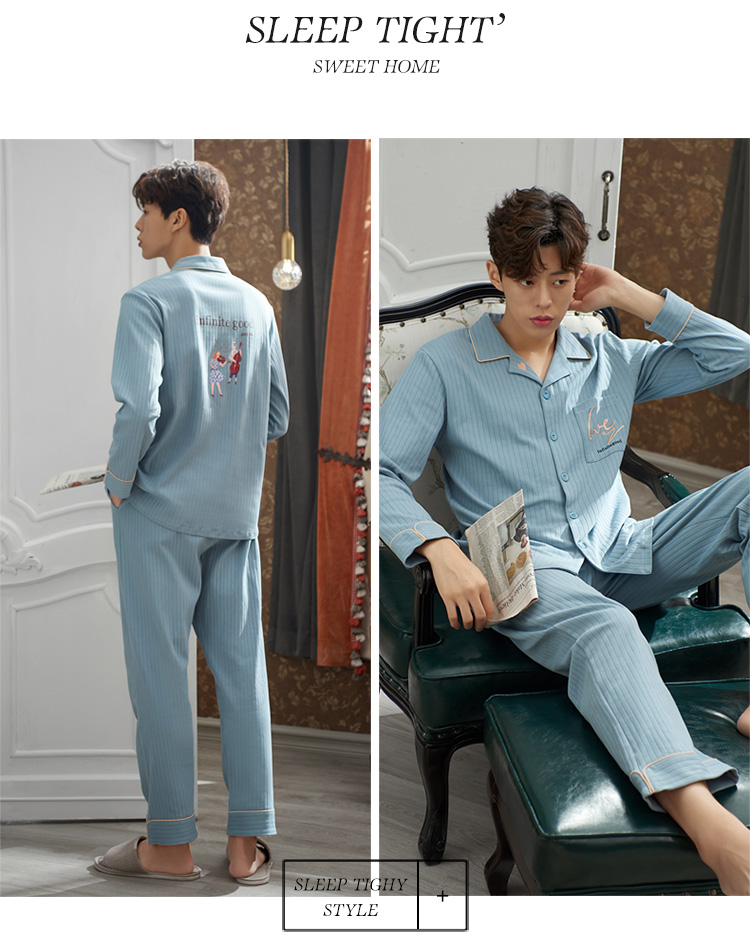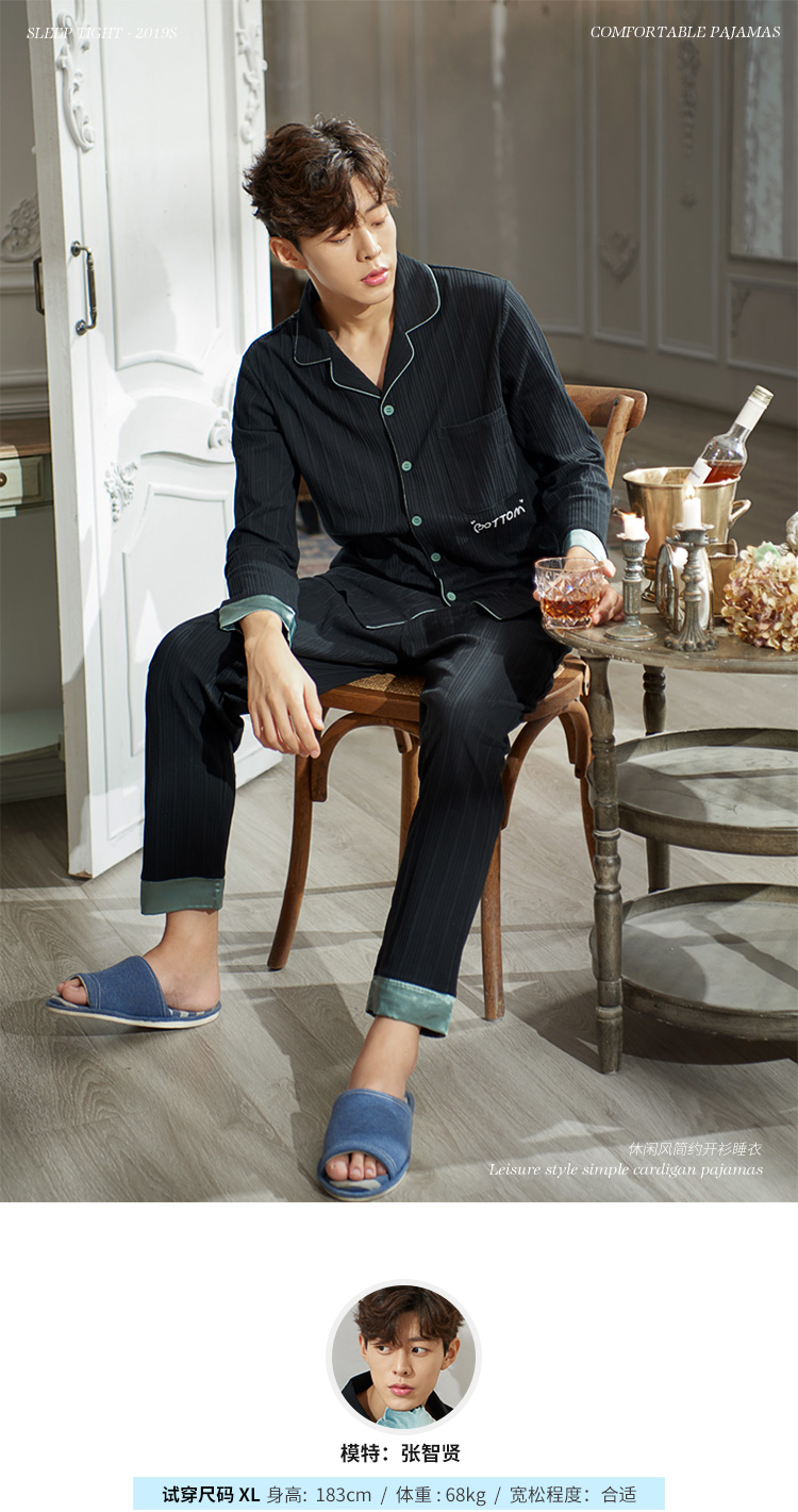 2019新款男士睡衣春秋天純棉長袖簡約時尚秋冬季開衫全棉家居服1入