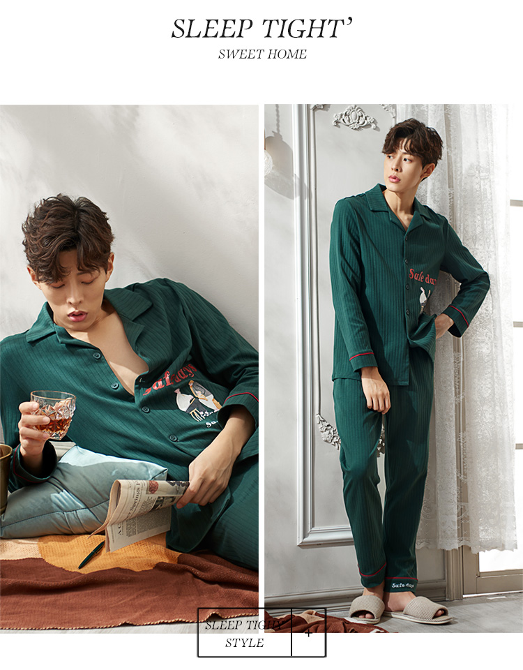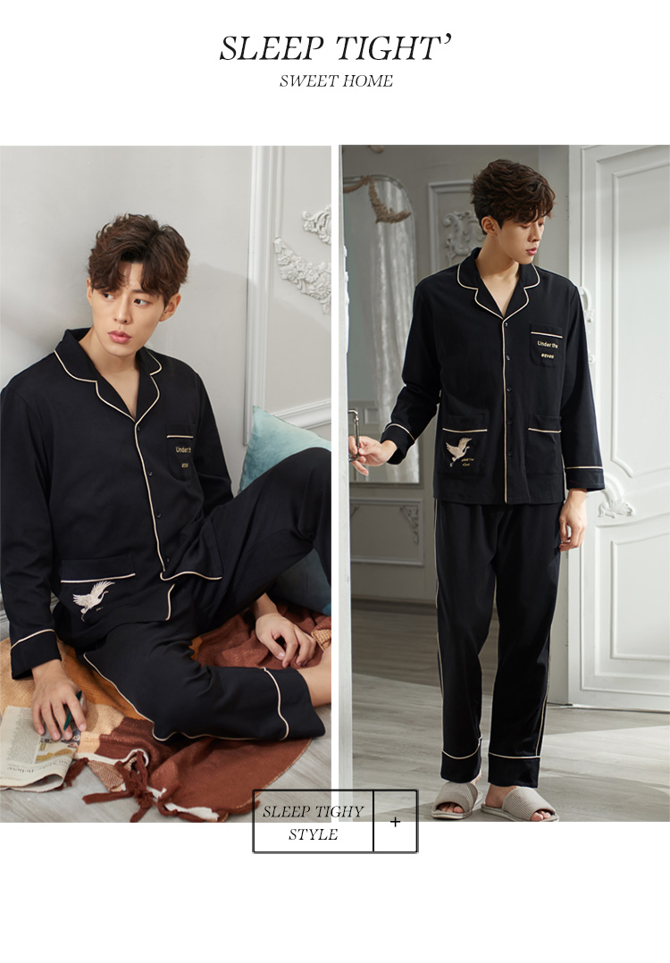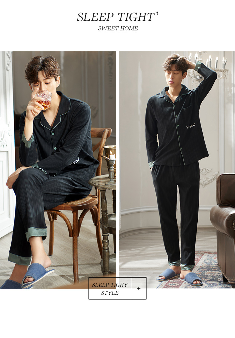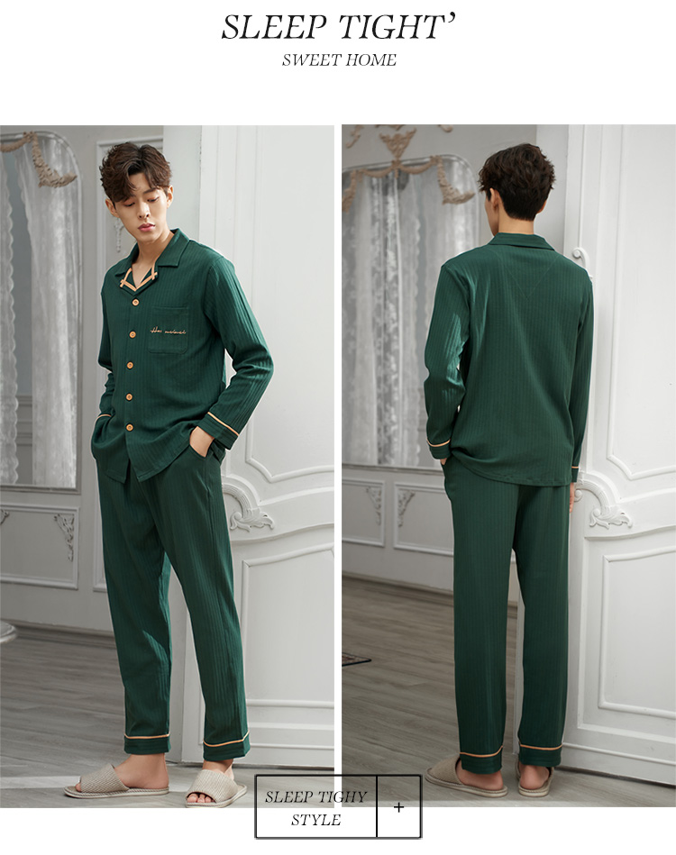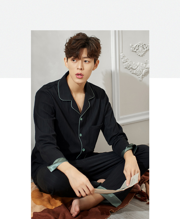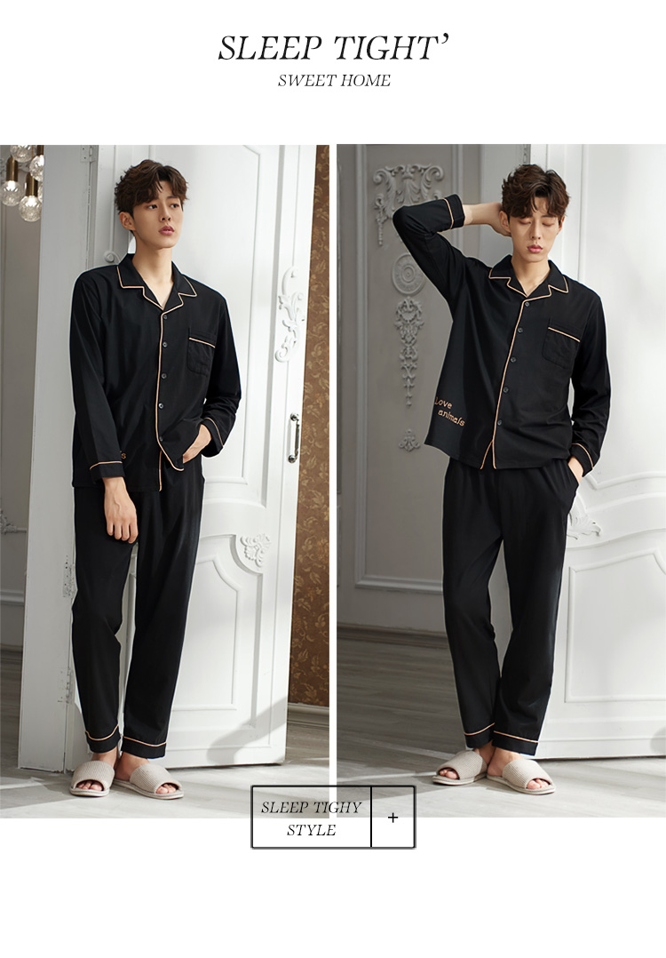 2019新款男士睡衣春秋天純棉長袖簡約時尚秋冬季開衫全棉家居服1入