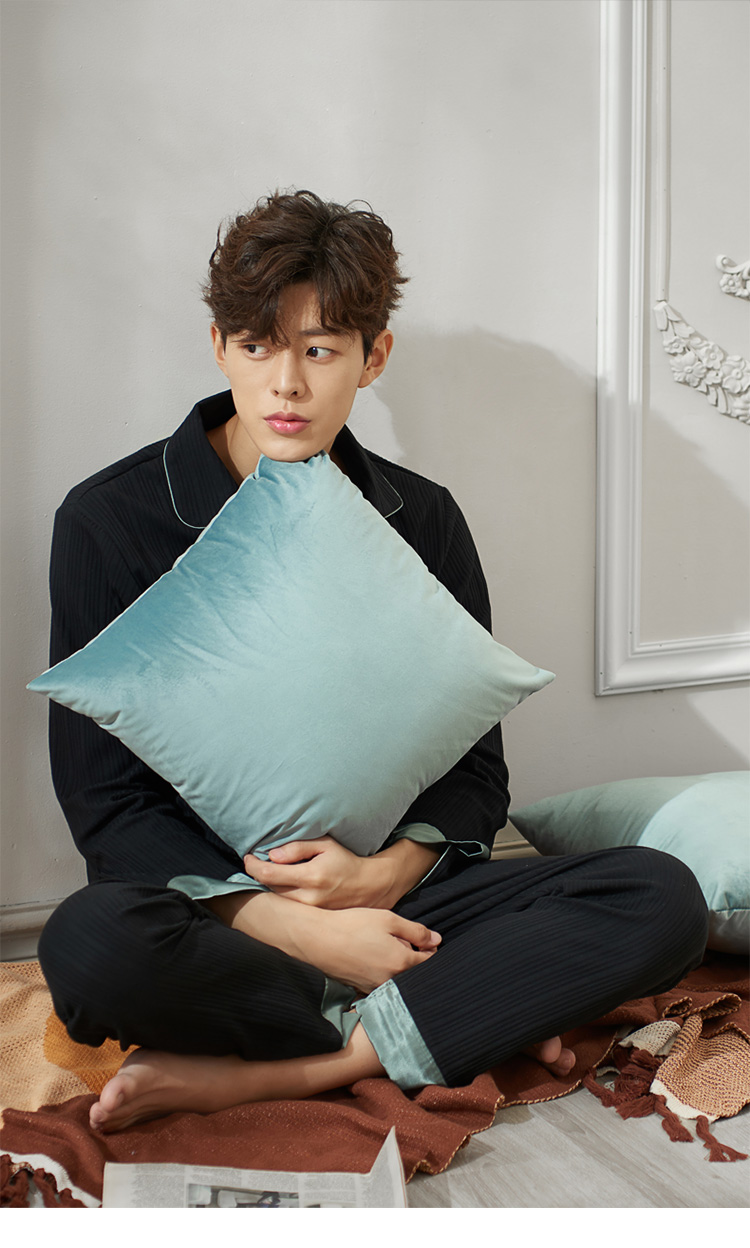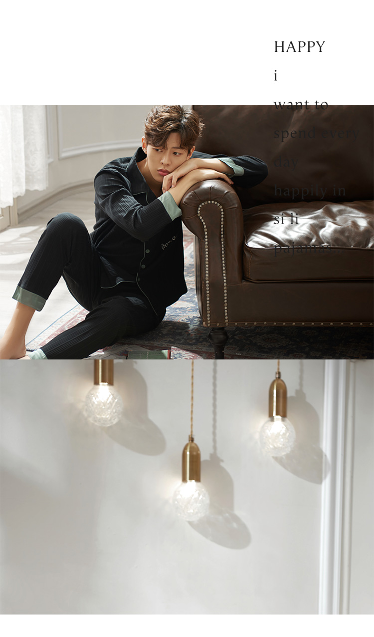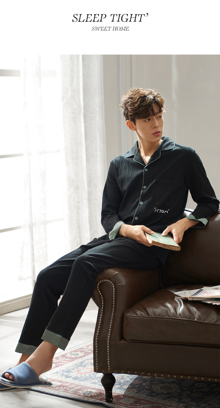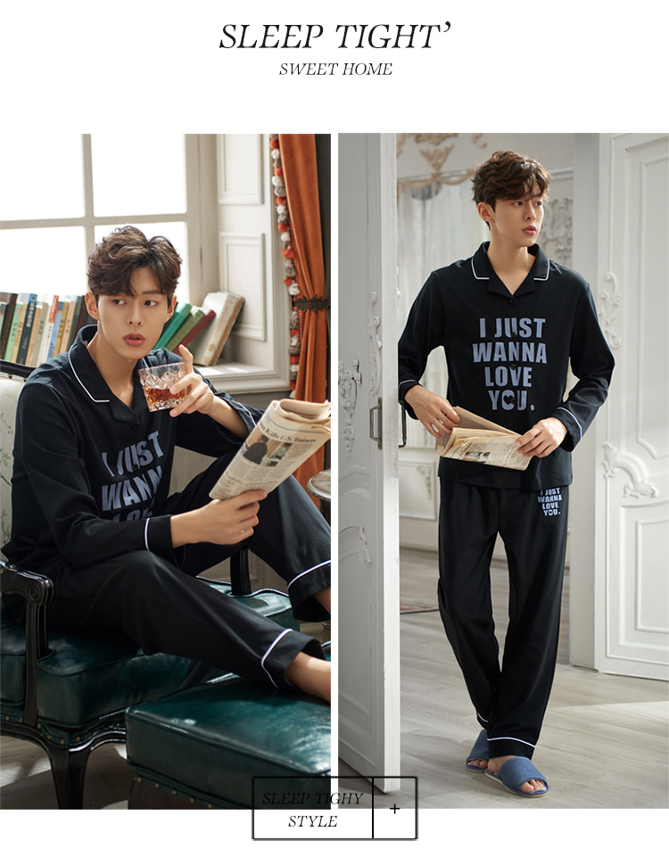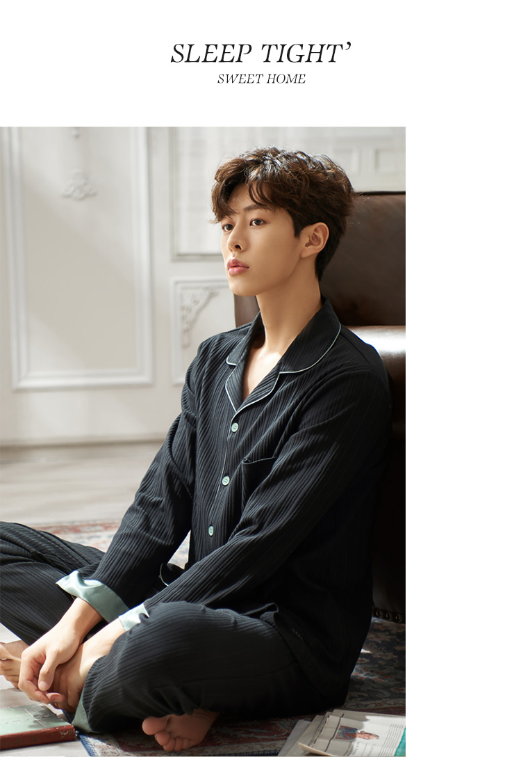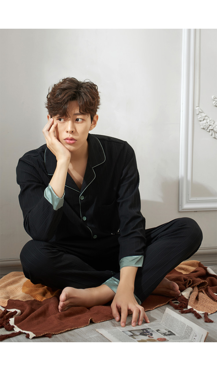 2019新款男士睡衣春秋天純棉長袖簡約時尚秋冬季開衫全棉家居服1入