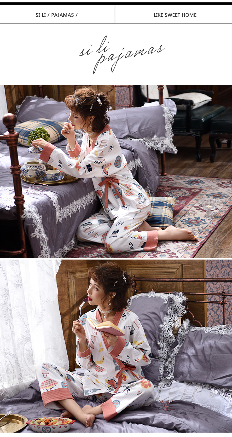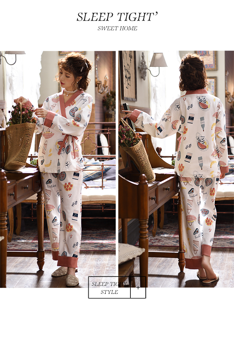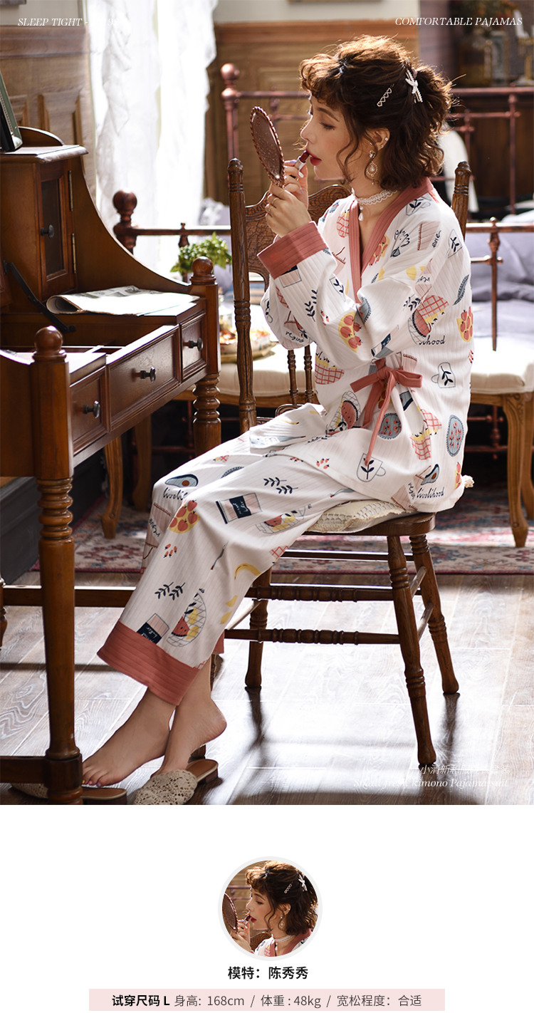 2019新款睡衣女春秋款純棉長袖韓版甜美日式和服秋冬季學生兩件套1入