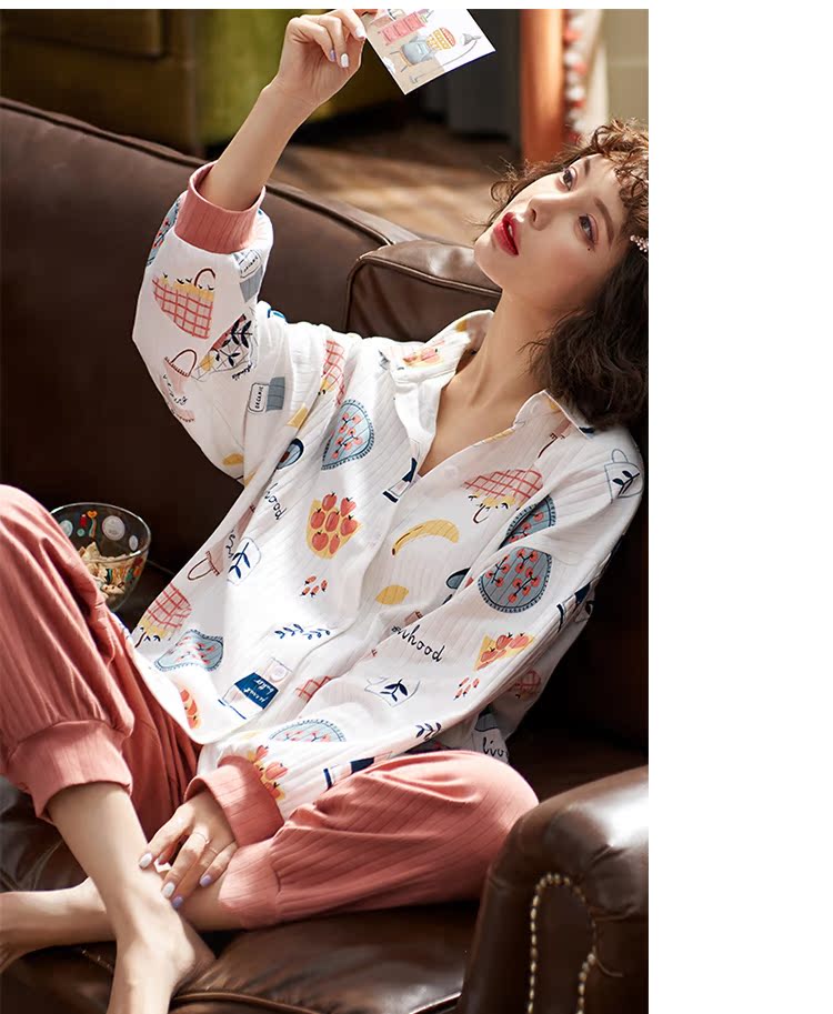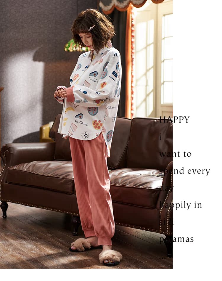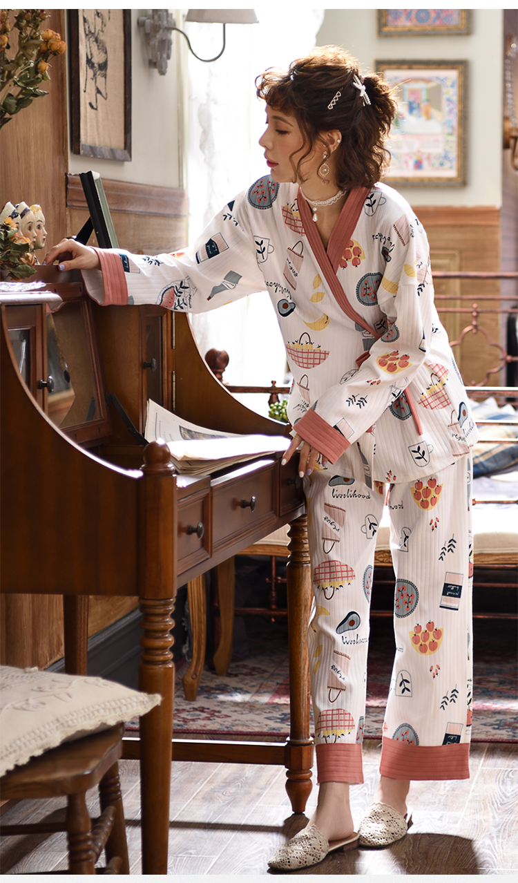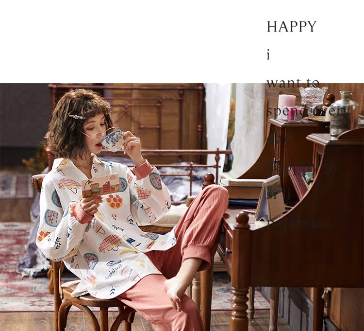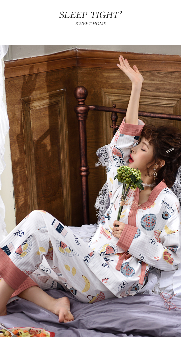 2019新款睡衣女春秋款純棉長袖韓版甜美日式和服秋冬季學生兩件套1入