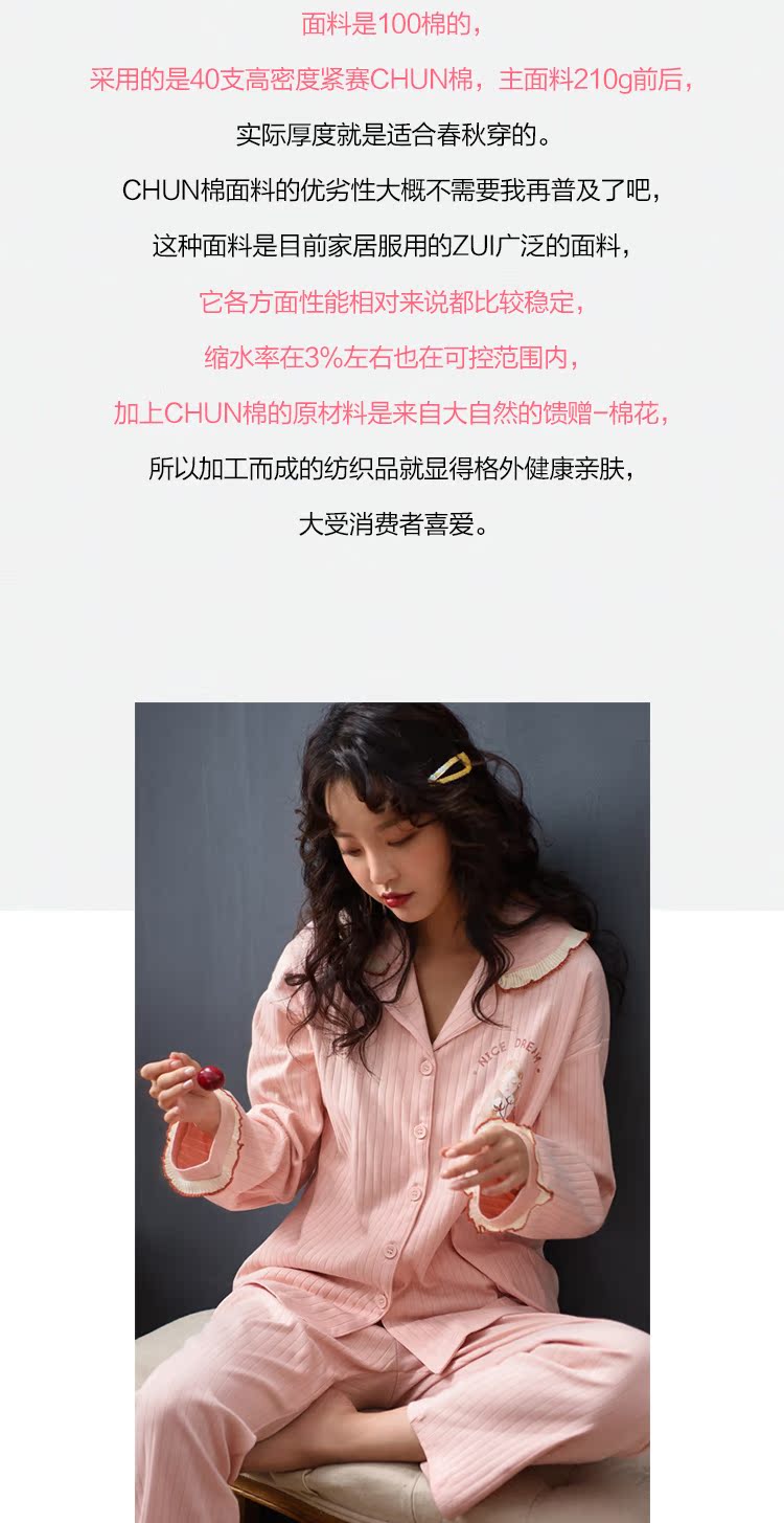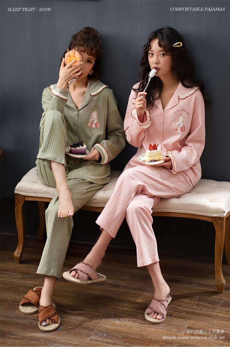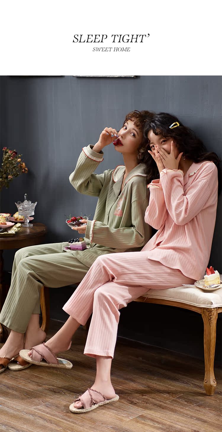 2019新款網紅春秋季睡衣女純棉長袖韓版清新學生宿舍日系秋款套裝1入