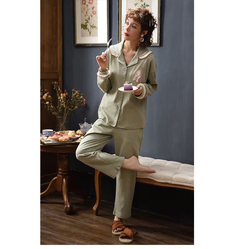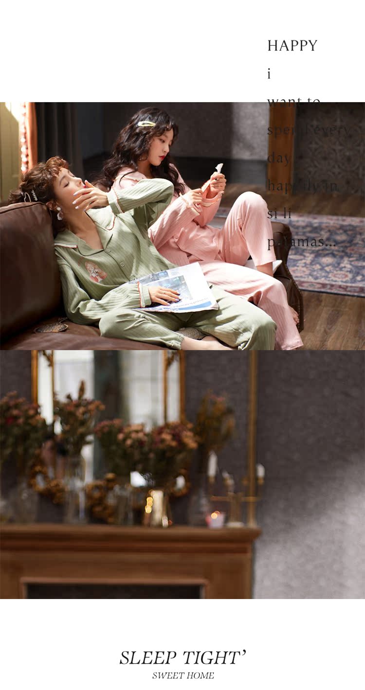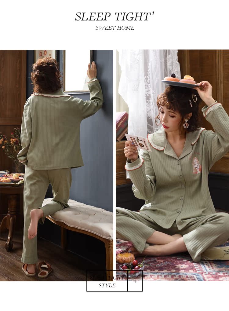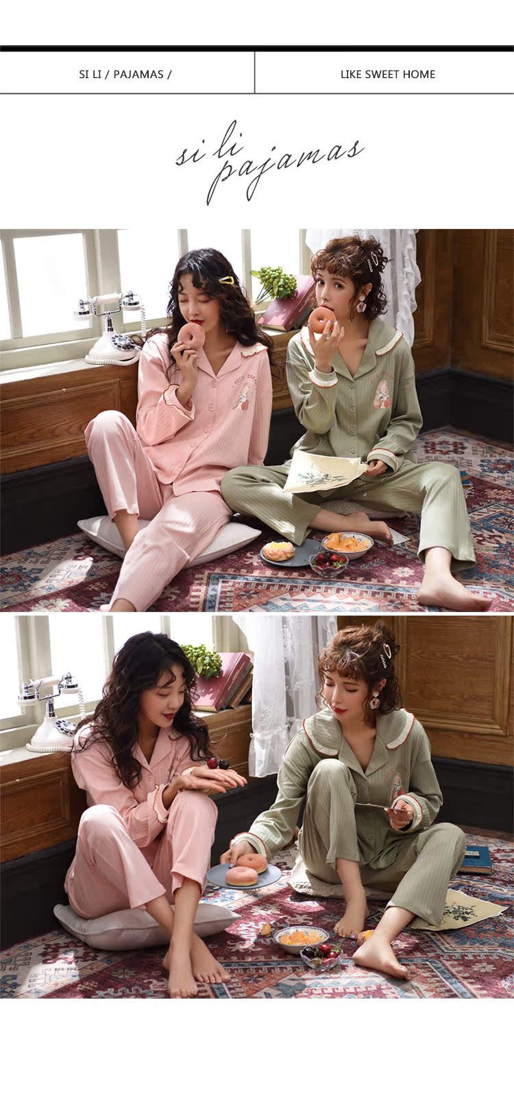 2019新款網紅春秋季睡衣女純棉長袖韓版清新學生宿舍日系秋款套裝1入