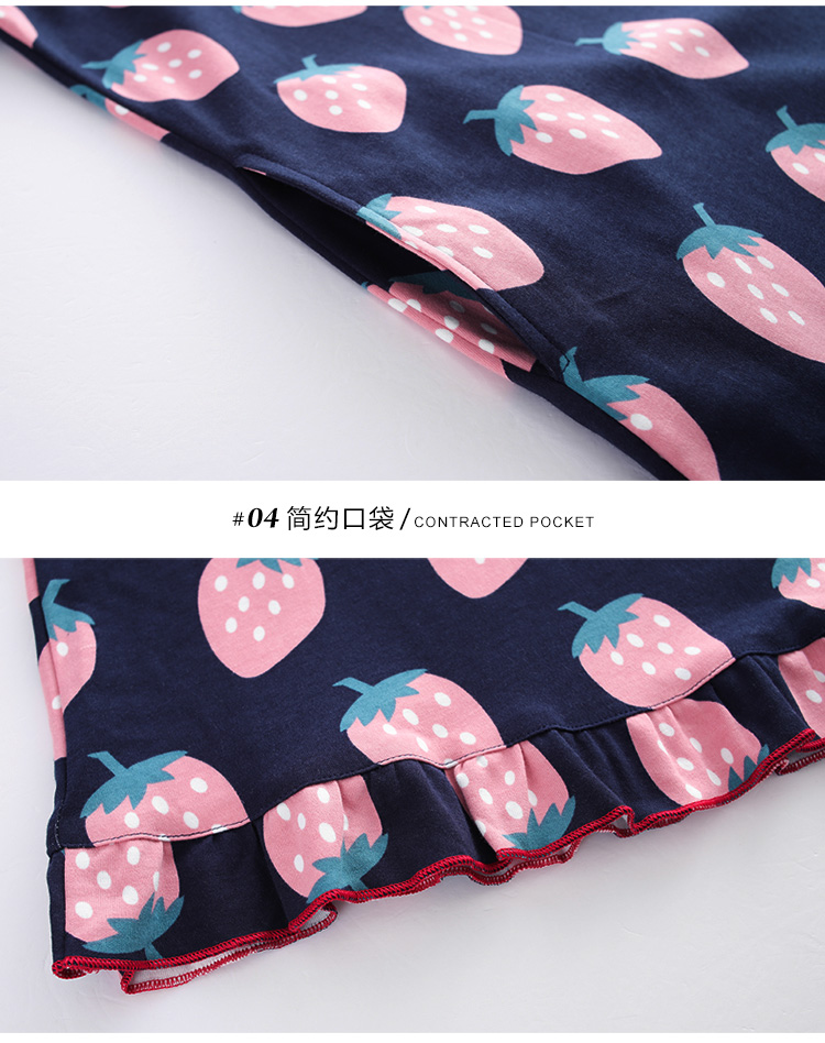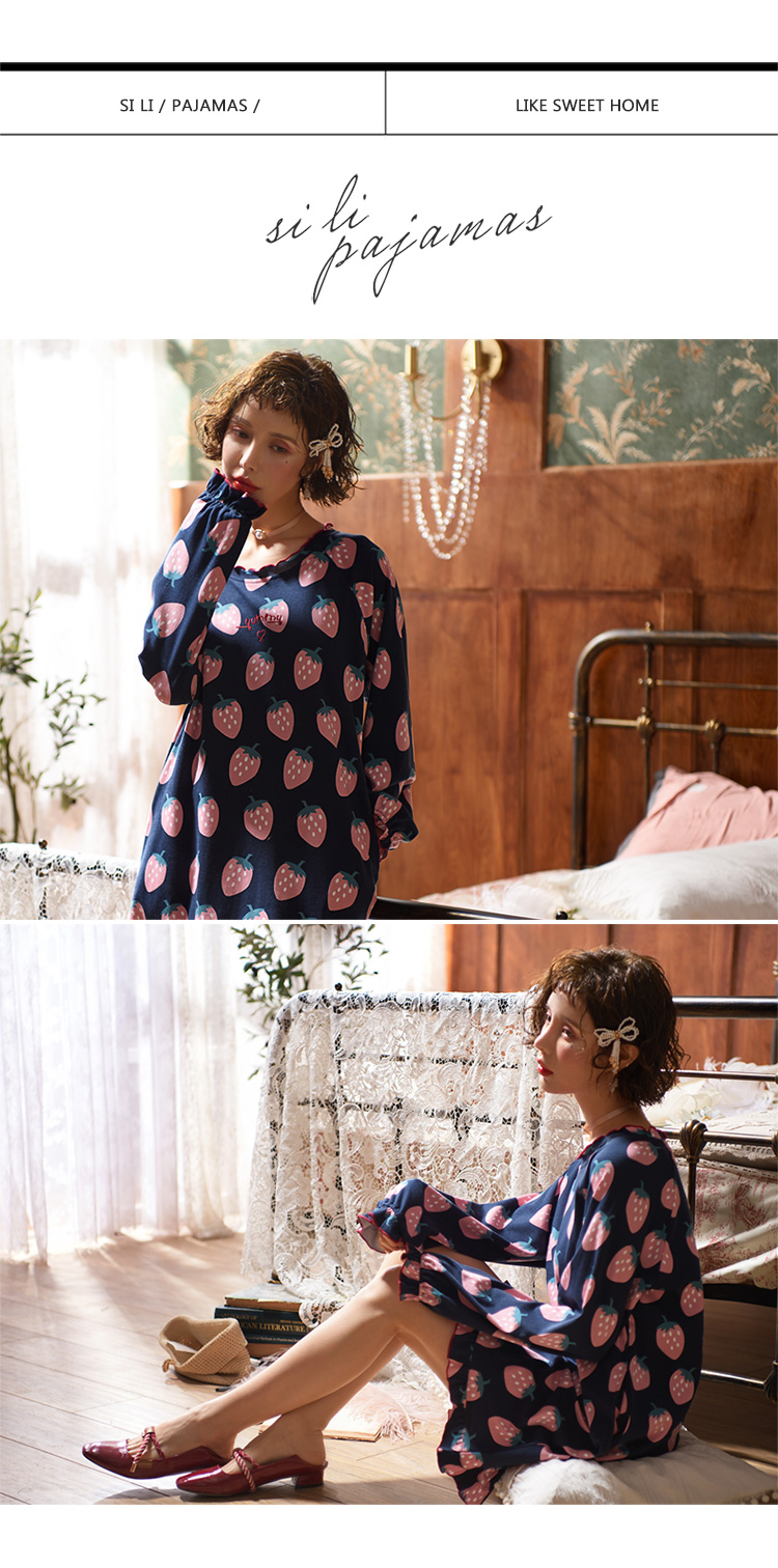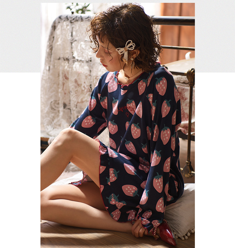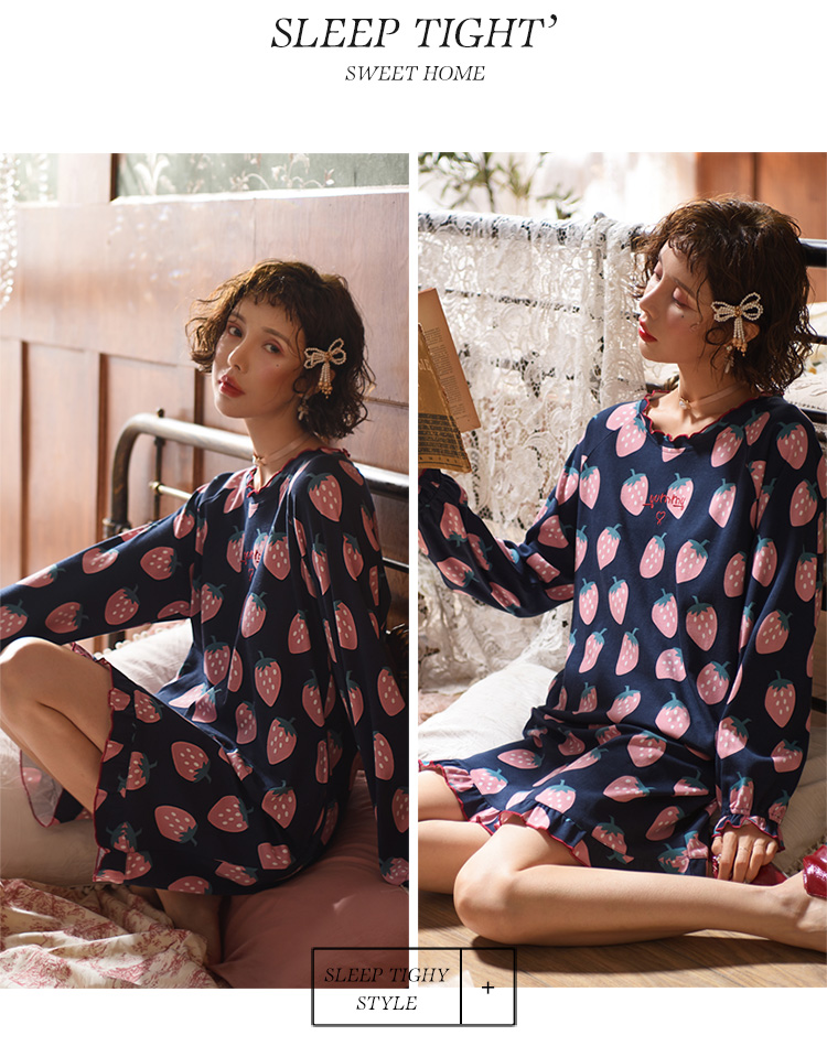 長袖睡裙女春秋薄款純棉學生宿舍可愛日系軟妹草莓秋季睡衣可外穿1入