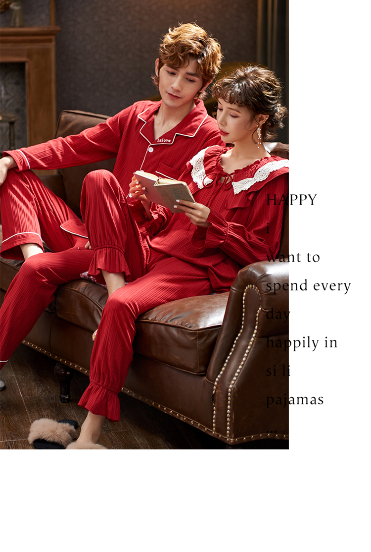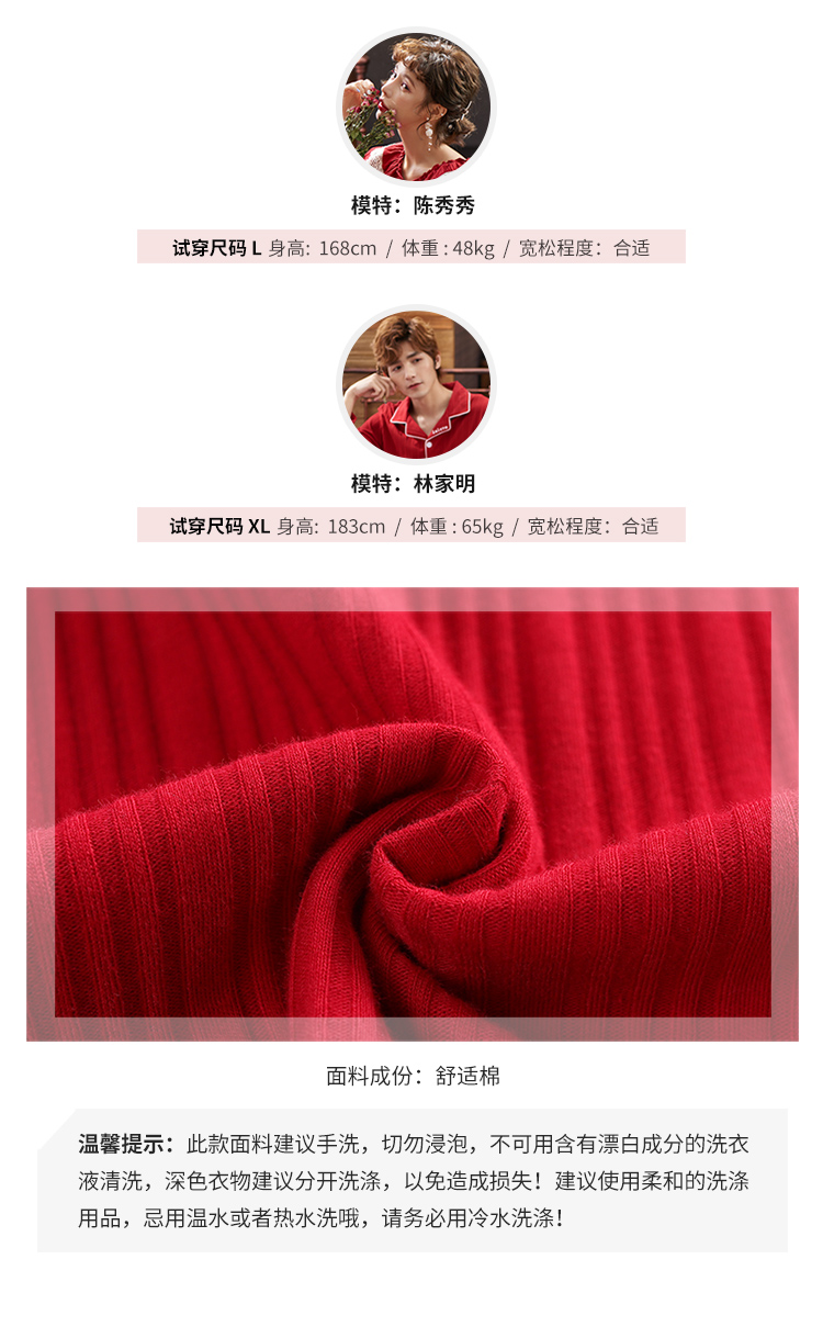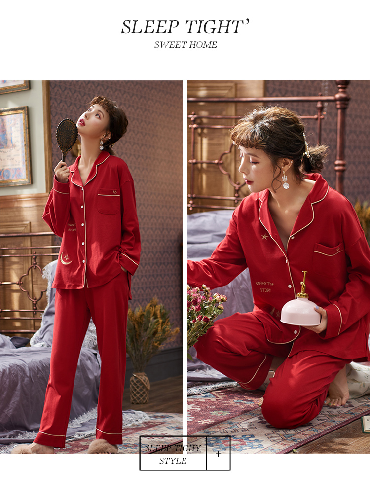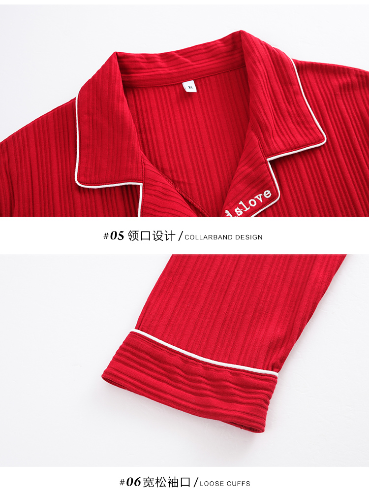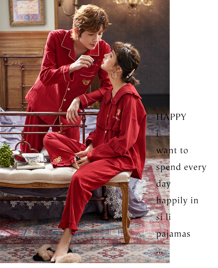 2019新款情侶睡衣春秋純棉長袖女新娘紅色結婚新婚男士秋冬季套裝1入