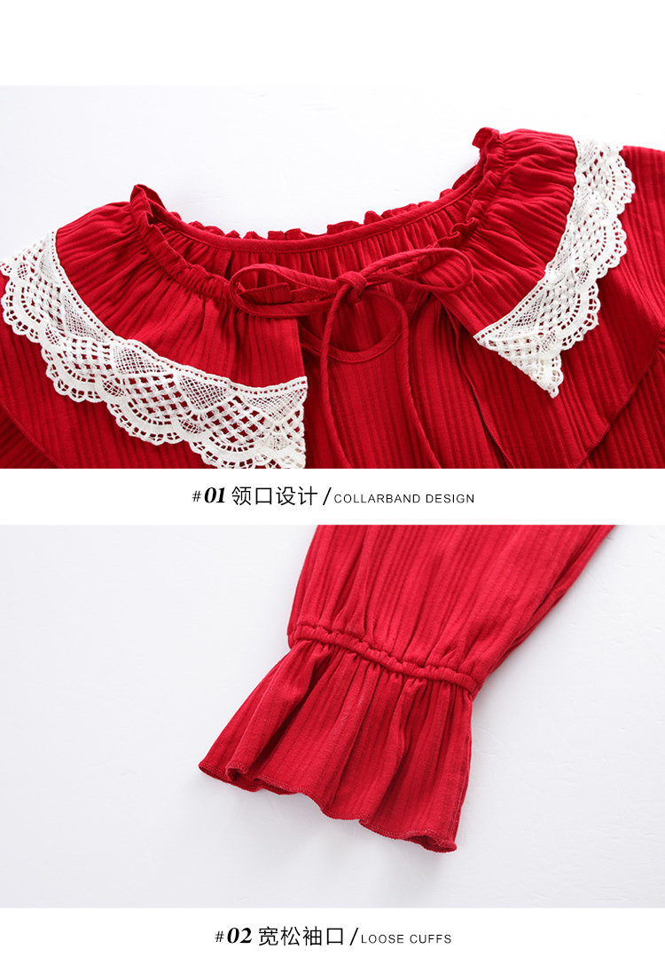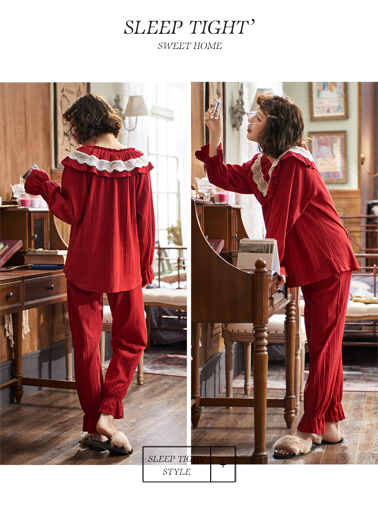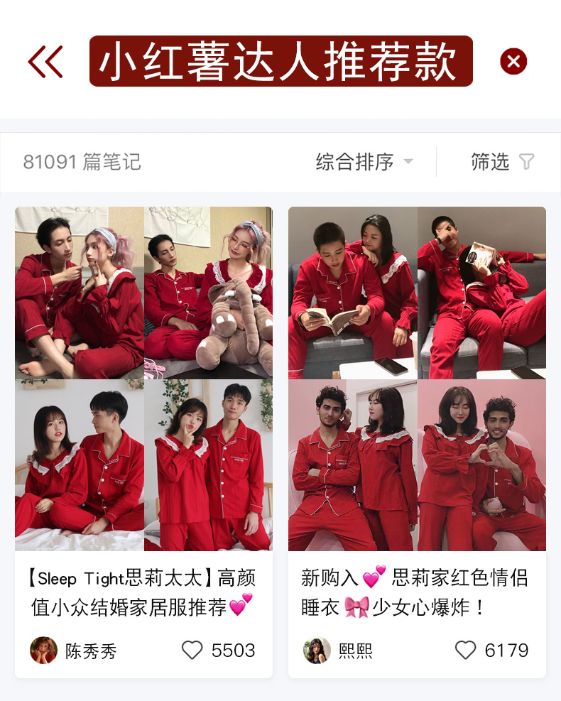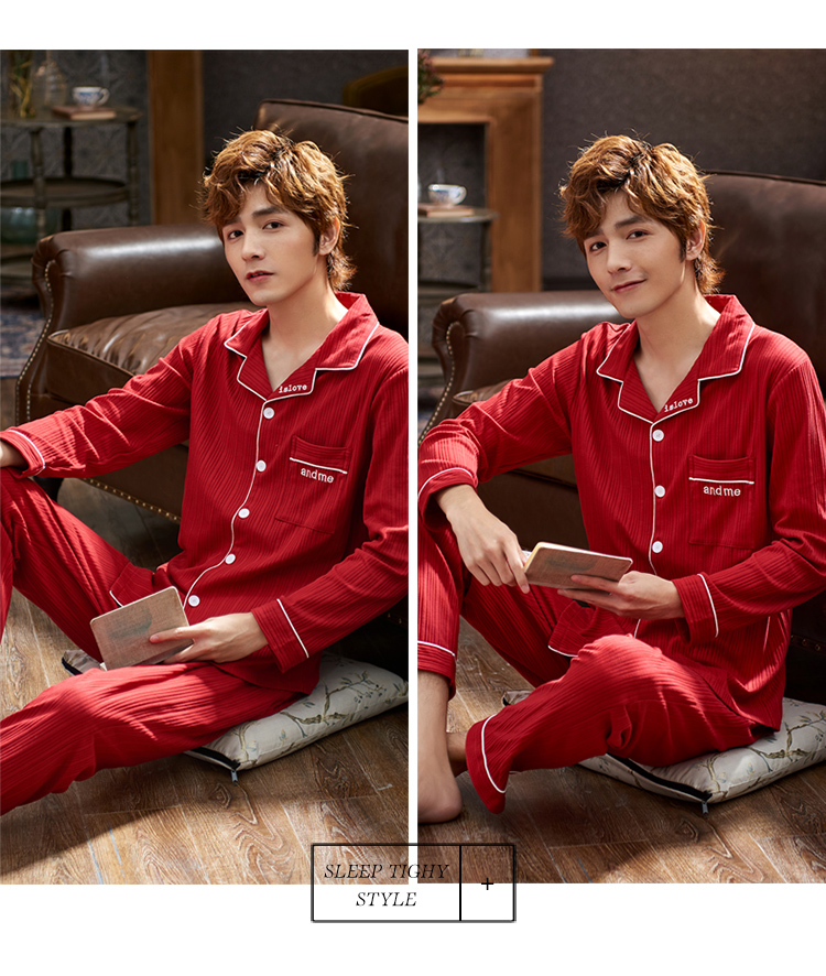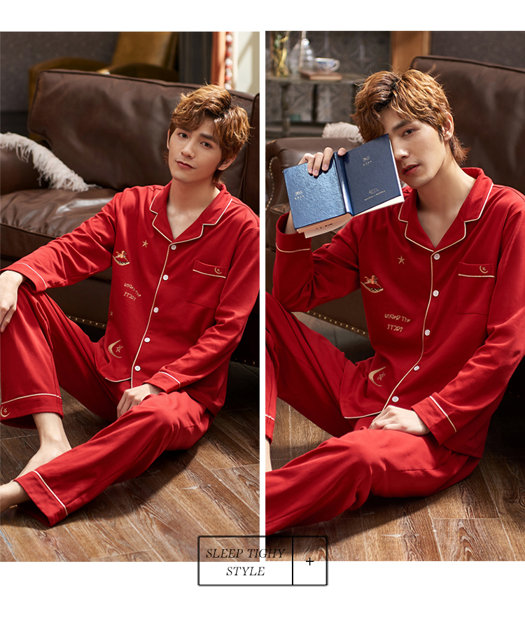 2019新款情侶睡衣春秋純棉長袖女新娘紅色結婚新婚男士秋冬季套裝1入