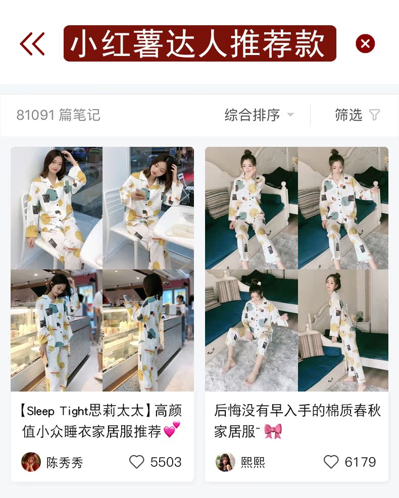 2019新款純棉睡衣女春秋長袖網紅款學生可外穿港風家居服兩件套裝1入