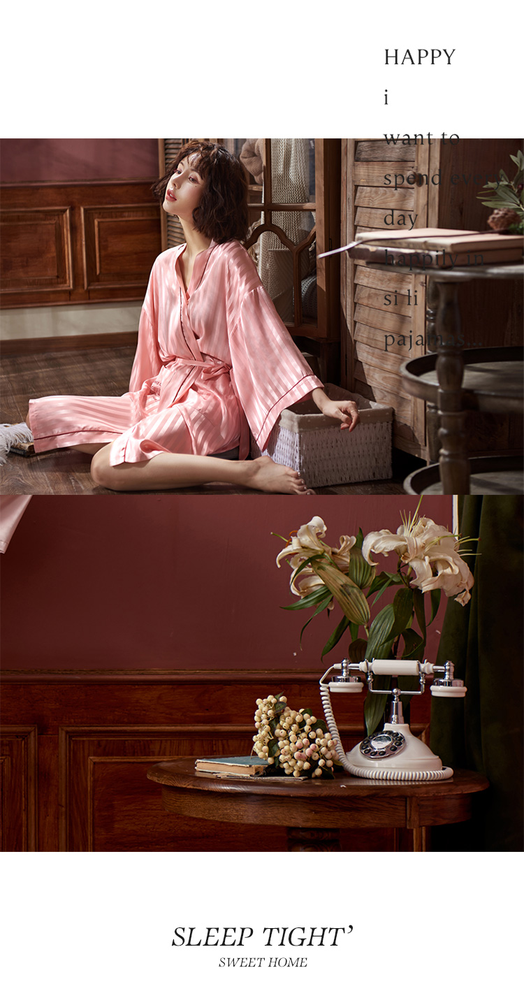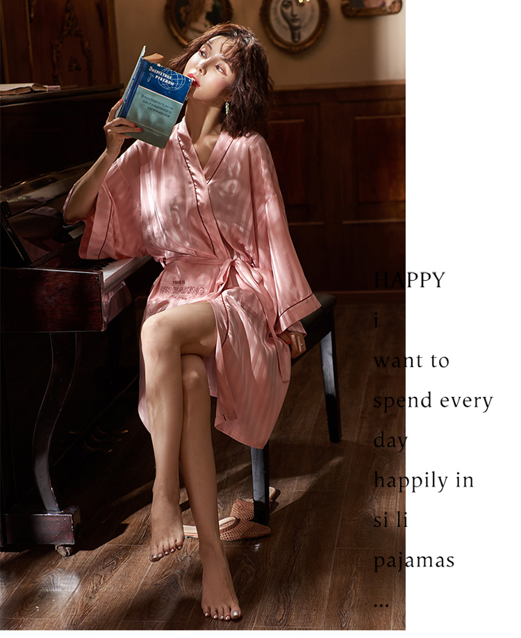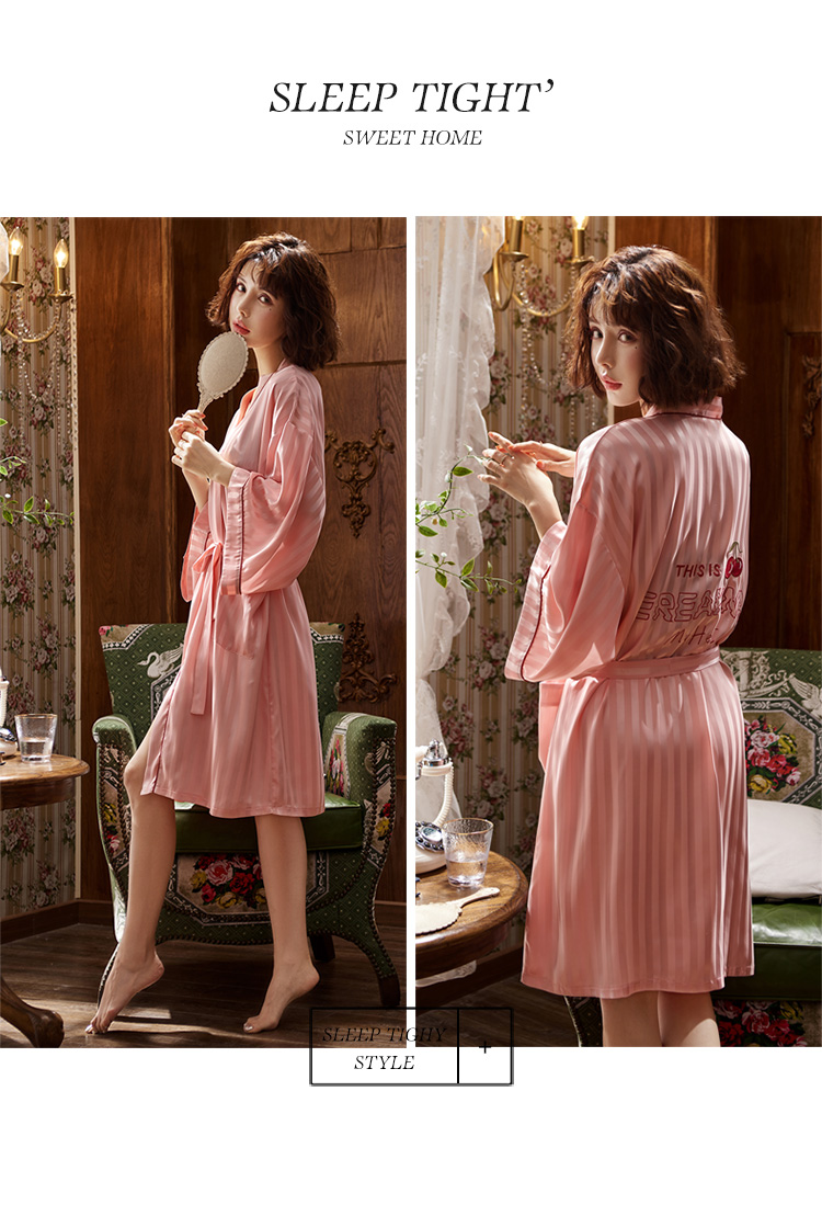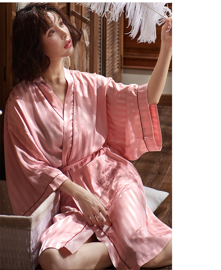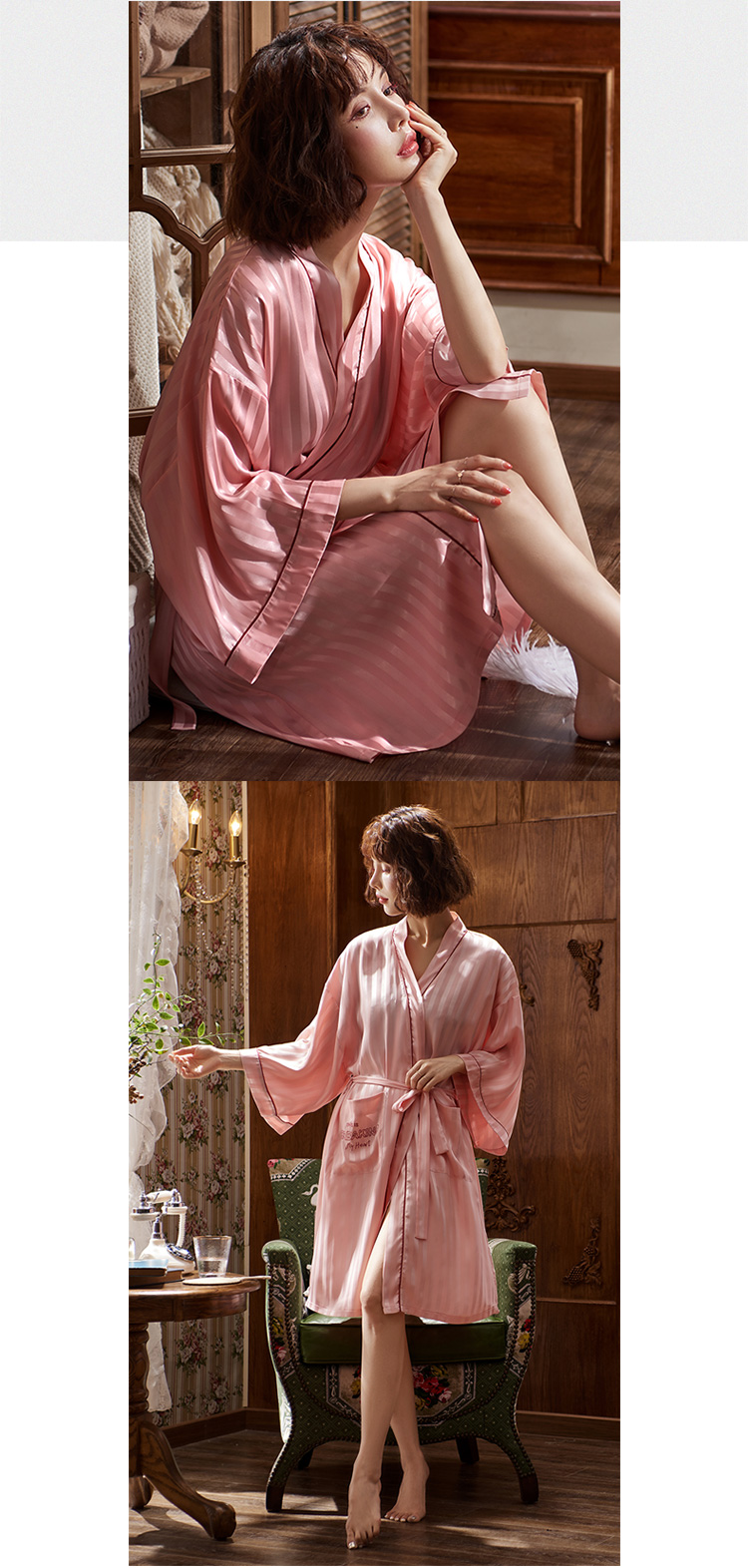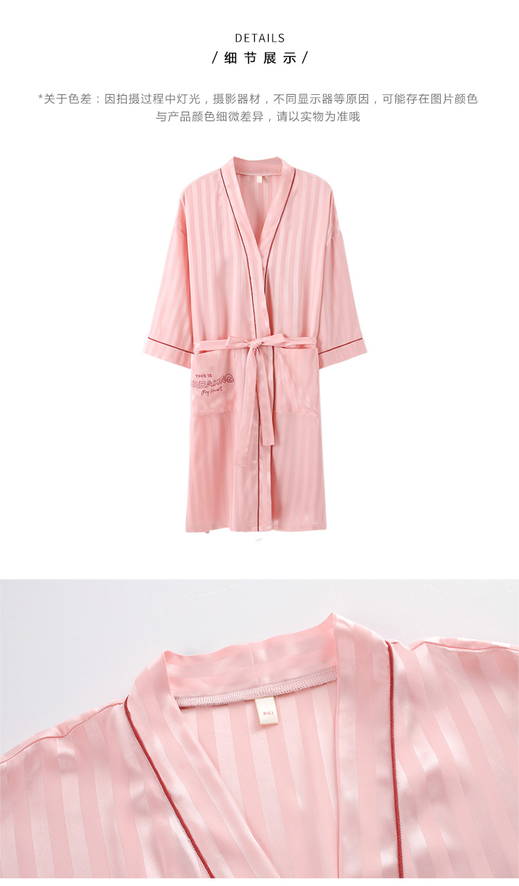 2019新款睡衣睡袍女夏季薄款性感冰絲粉色伴娘新娘結婚婚禮晨袍1入