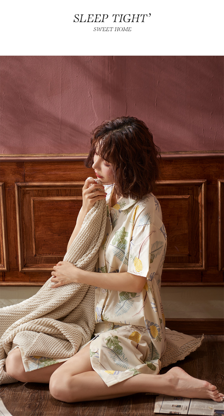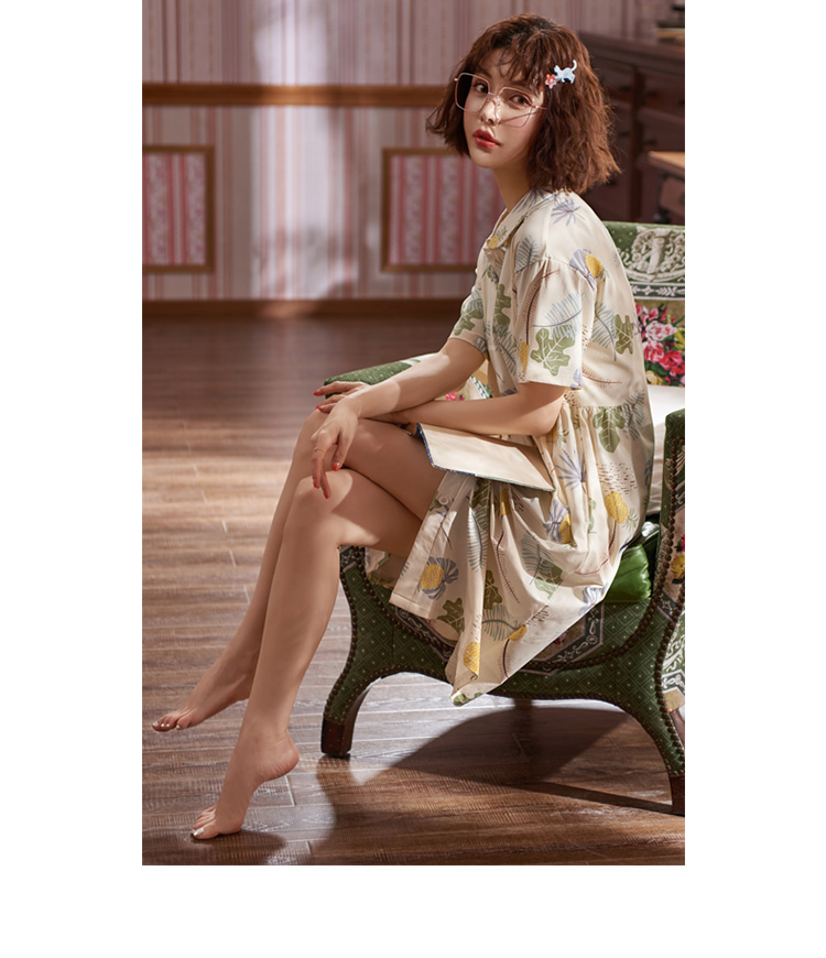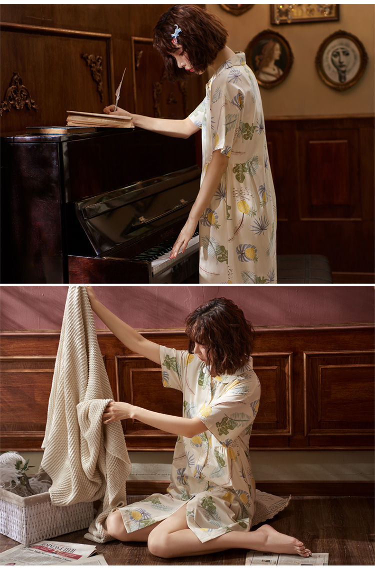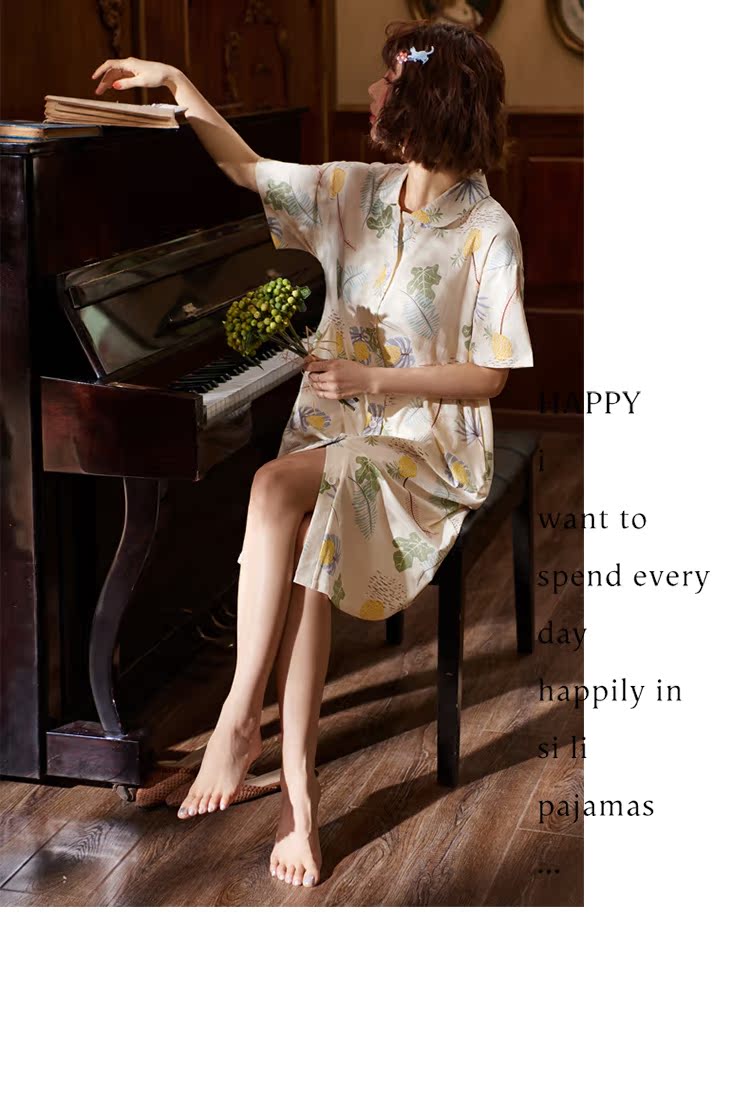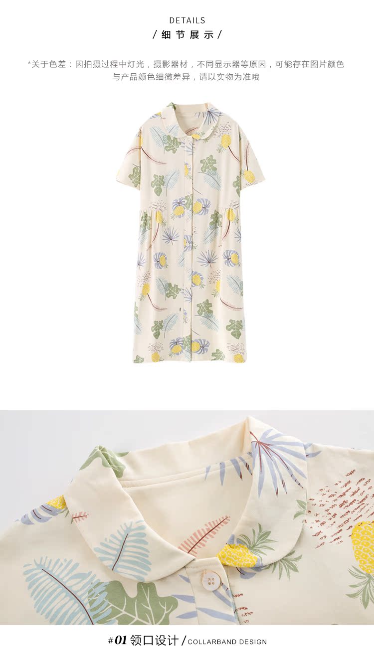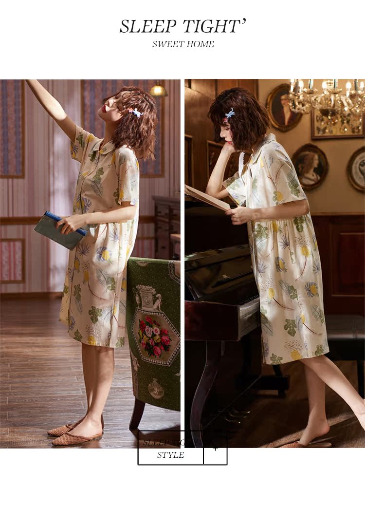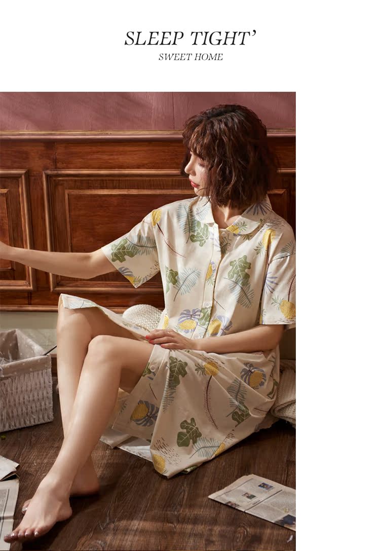 2019新款睡裙女夏季薄款純棉短袖日系可愛少女過膝長款睡衣裙子1入