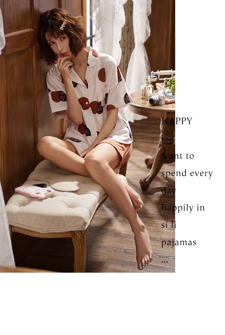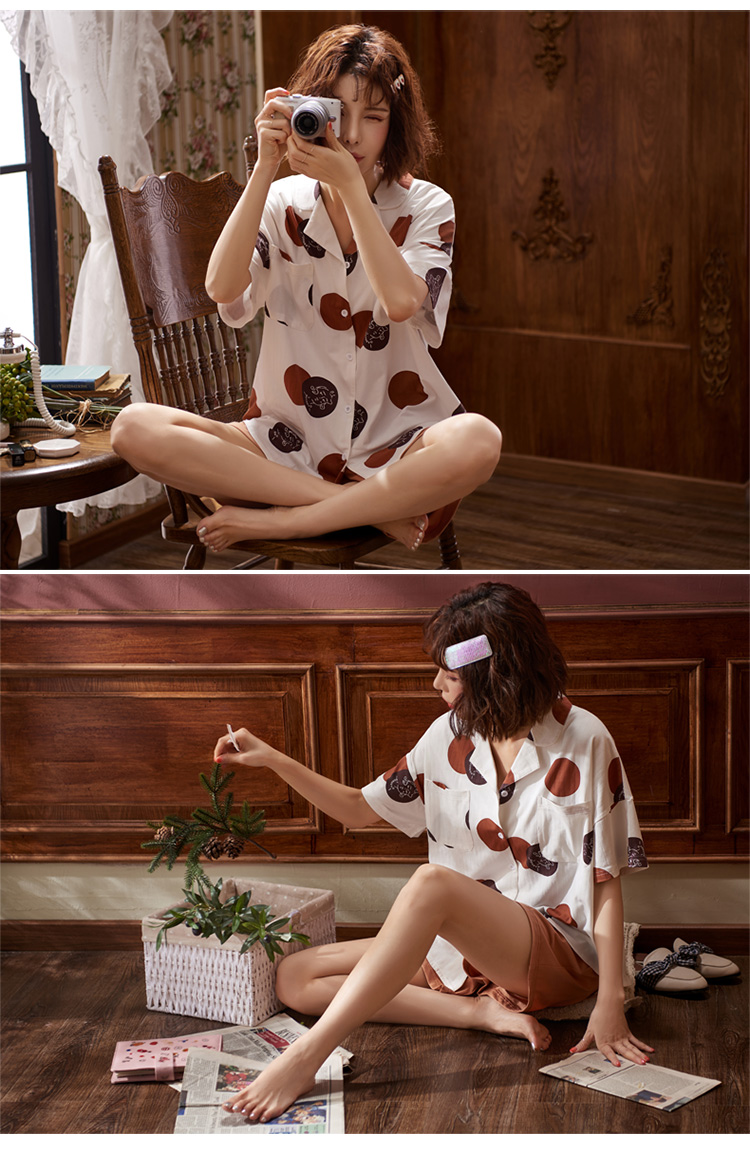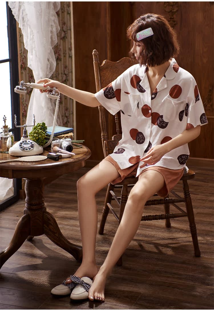2019新款純棉睡衣女夏季薄款學生ins潮韓版寬松短袖短褲兩件套裝1入