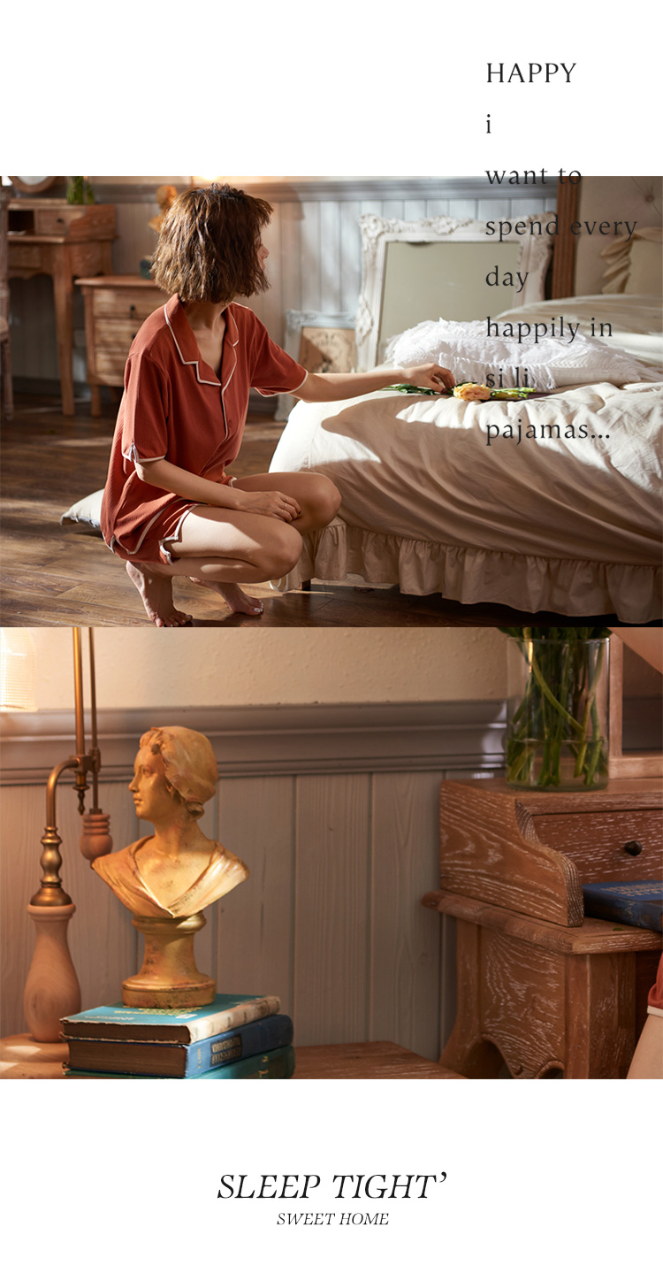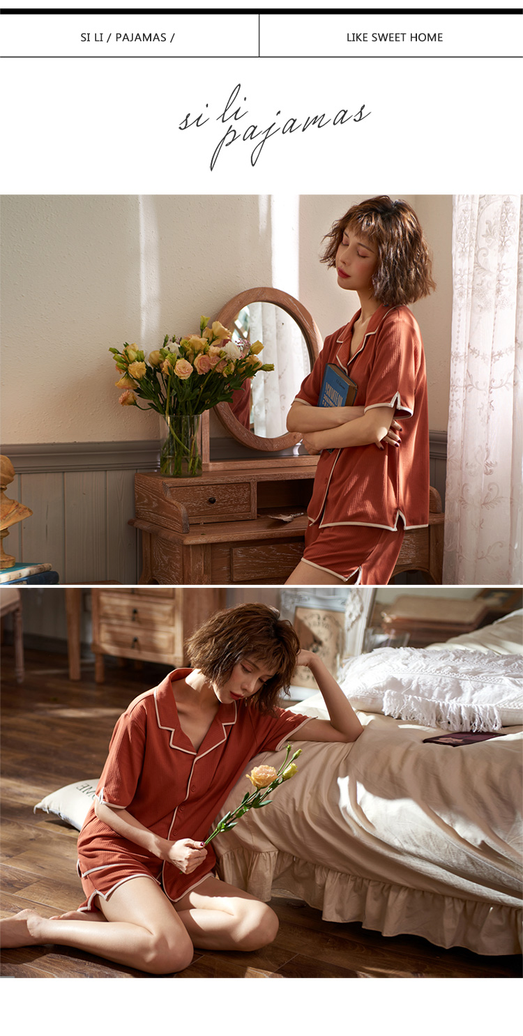 2019新款女士睡衣夏季薄款短袖短褲夏天可外穿簡約ins時尚兩件套1入