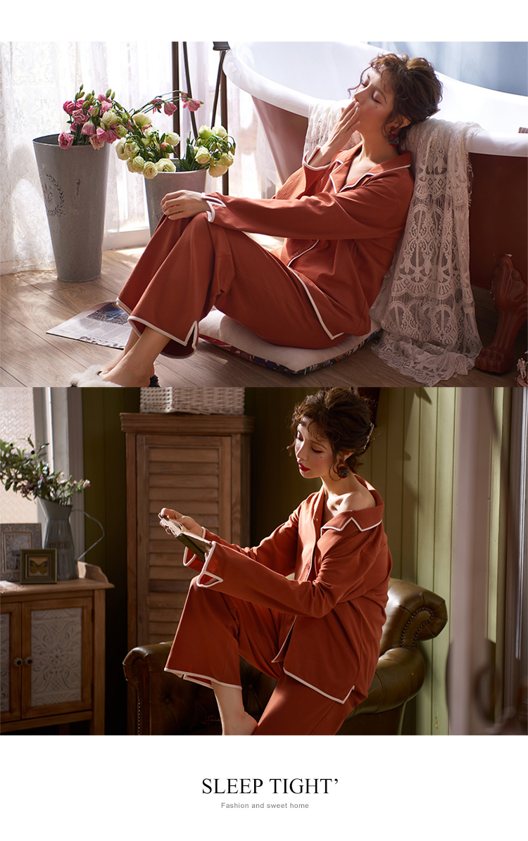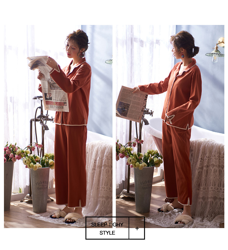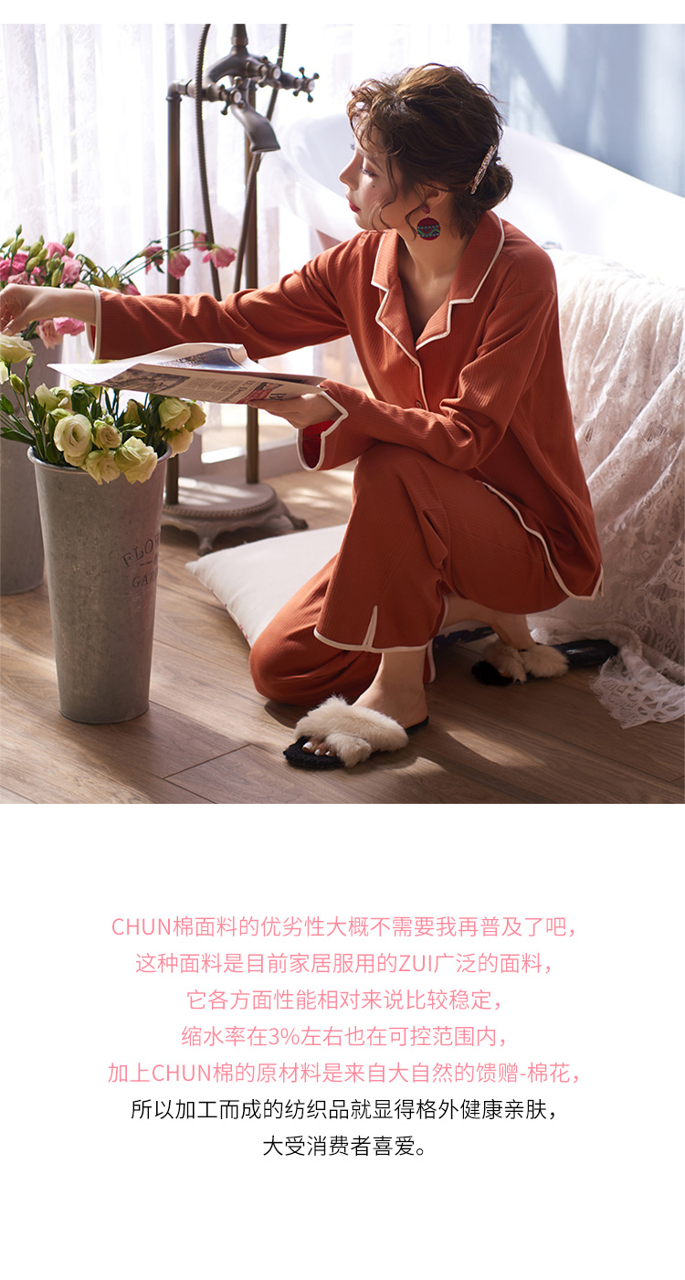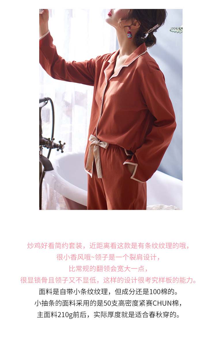 2019新款純棉睡衣女春秋薄款長袖春秋款女士全棉可外穿韓版家居服1入