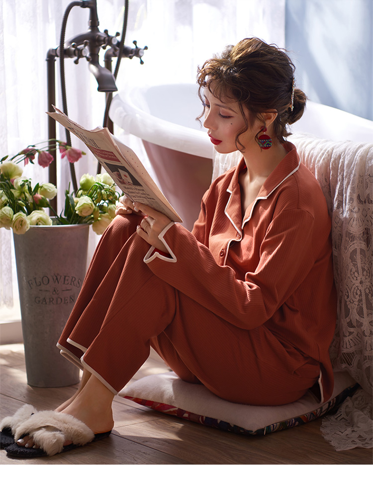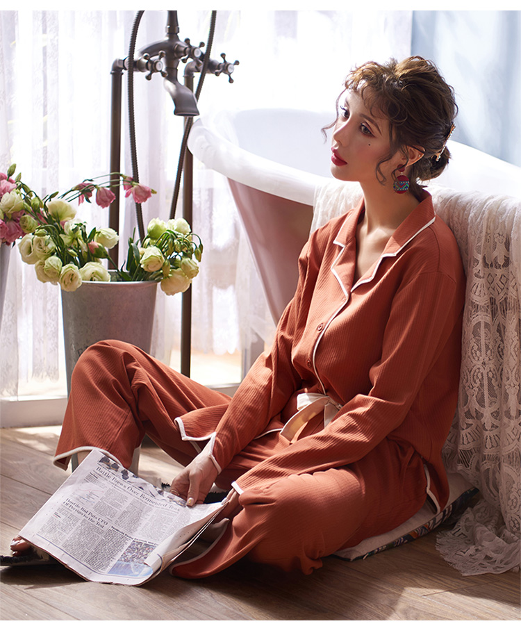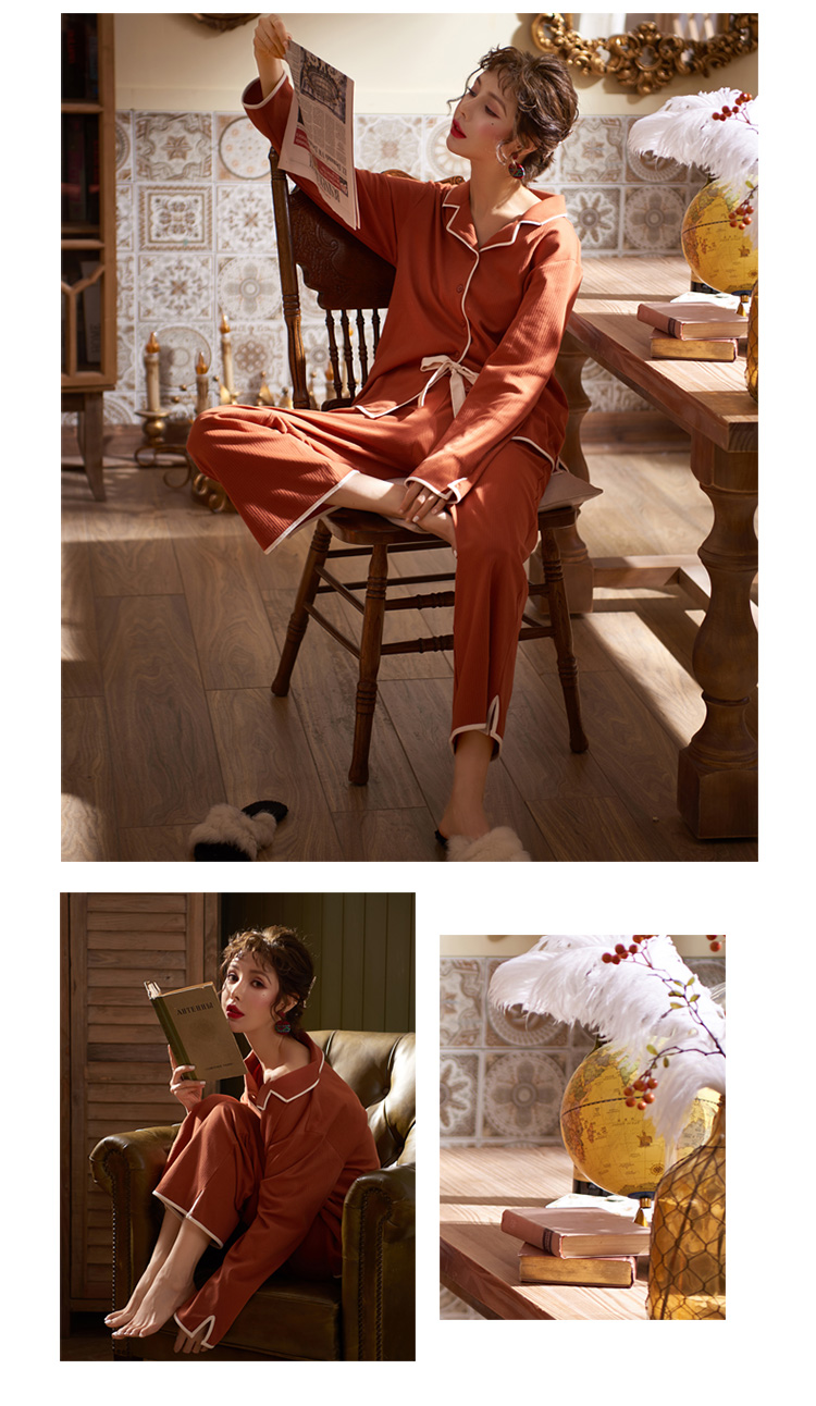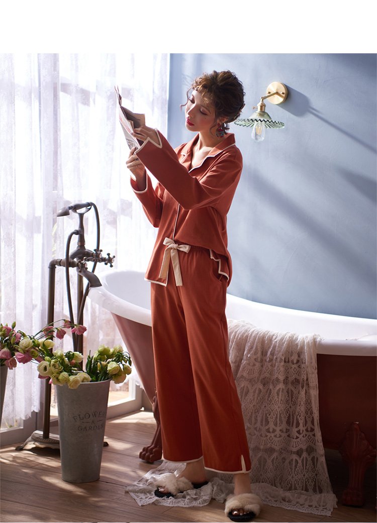 2019新款純棉睡衣女春秋薄款長袖春秋款女士全棉可外穿韓版家居服1入