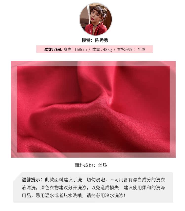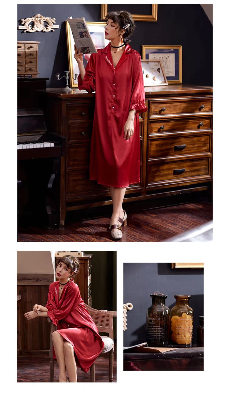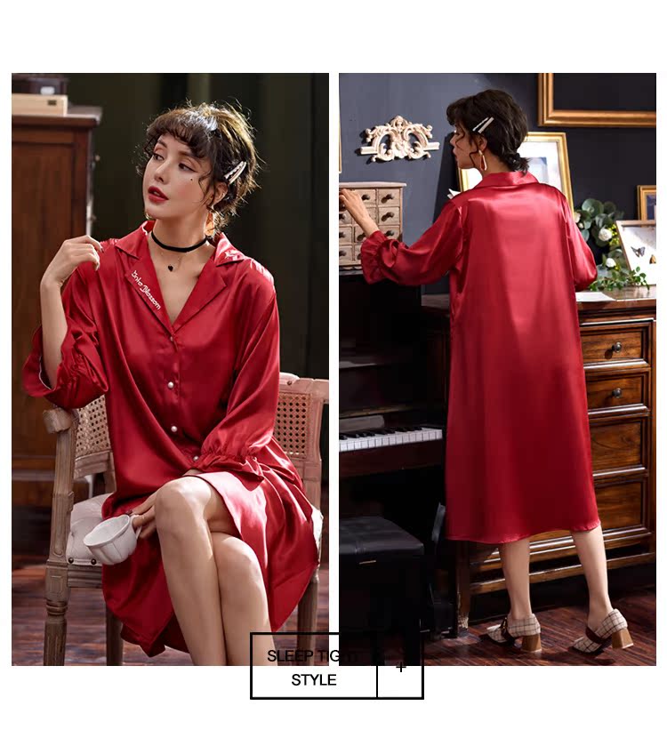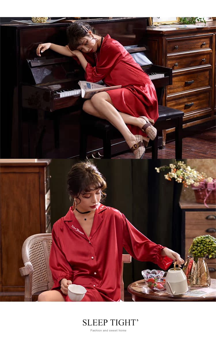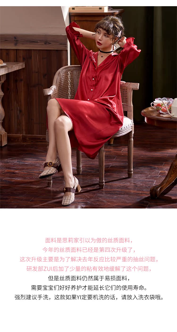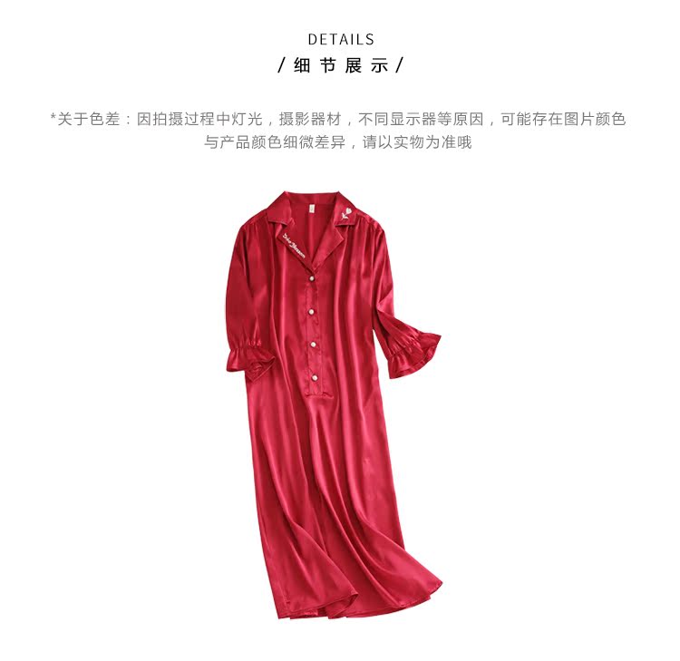 2019新款睡裙女秋長款性感冰絲紅色本命年新婚仿真絲絲綢優雅睡衣1入