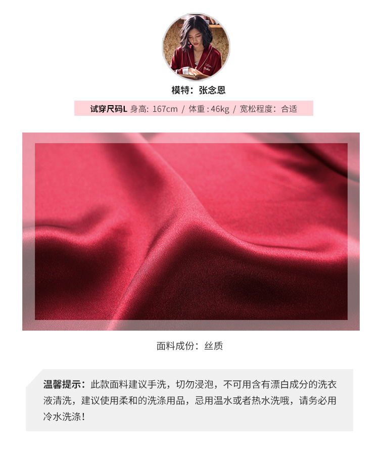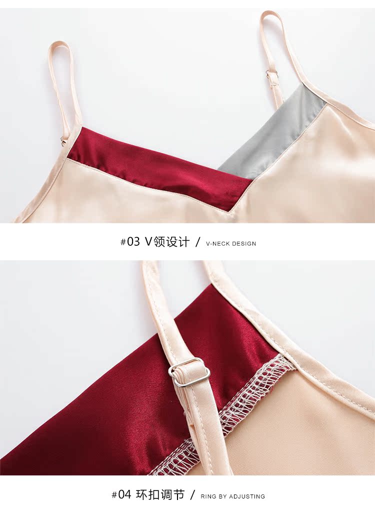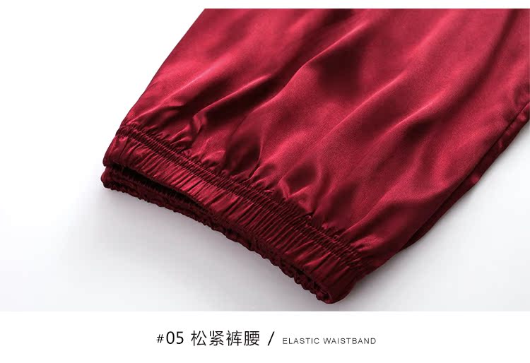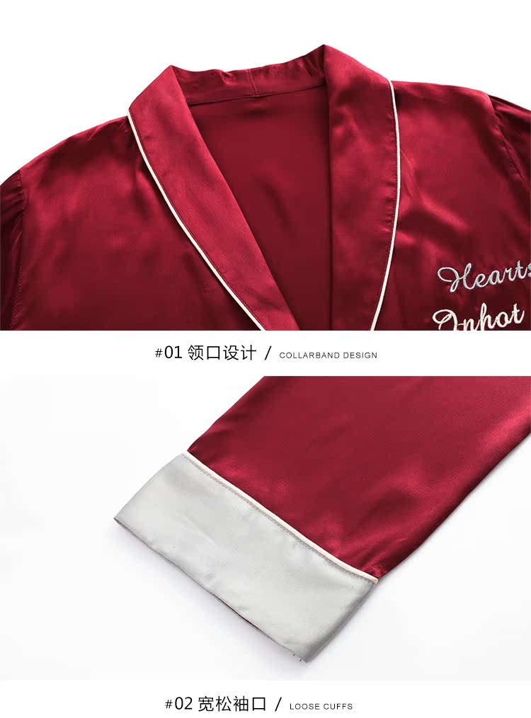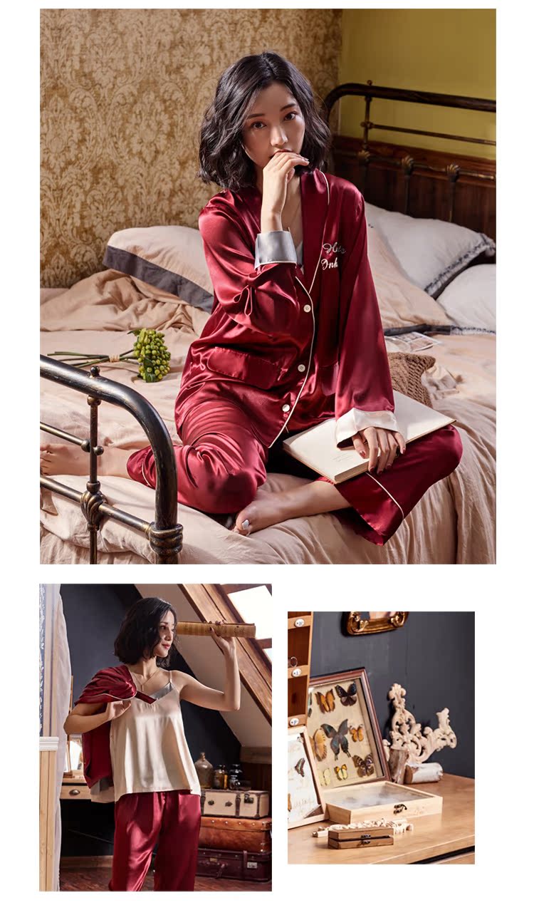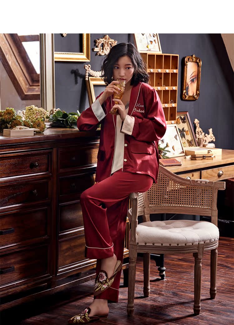 2019新款睡衣女春秋薄款冰絲仿真絲絲綢性感三件套紅色本命年春款1入