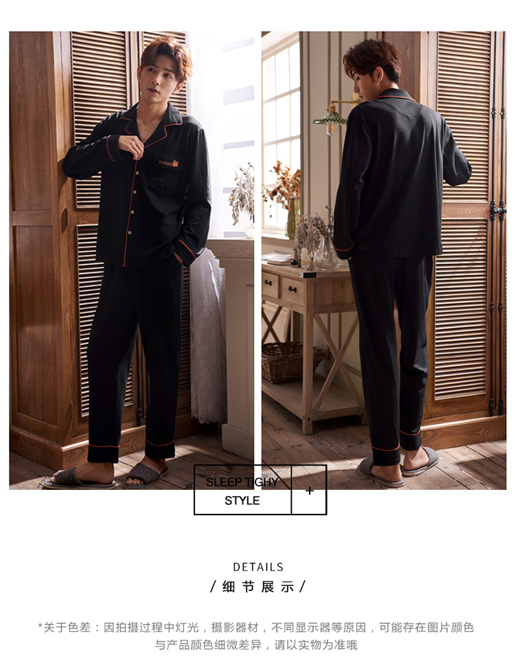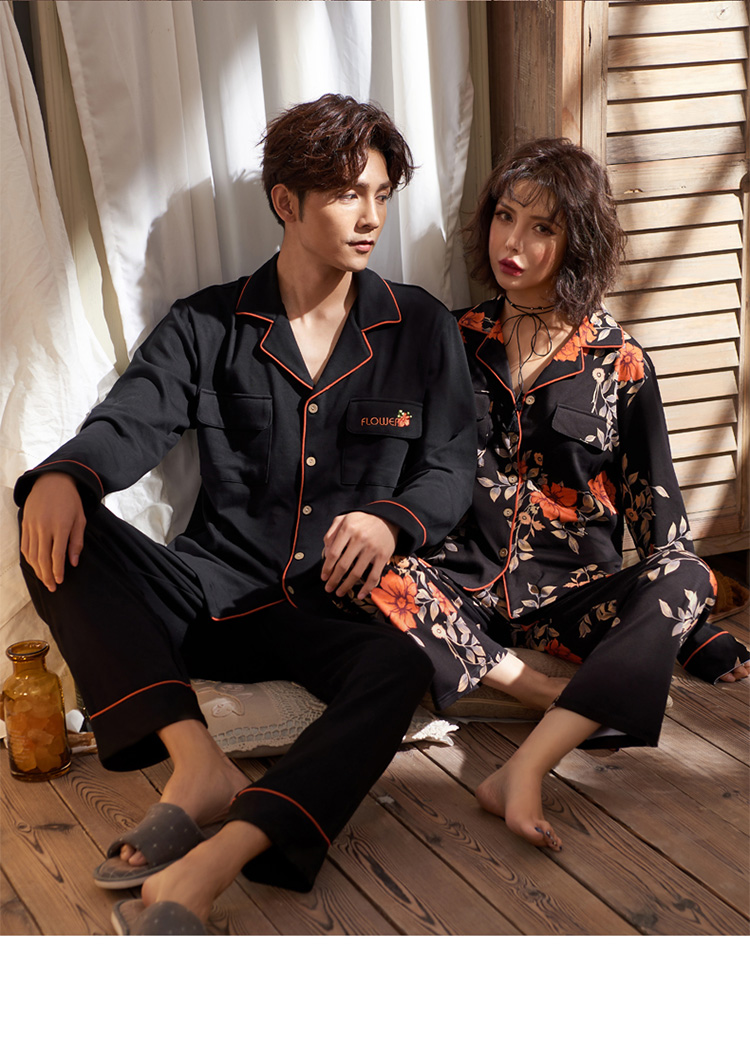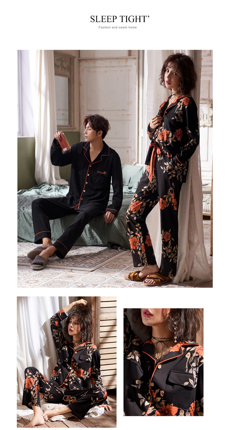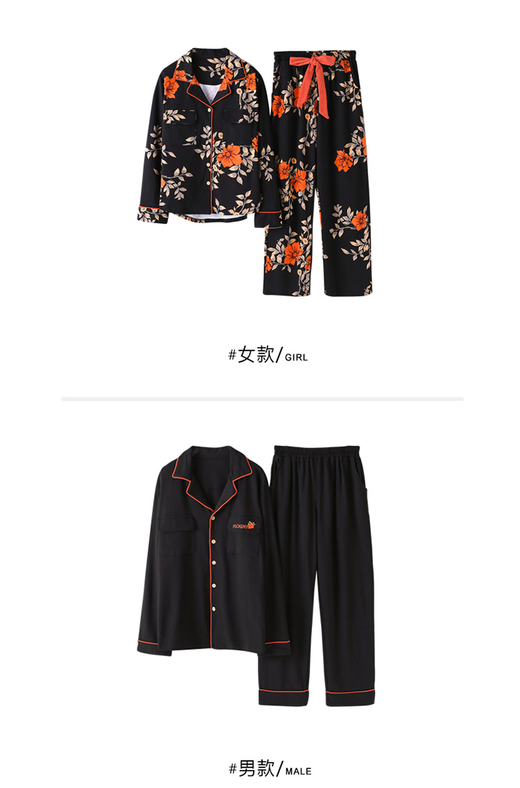 2018新款情侶睡衣春秋季純棉長袖秋冬款全棉男女套裝開衫家居服1入