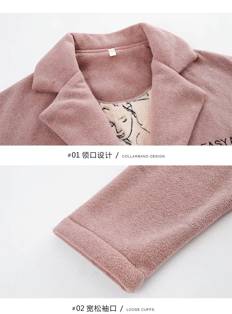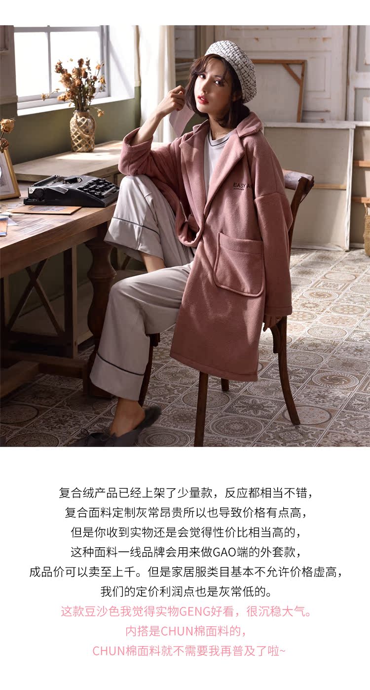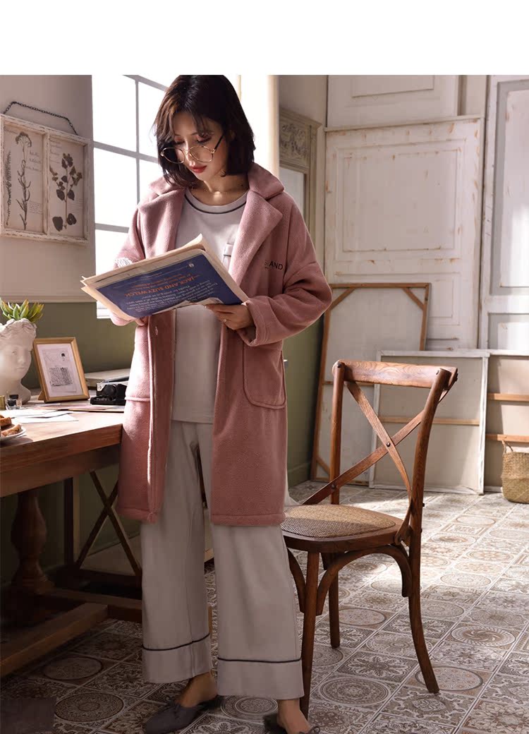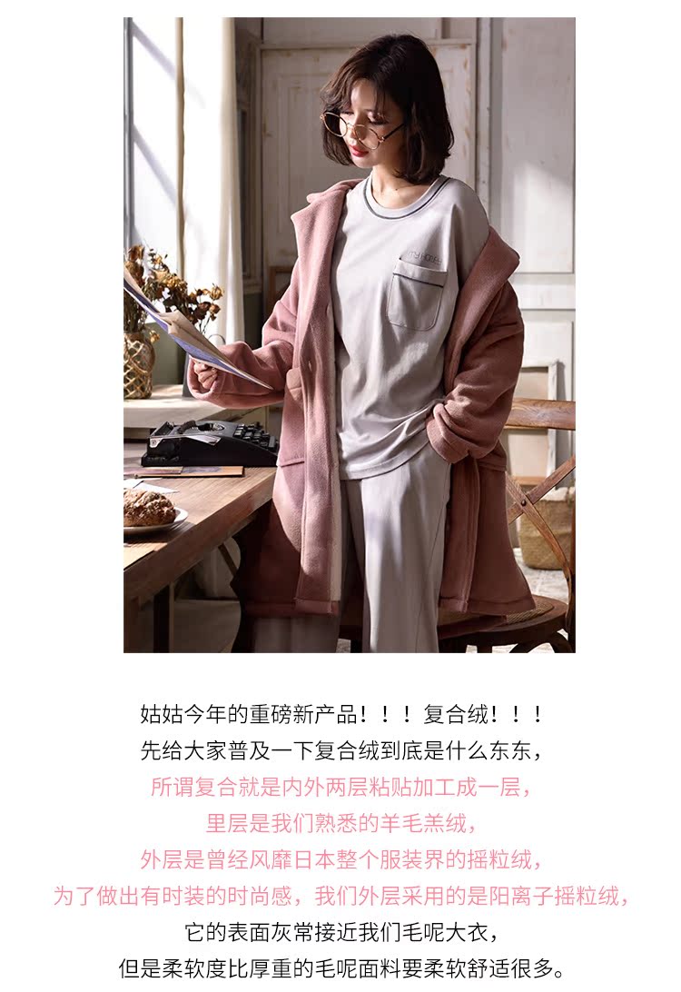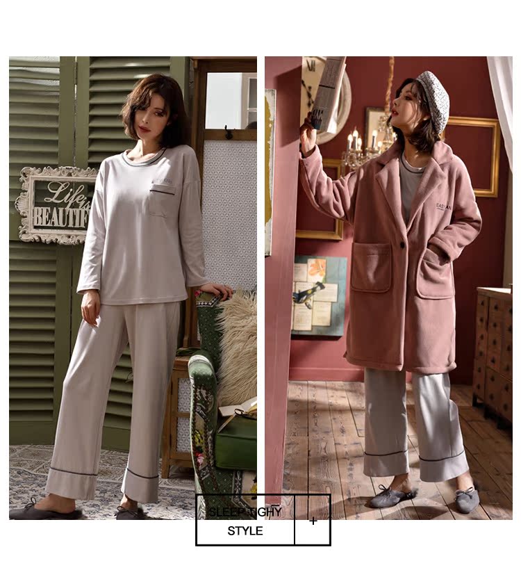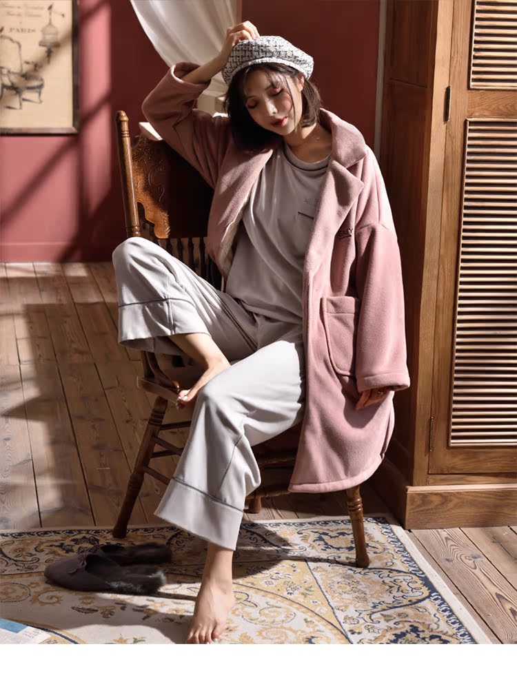 2018新款睡衣女秋冬三件套純棉長袖休閑套裝+冬季珊瑚絨外套睡袍1入