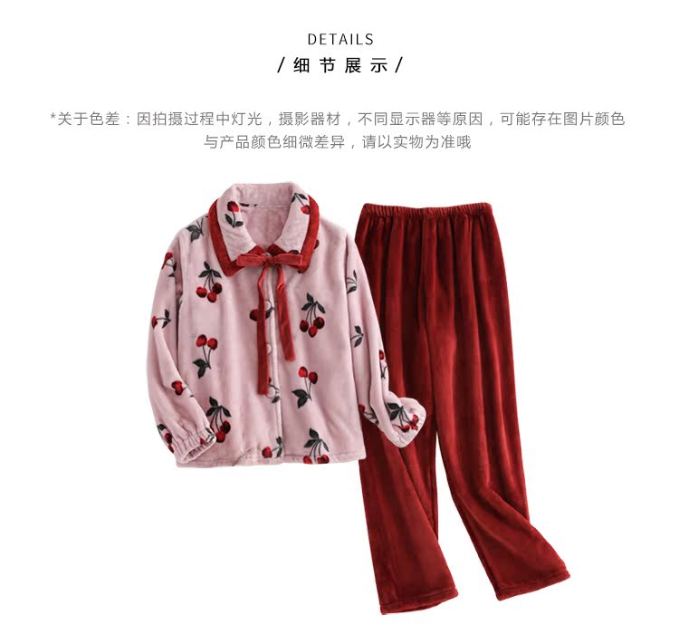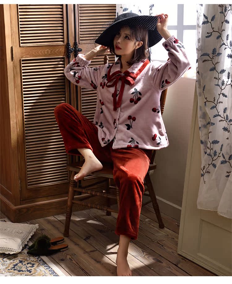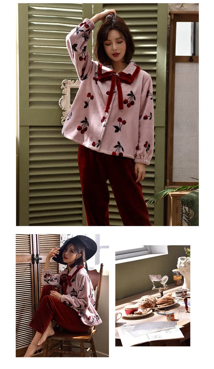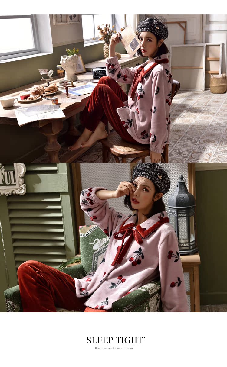 2018新款睡衣女秋冬珊瑚絨韓版清新學生宿舍潮款法蘭絨可愛套裝1入
